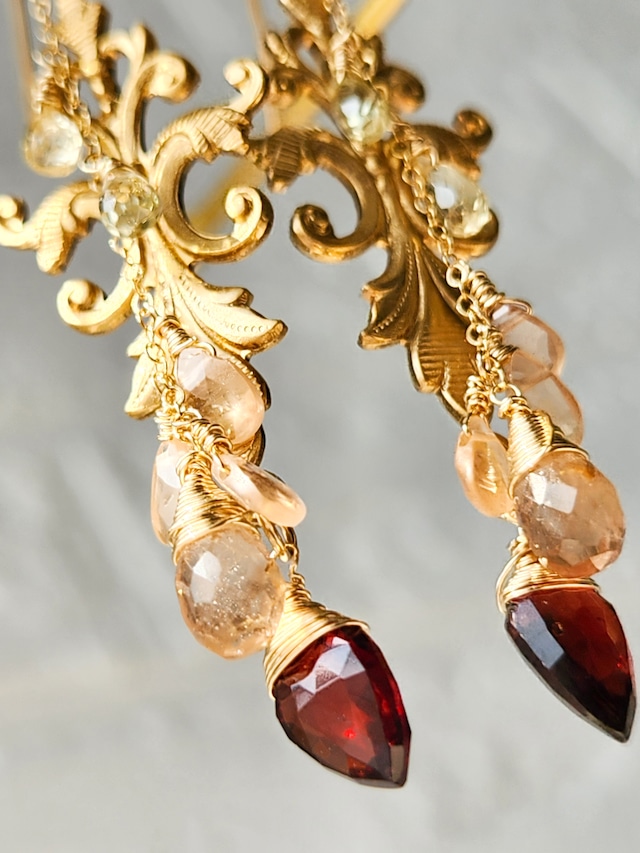 アンデシン × ガーネット × ジルコン グラデーションチャームピアス 26016P