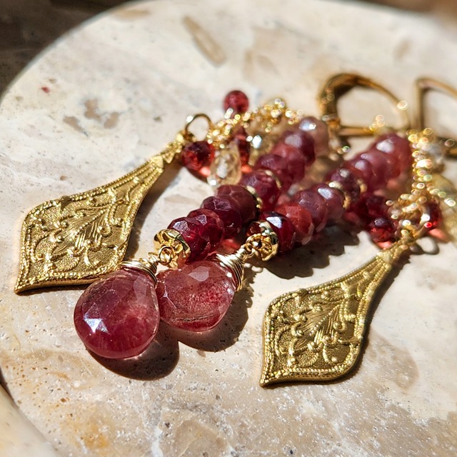 ロードライトガーネット × ストロベリークォーツ オーナメントピアス 26014P