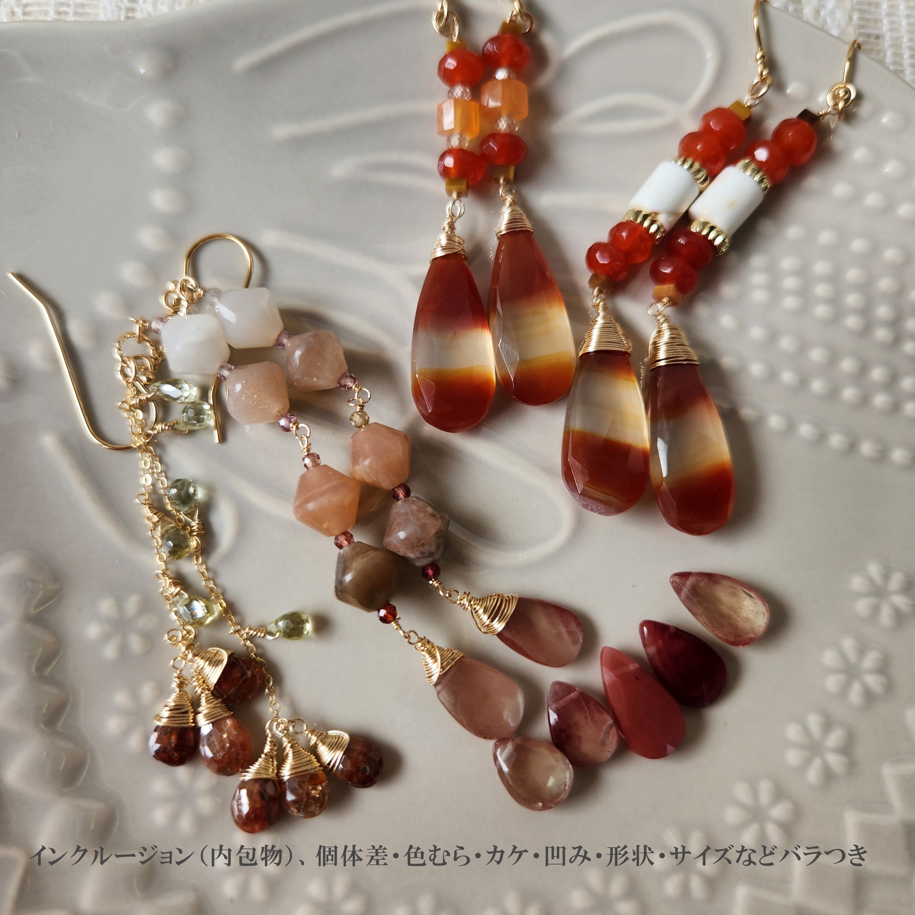 天然の石を使用した商品のため、インクルージョン(内包物)、連材の個体差・色むら・カケ・凹み・形状・サイズなどバラつきがございます。