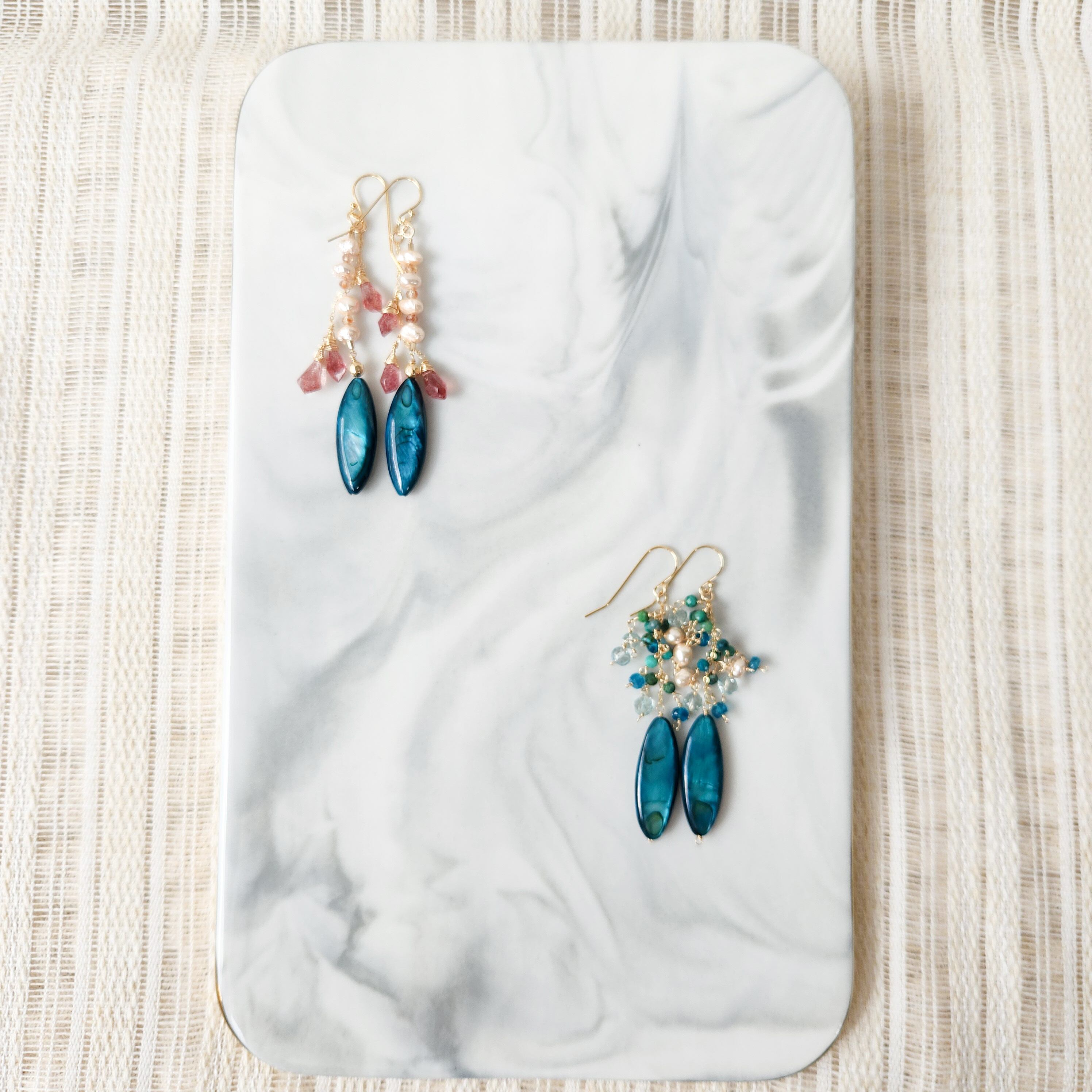 上品な淡水パールとマザーオブパールを組み合わせました。