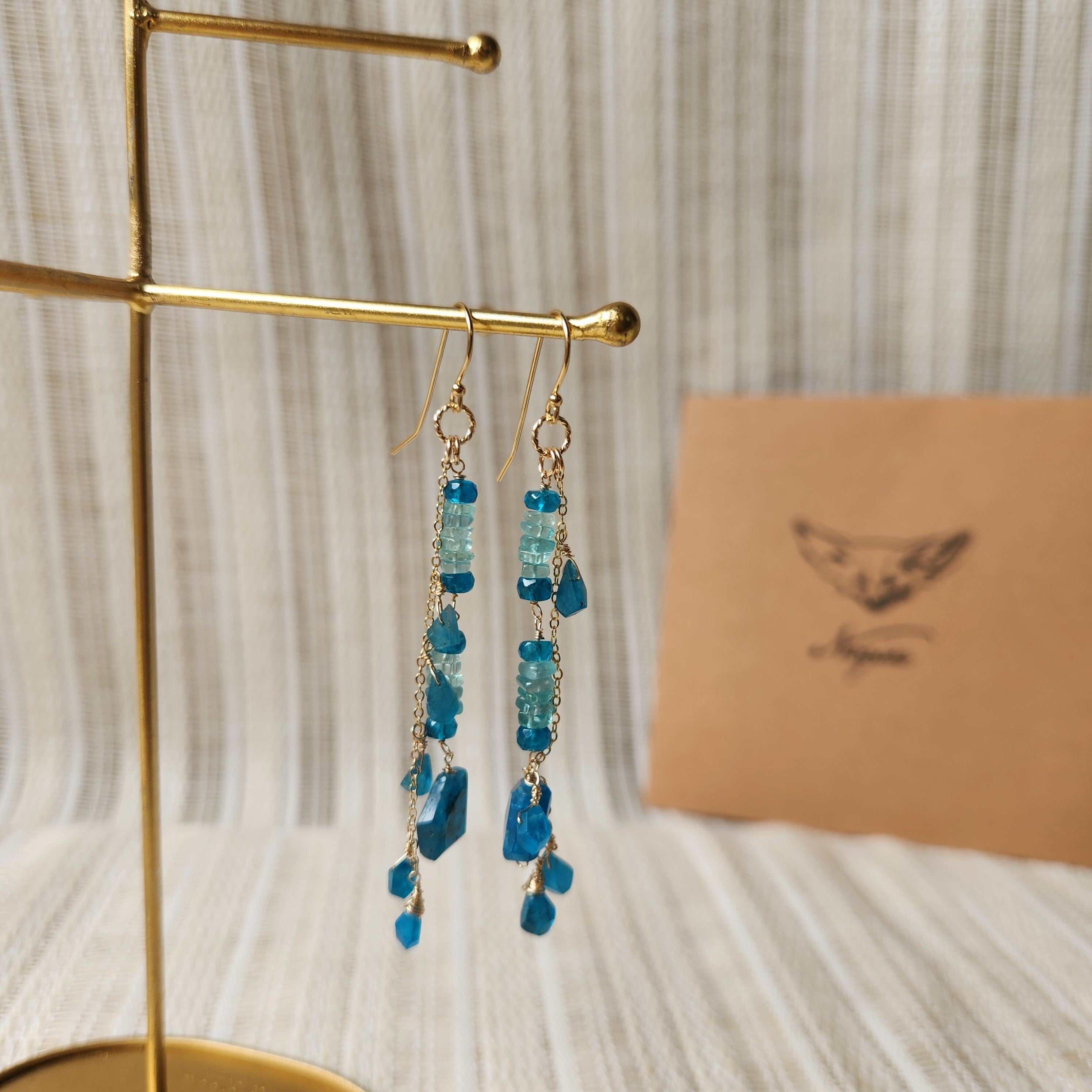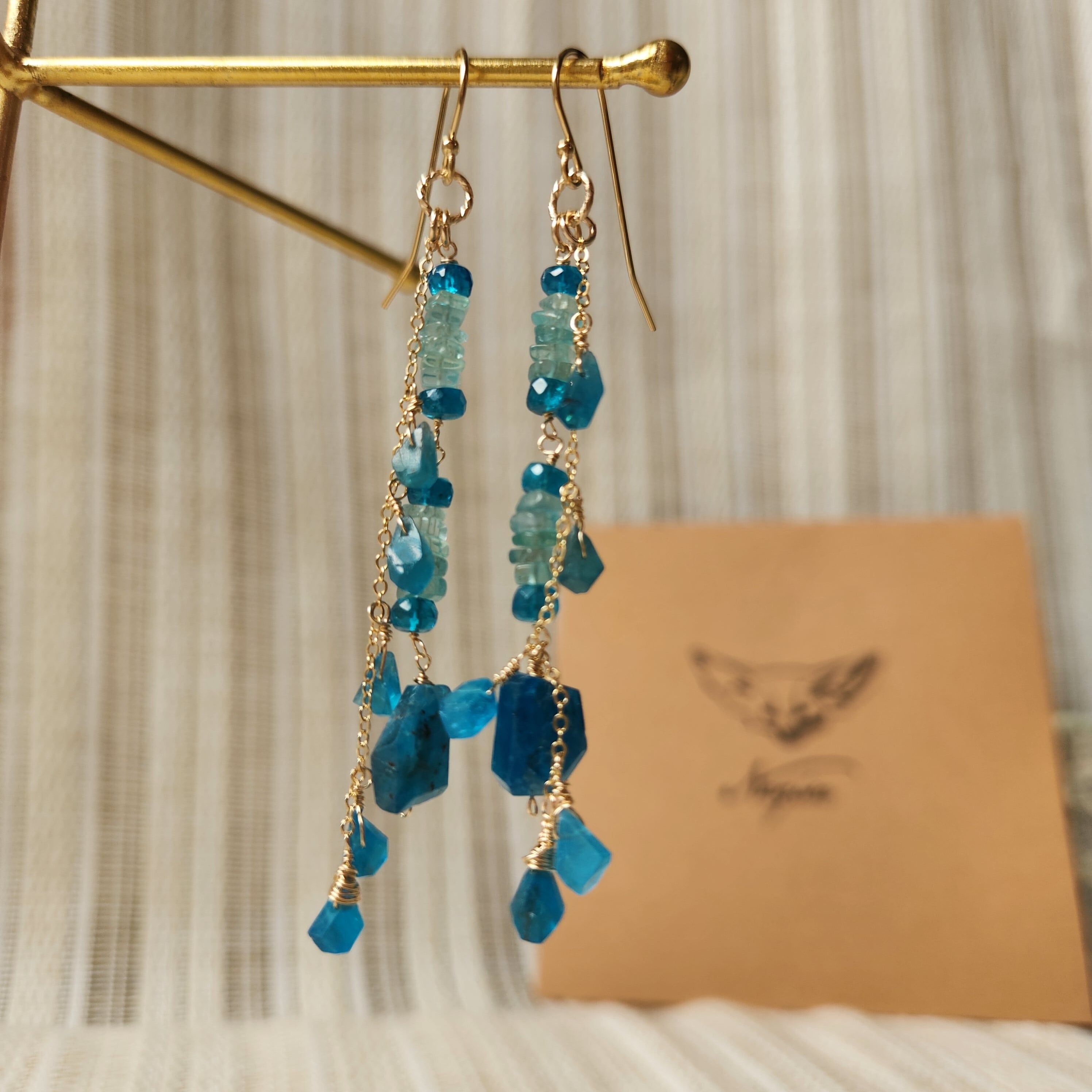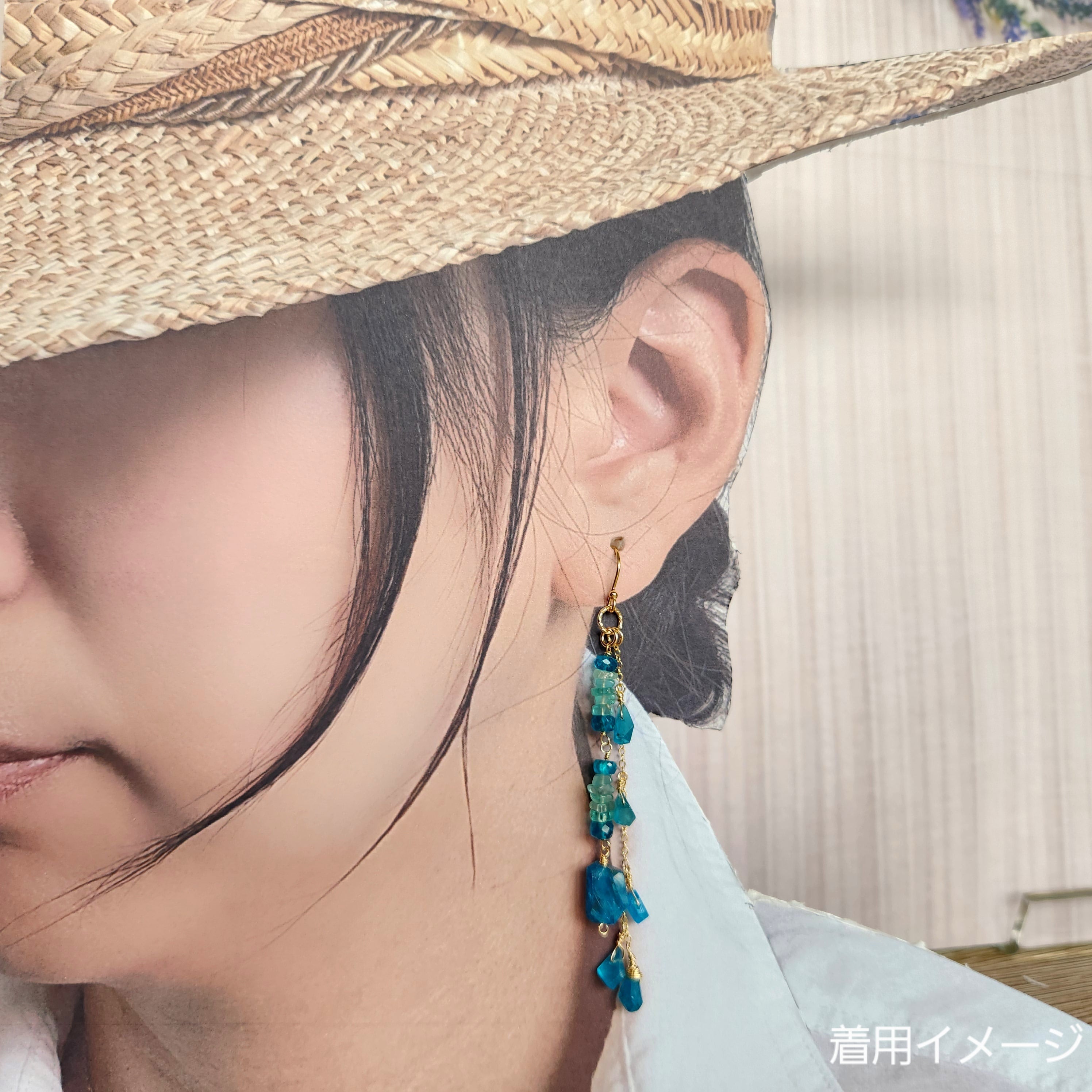 様々なブルーのアパタイトを組み合わせたピアスです。