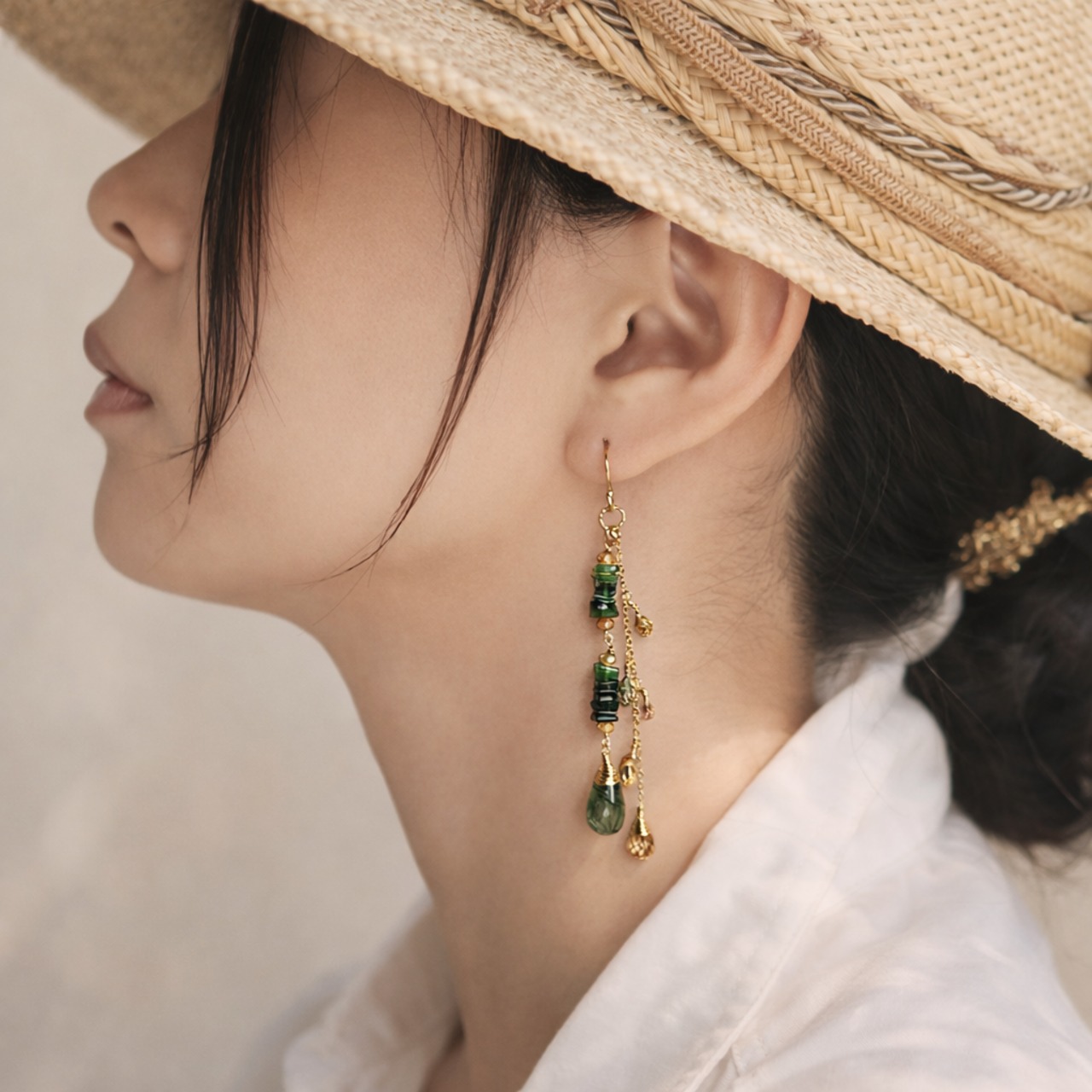 サーペンティンをグラデーションカラーで連ね、深いグリーンとベージュの組み合わせで落ち着いた印象のカラーにまとめました。