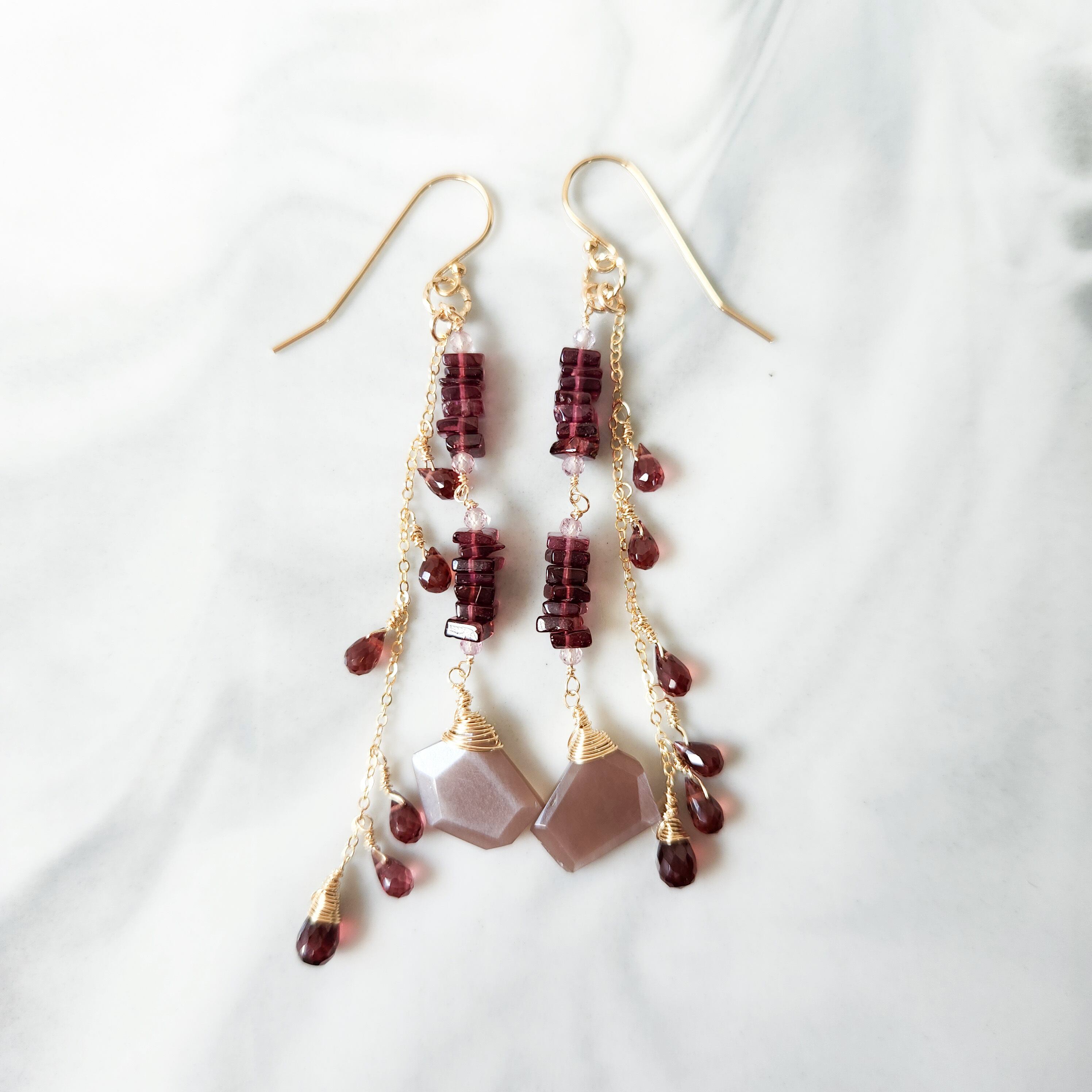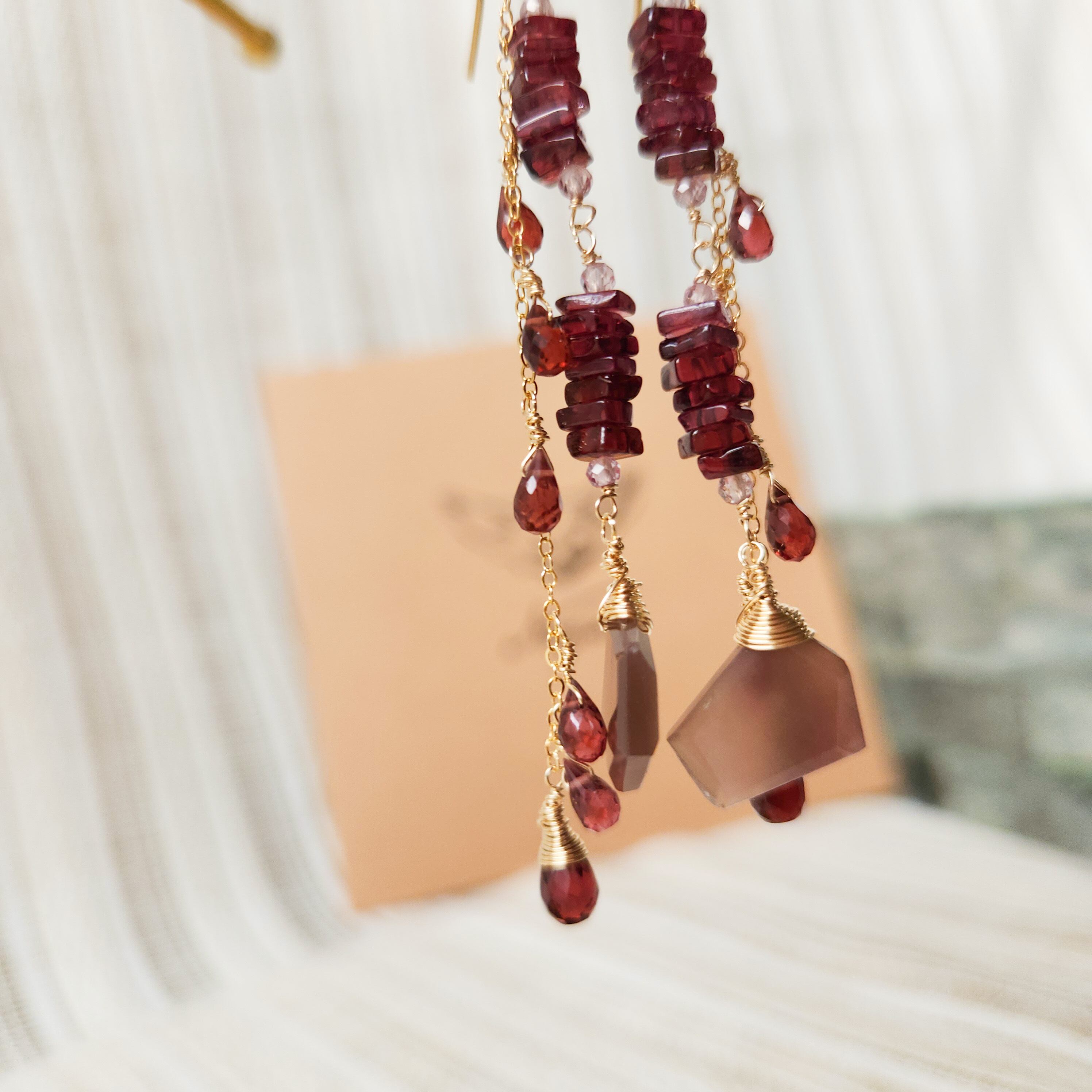 チョコレートムーンストーン×ガーネット×スピネル ピアス 25009P