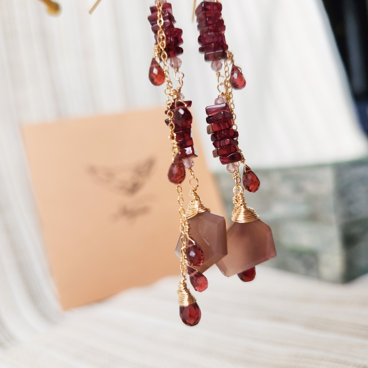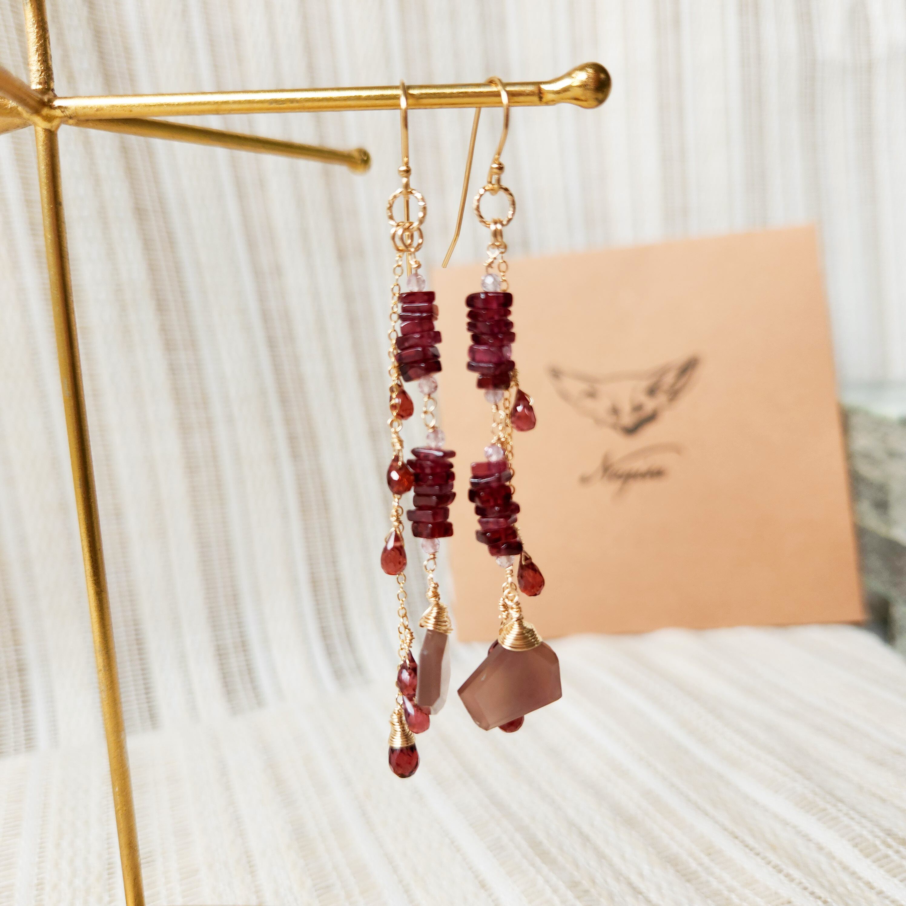 美しい深いカラーのガーネットドロップカットを合わせ、上品な印象に仕上げました。