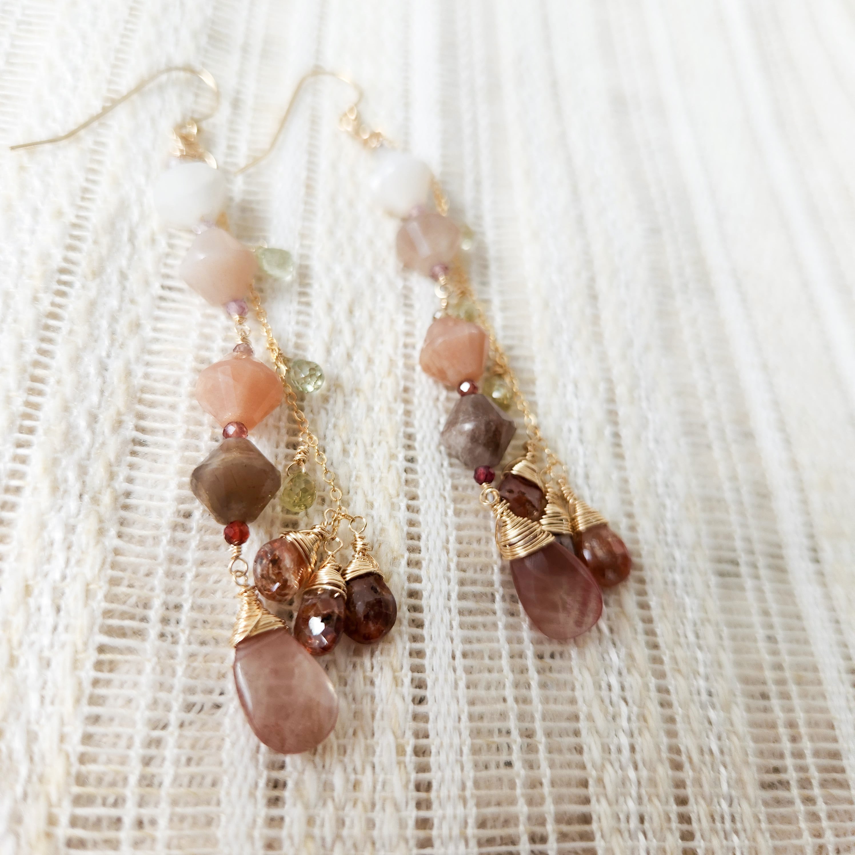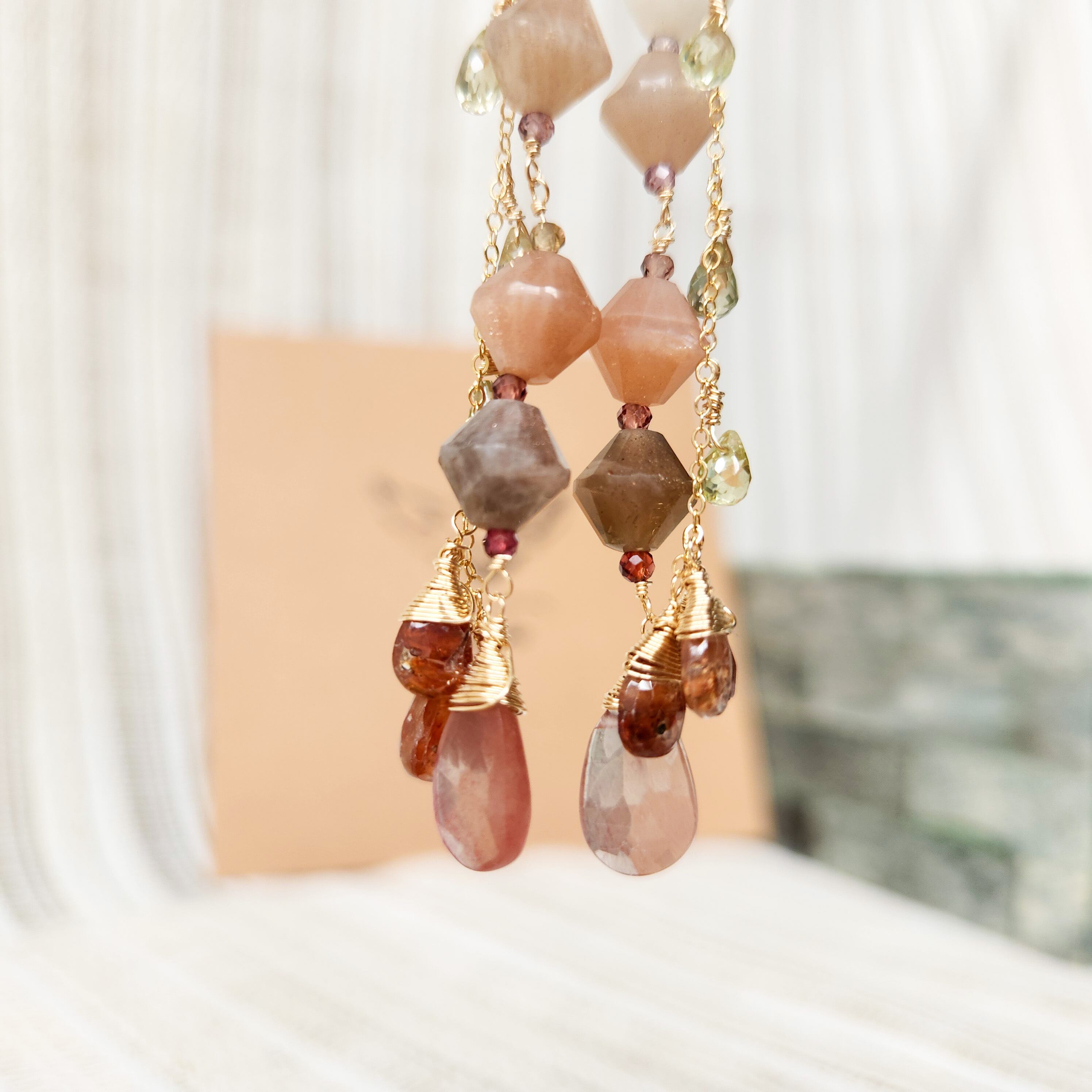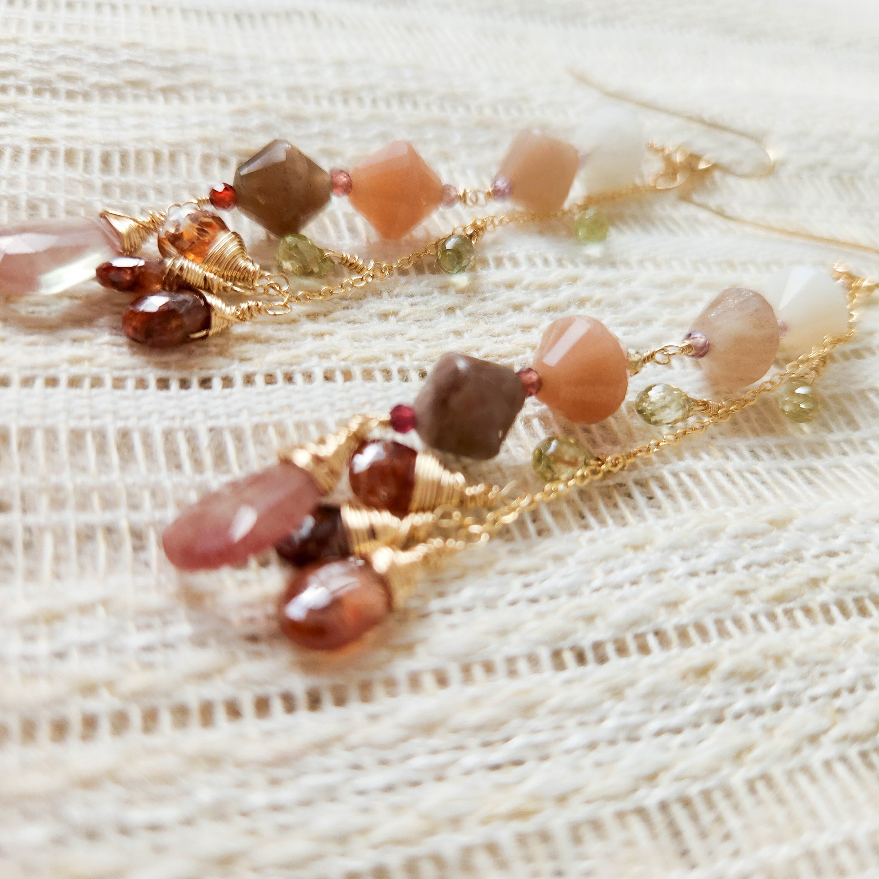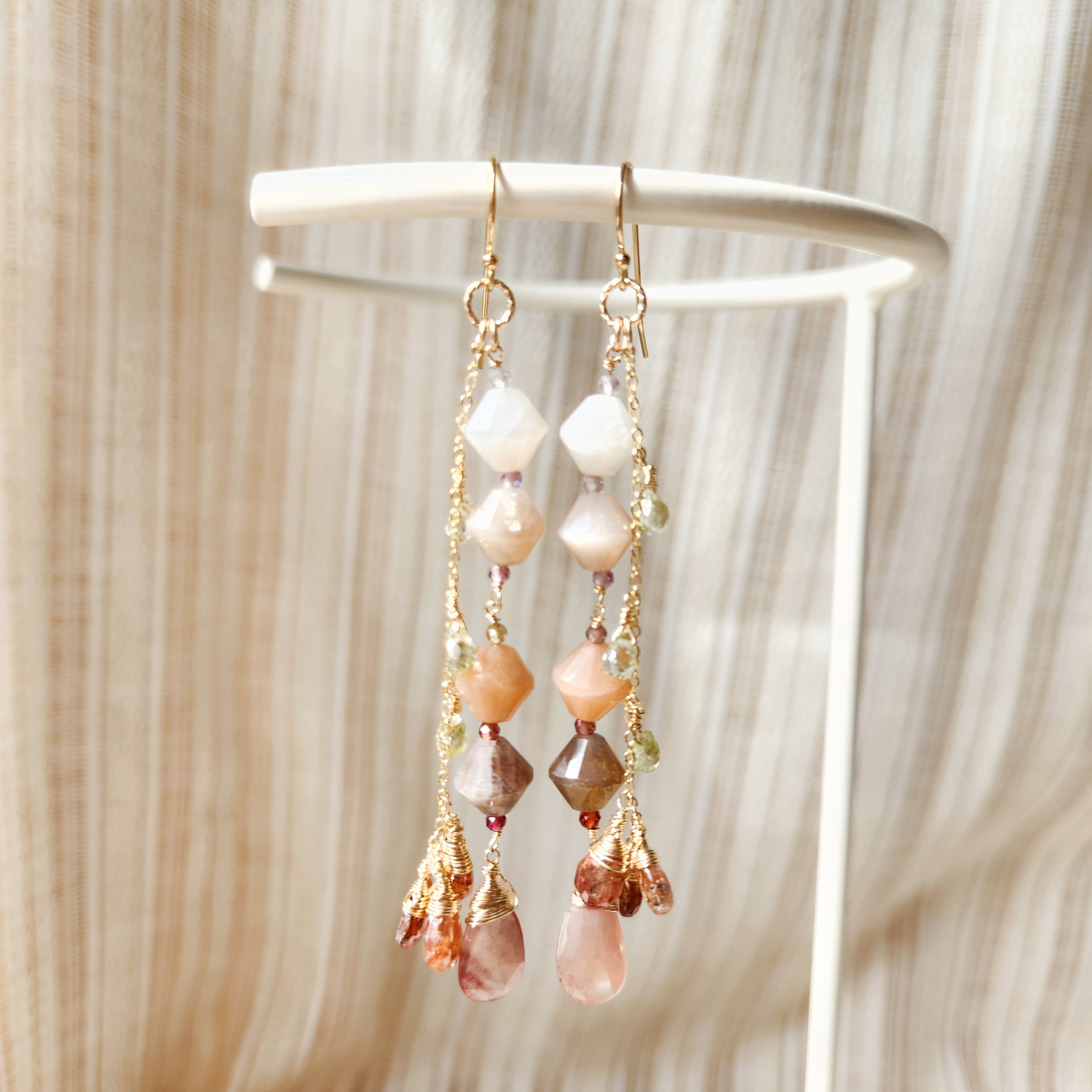アンデシン×ムーンストーン×レディッシュブラウンジルコン×ジルコン×スピネル ピアス 25010P