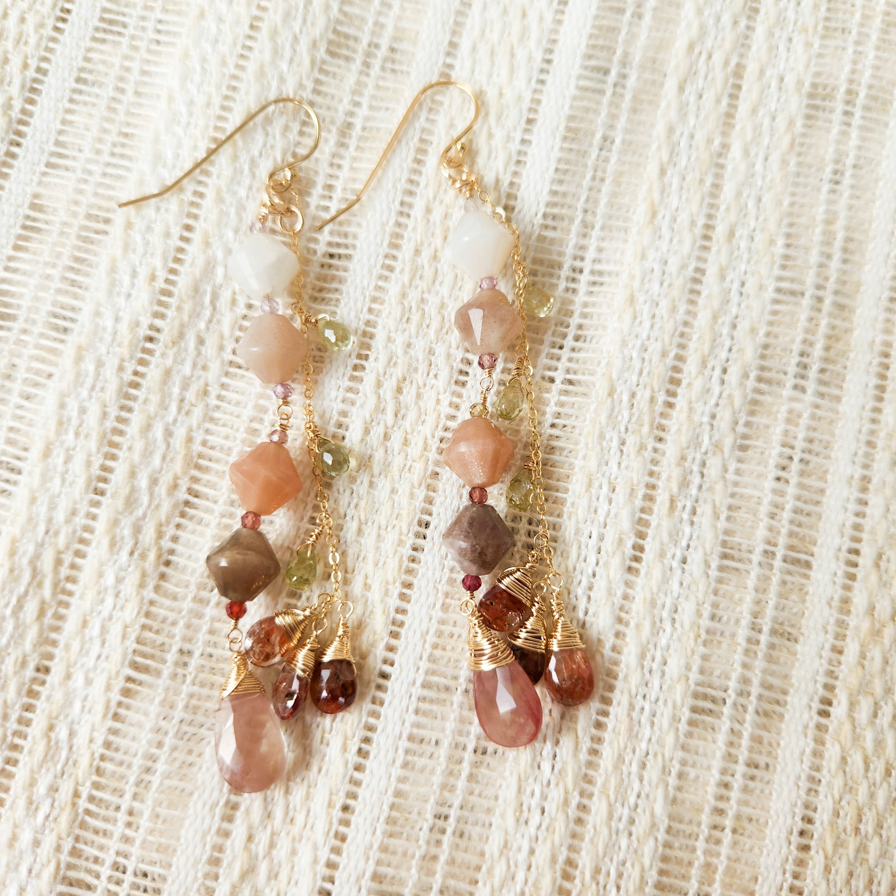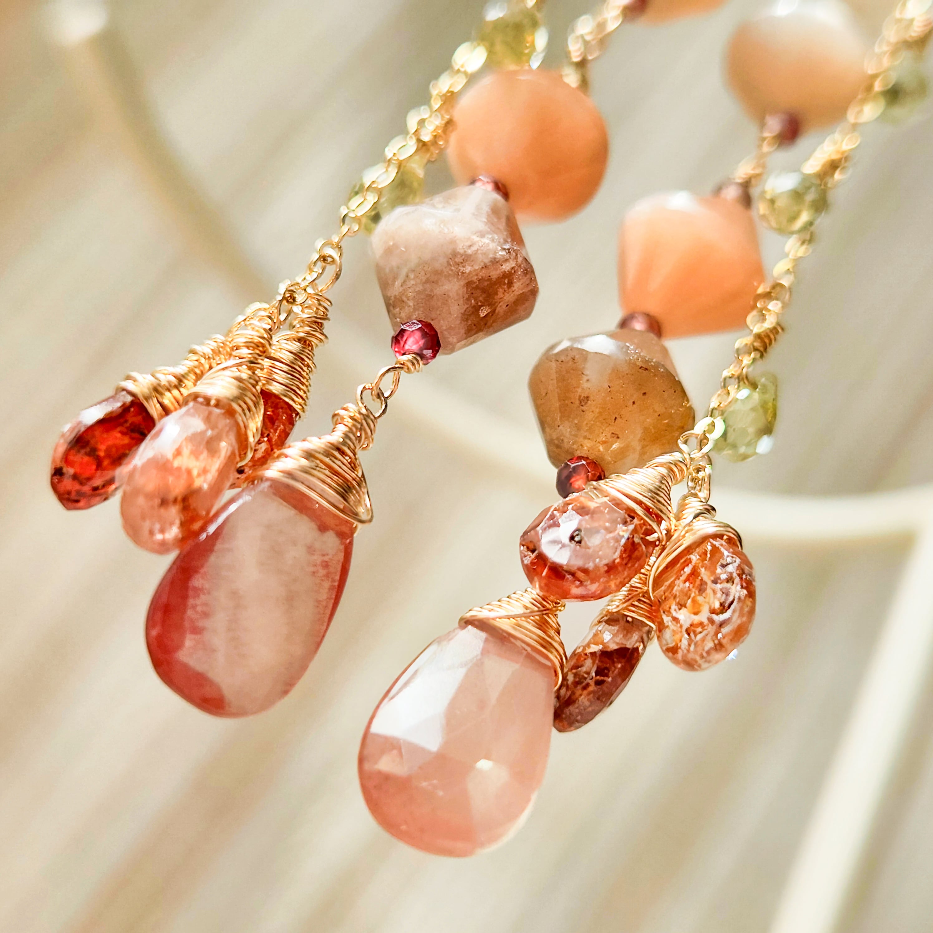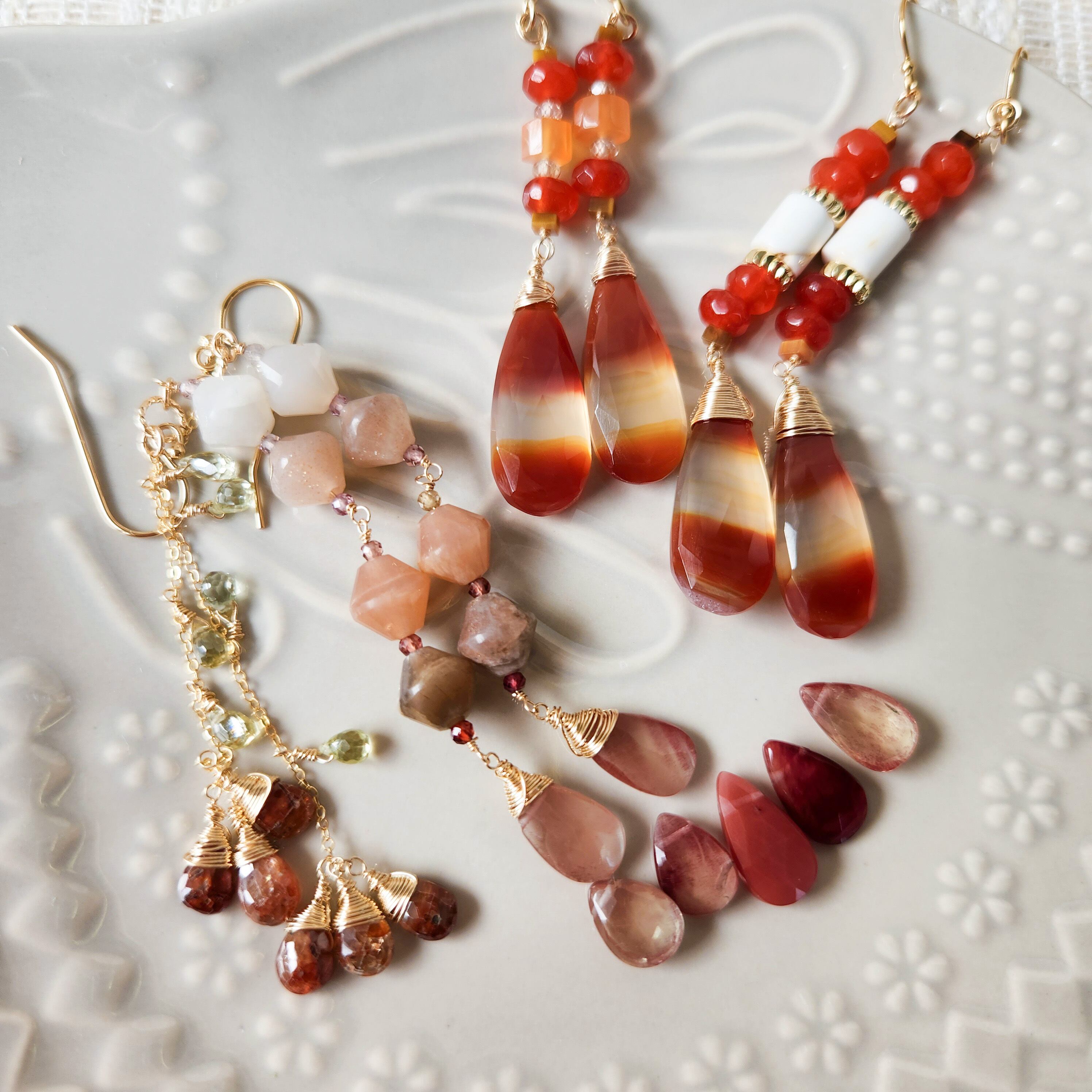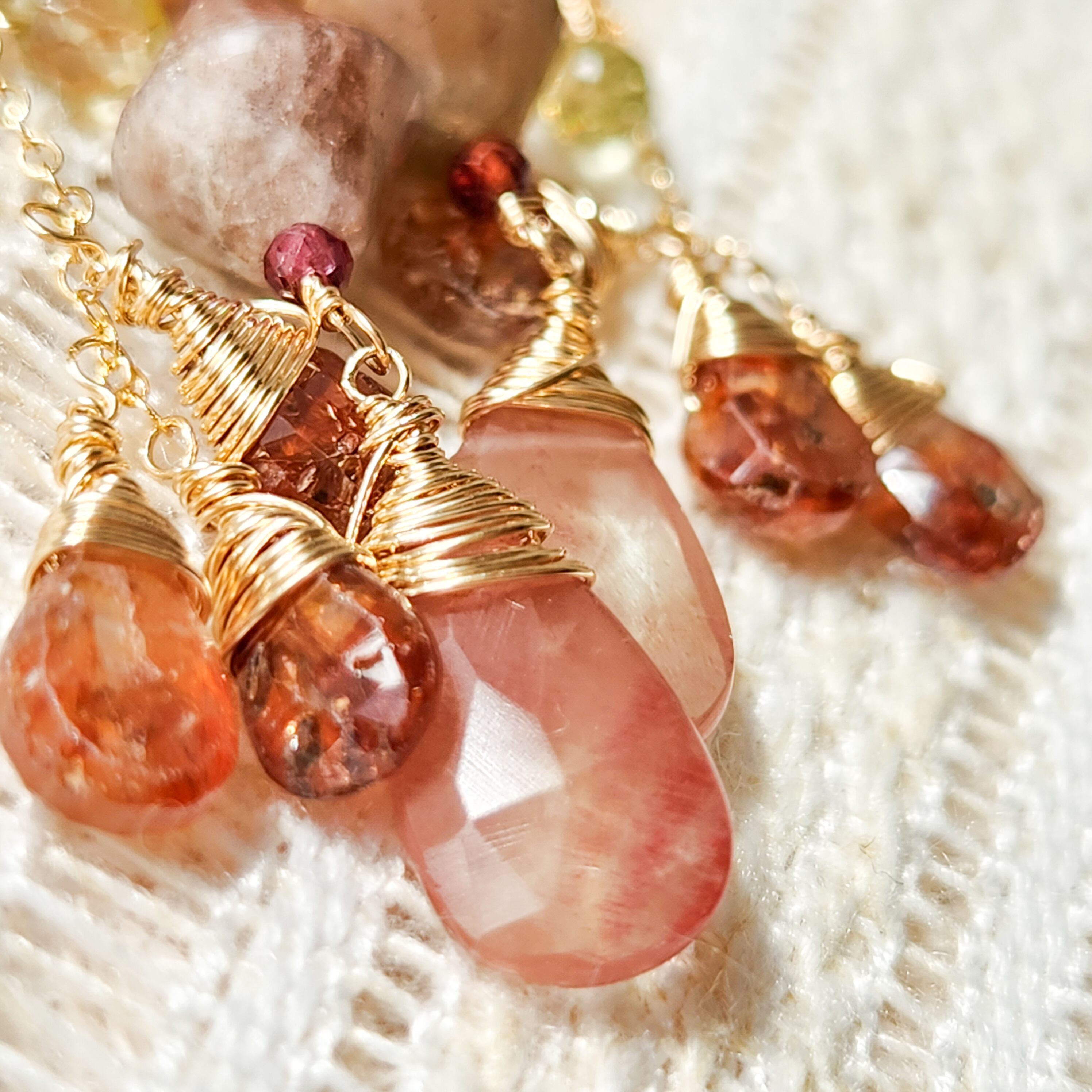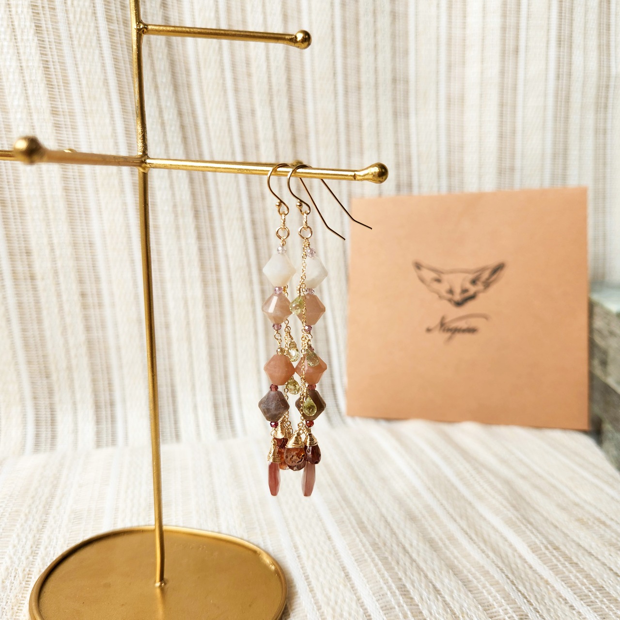 アンデシン×ムーンストーン×レディッシュブラウンジルコン×ジルコン×スピネル ピアス 25010P