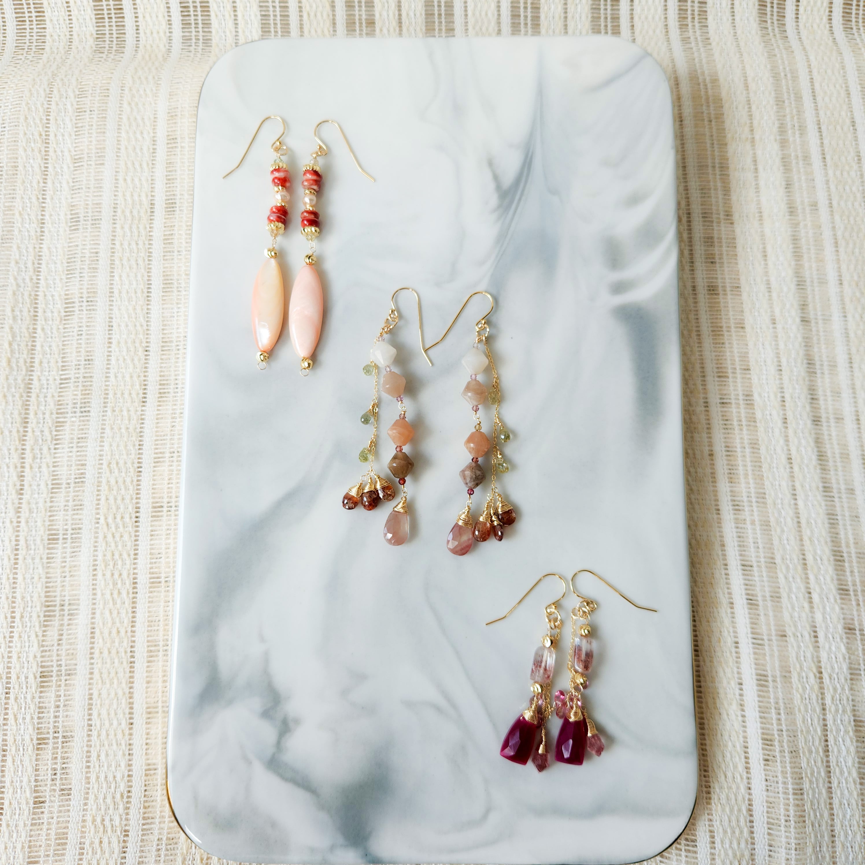 天然石のクラックやコーティングによるカラー素材、またパールなど