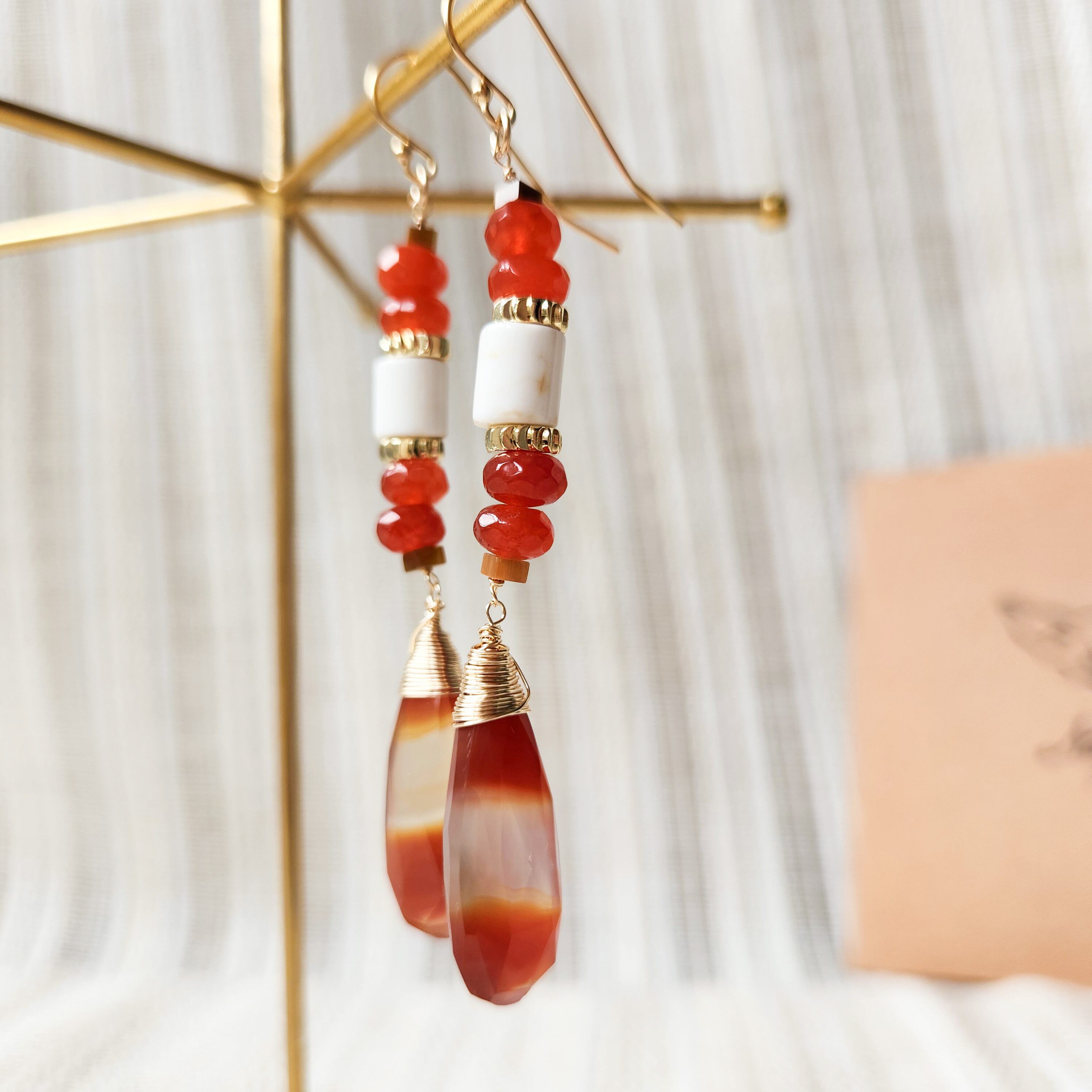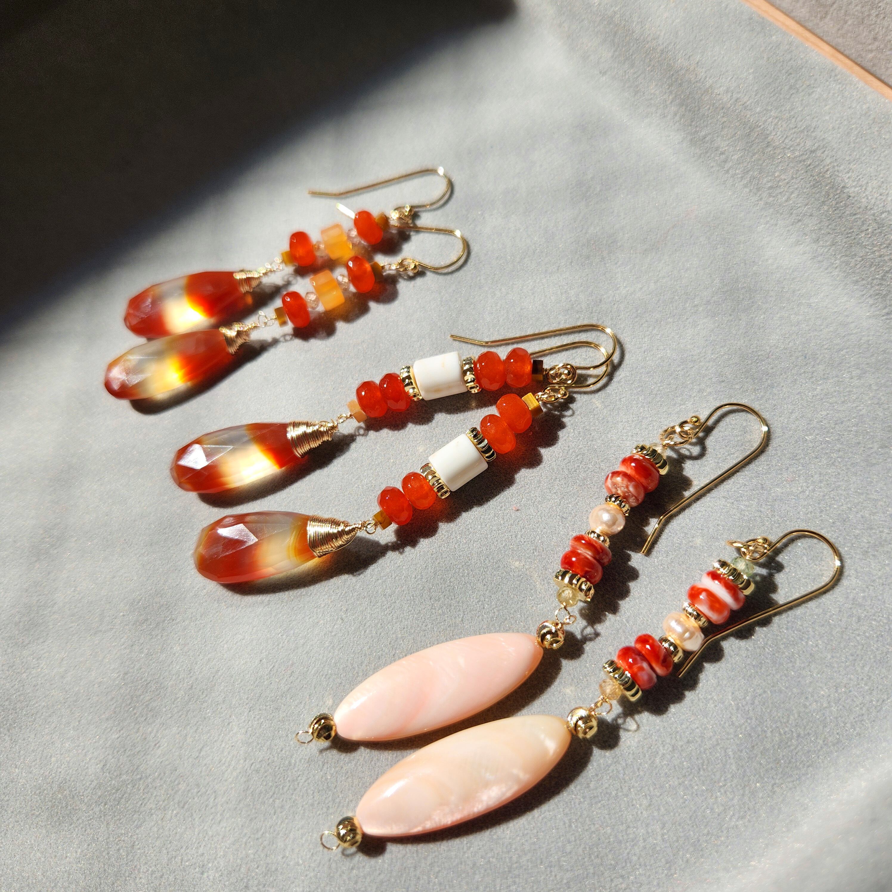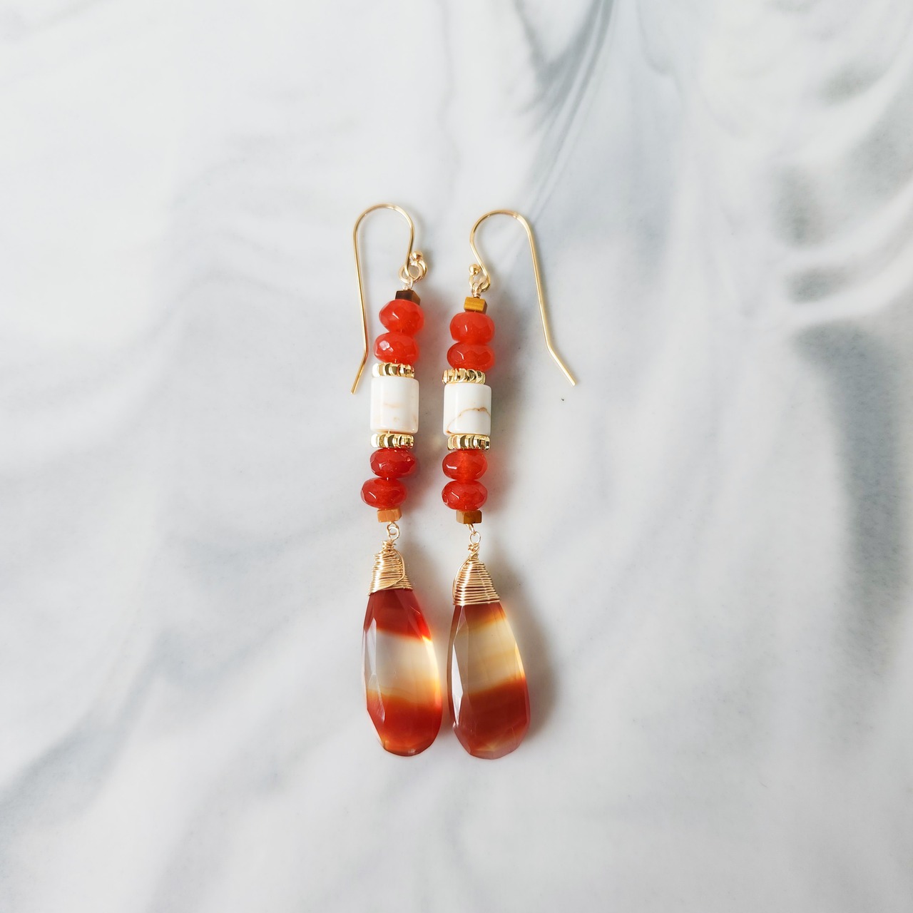 オレンジとホワイトの縞模様が印象的なアゲートをメインに使用したピアスです。
