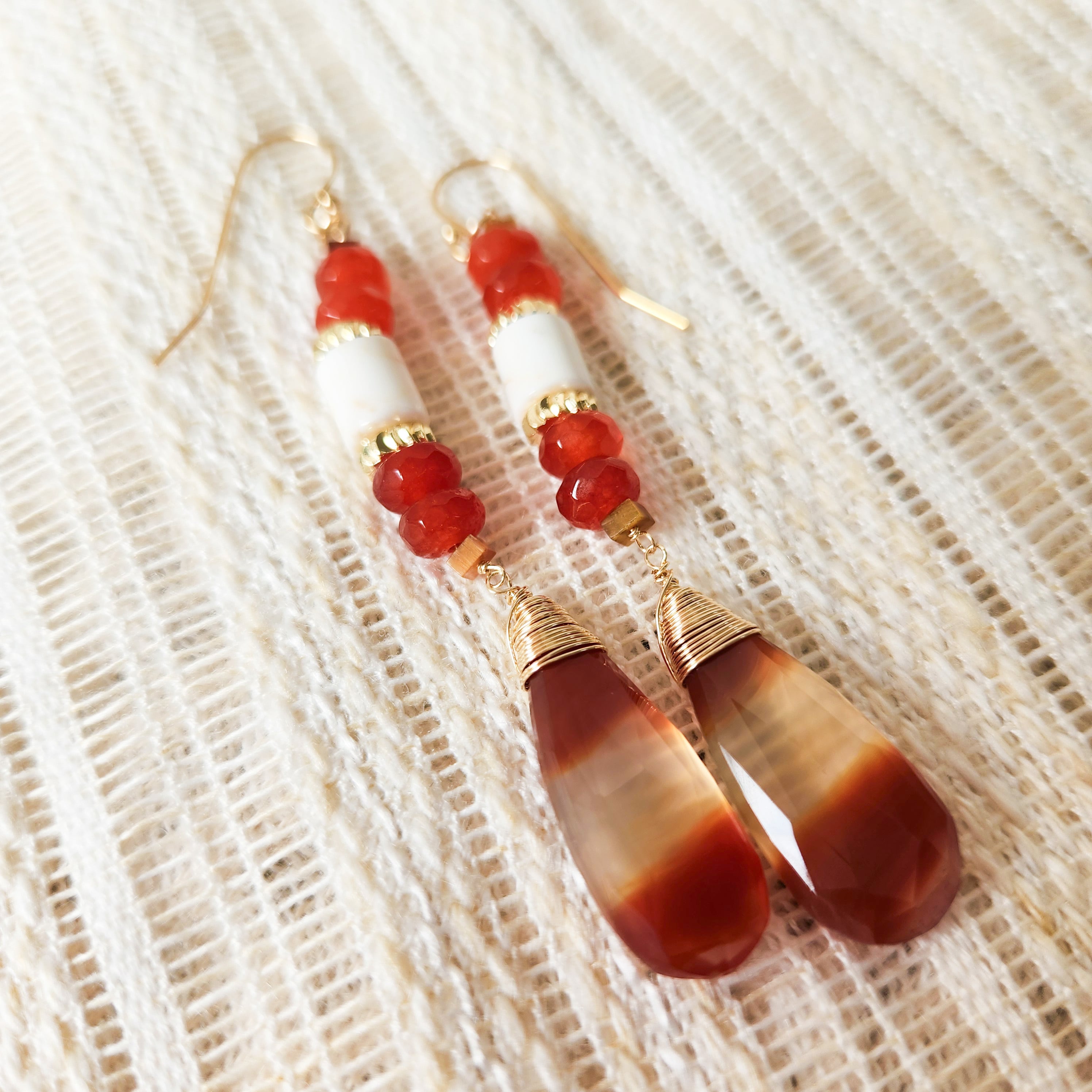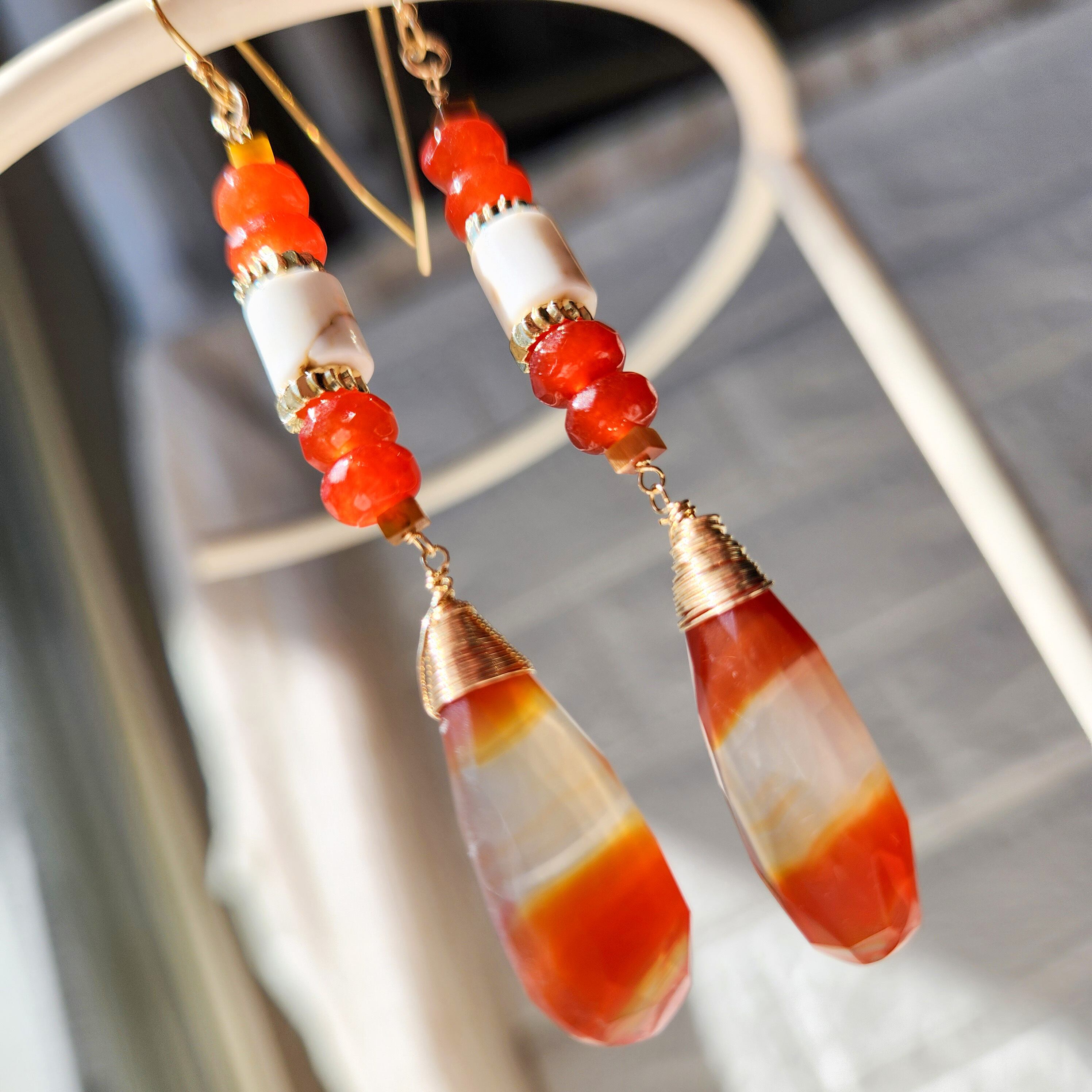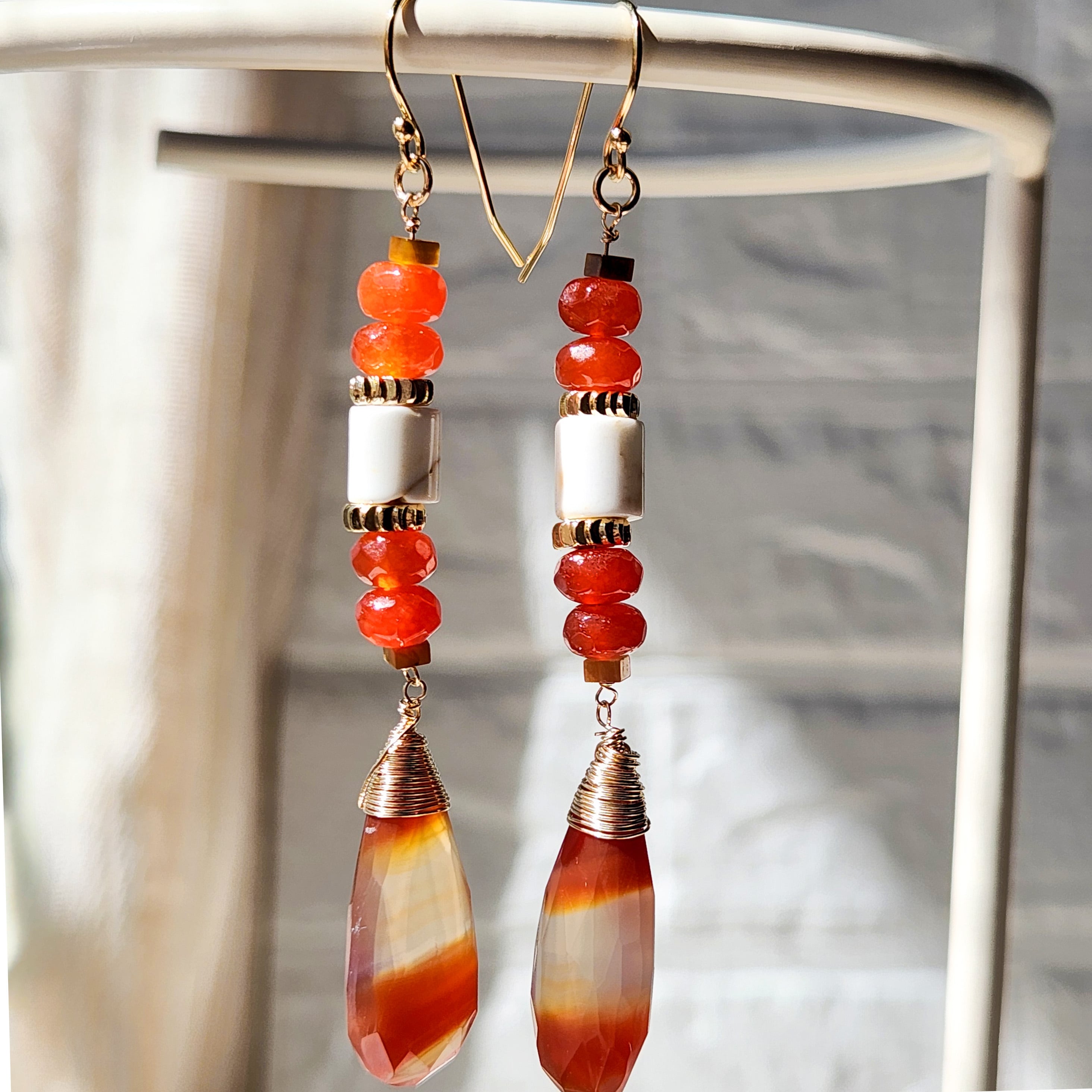 オレンジとホワイトの縞模様が印象的なアゲートをメインに使用したピアスです。