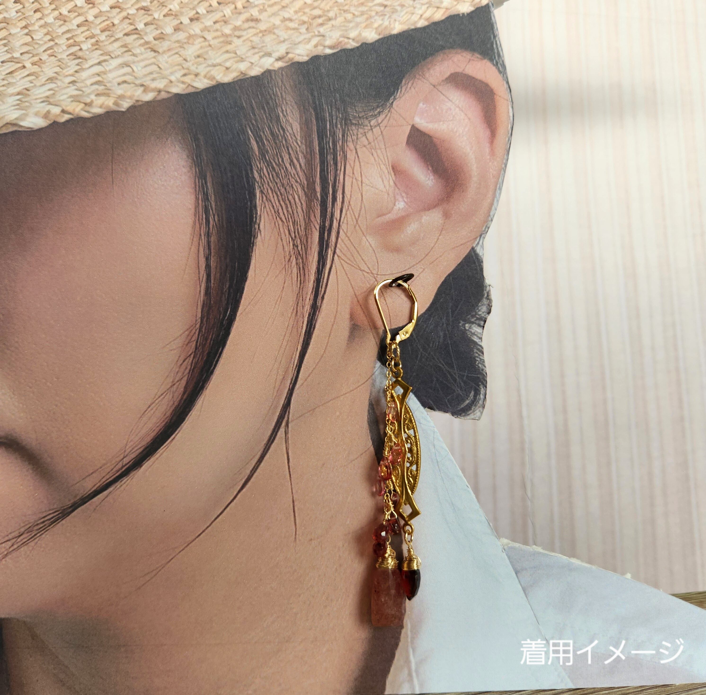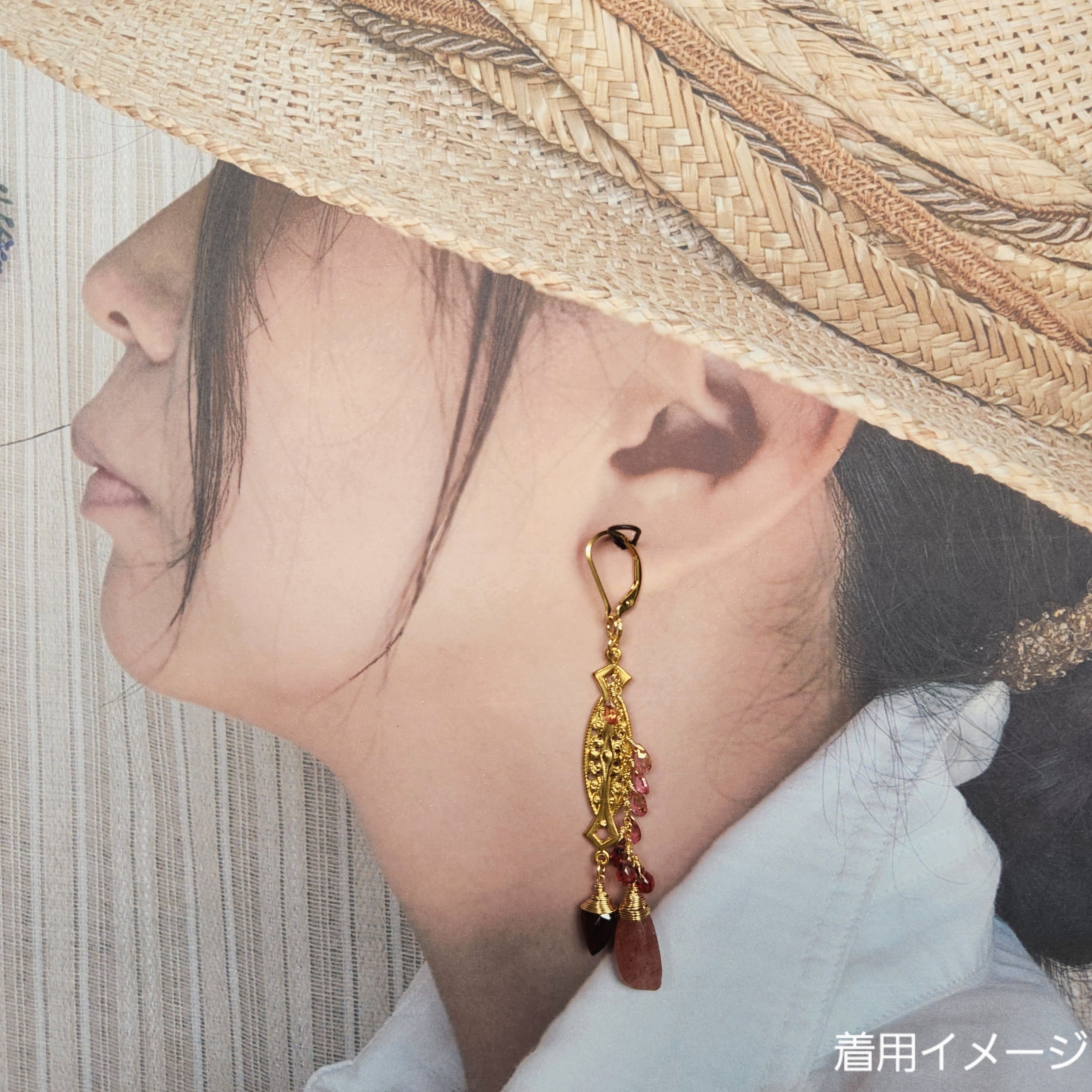 ピンクエピドート×ガーネット×トパーズ×真鍮オーナメント ピアス 25017P