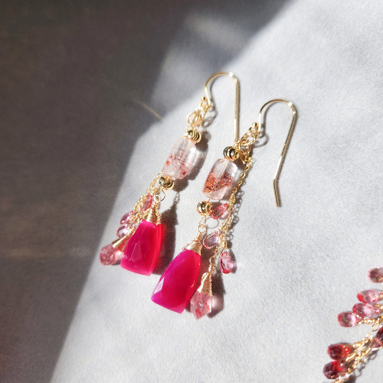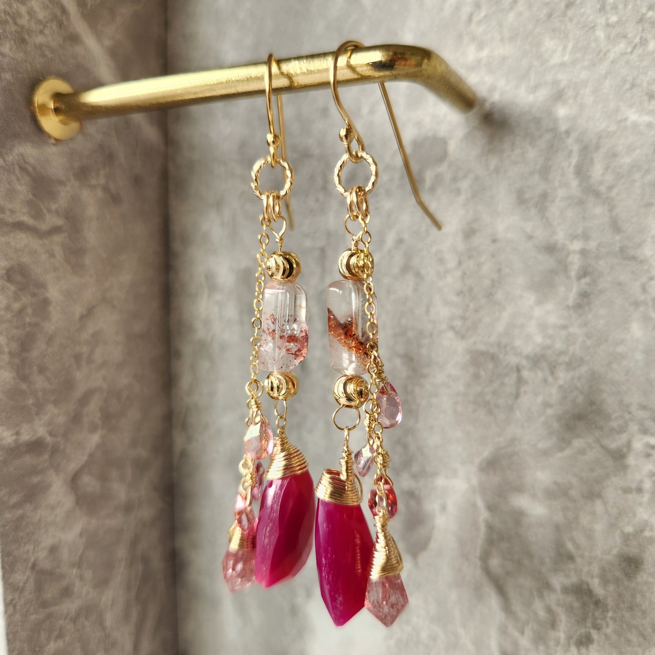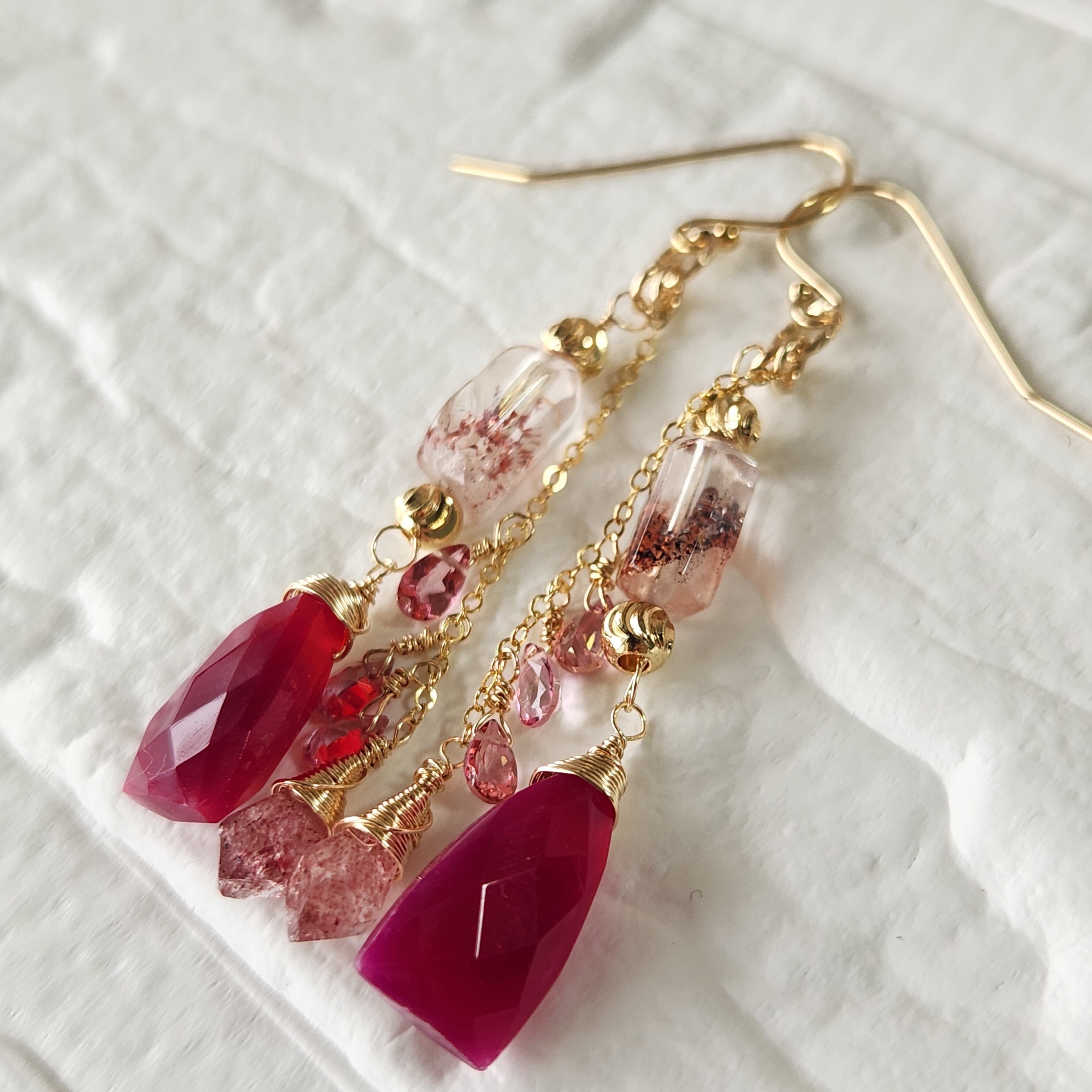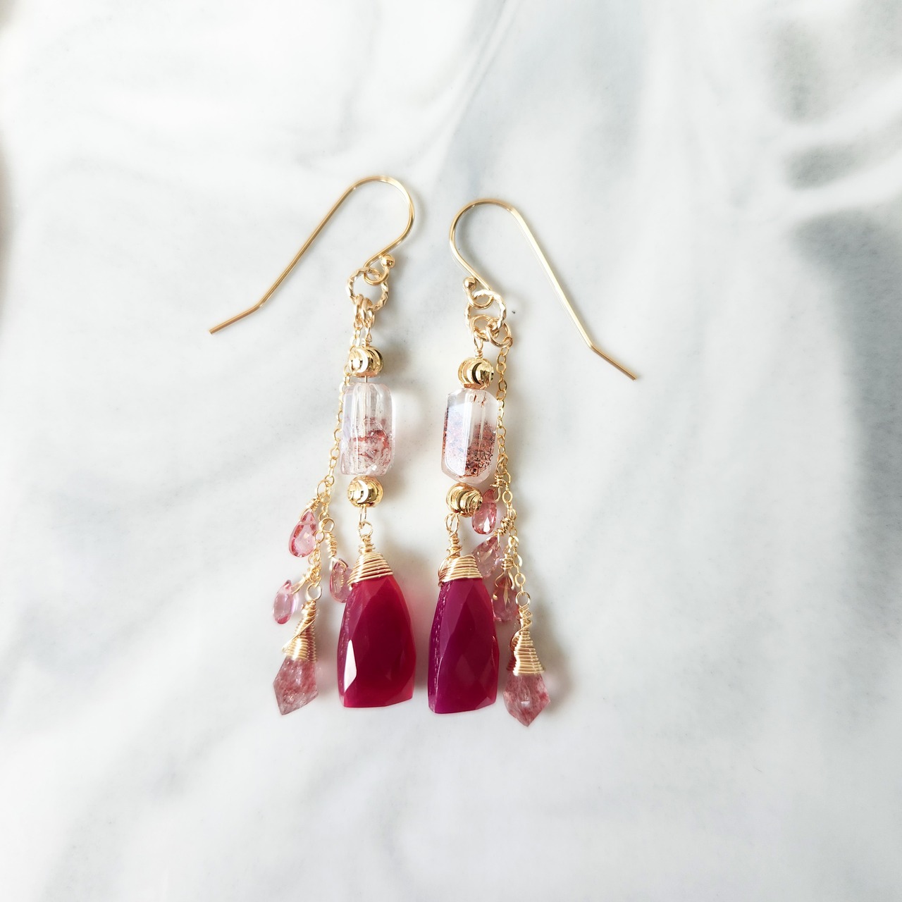 フューシャピンクカルセドニー×ストロベリークォーツ×レピドロクロサイトインクォーツ×トパーズ ピアス 25018P