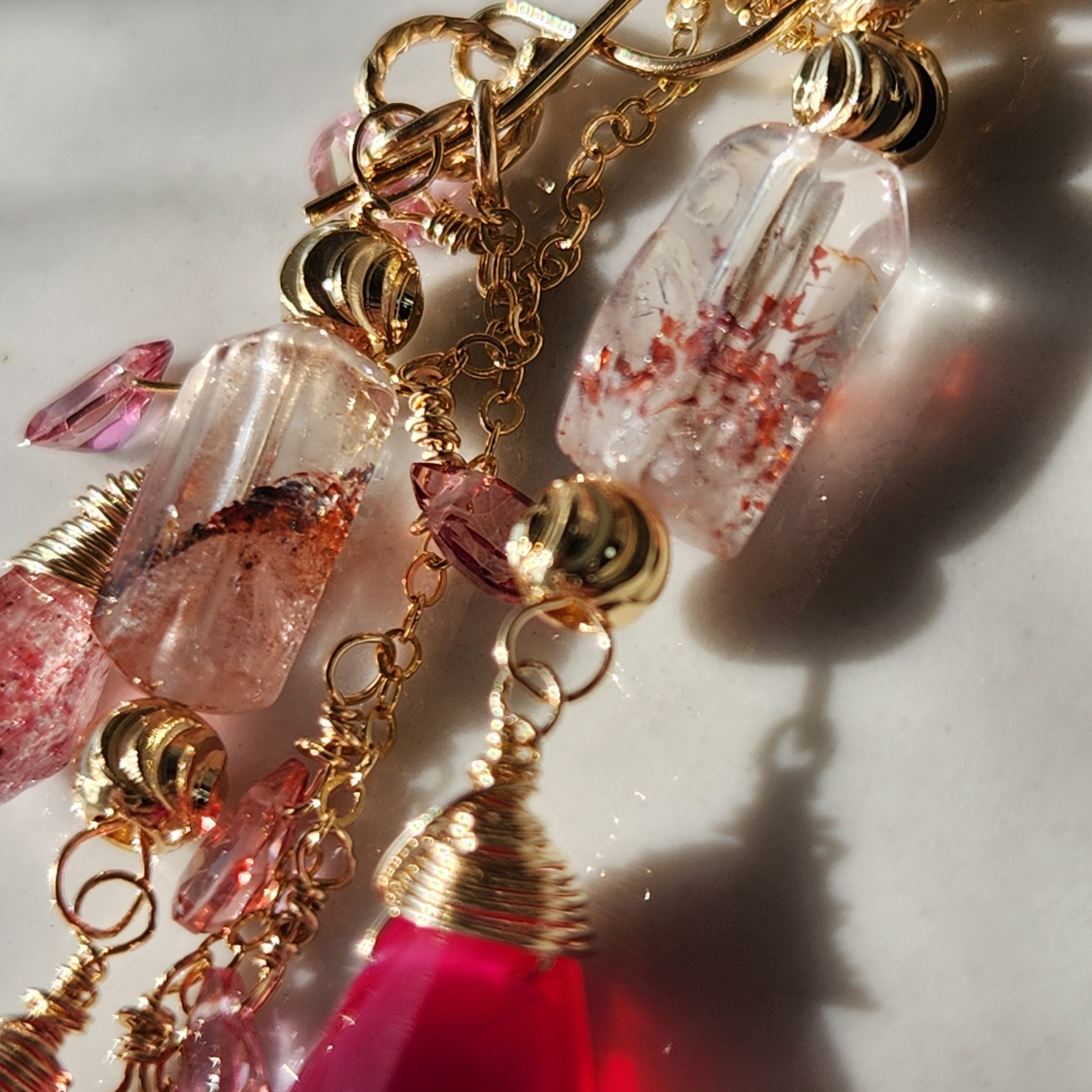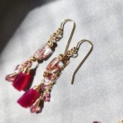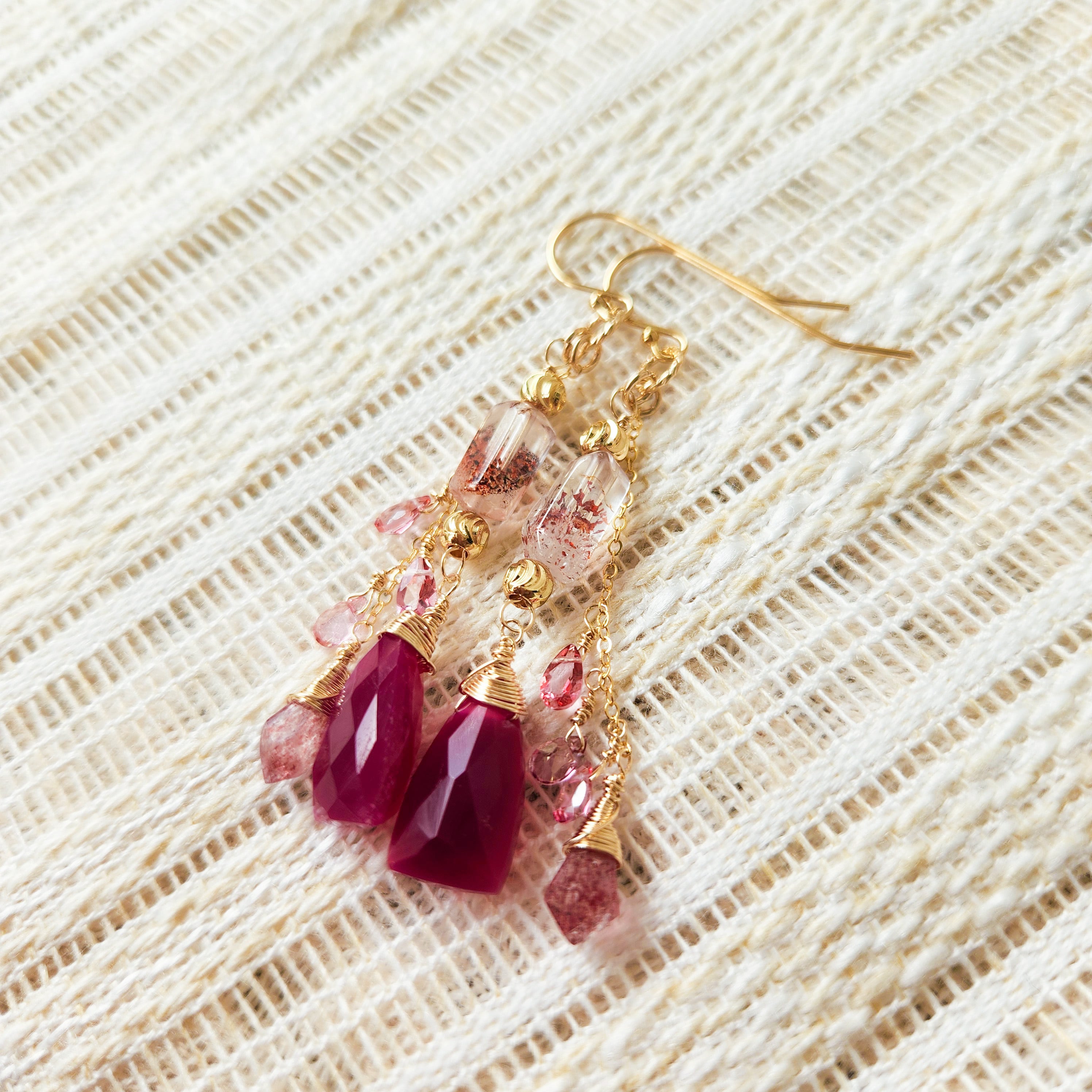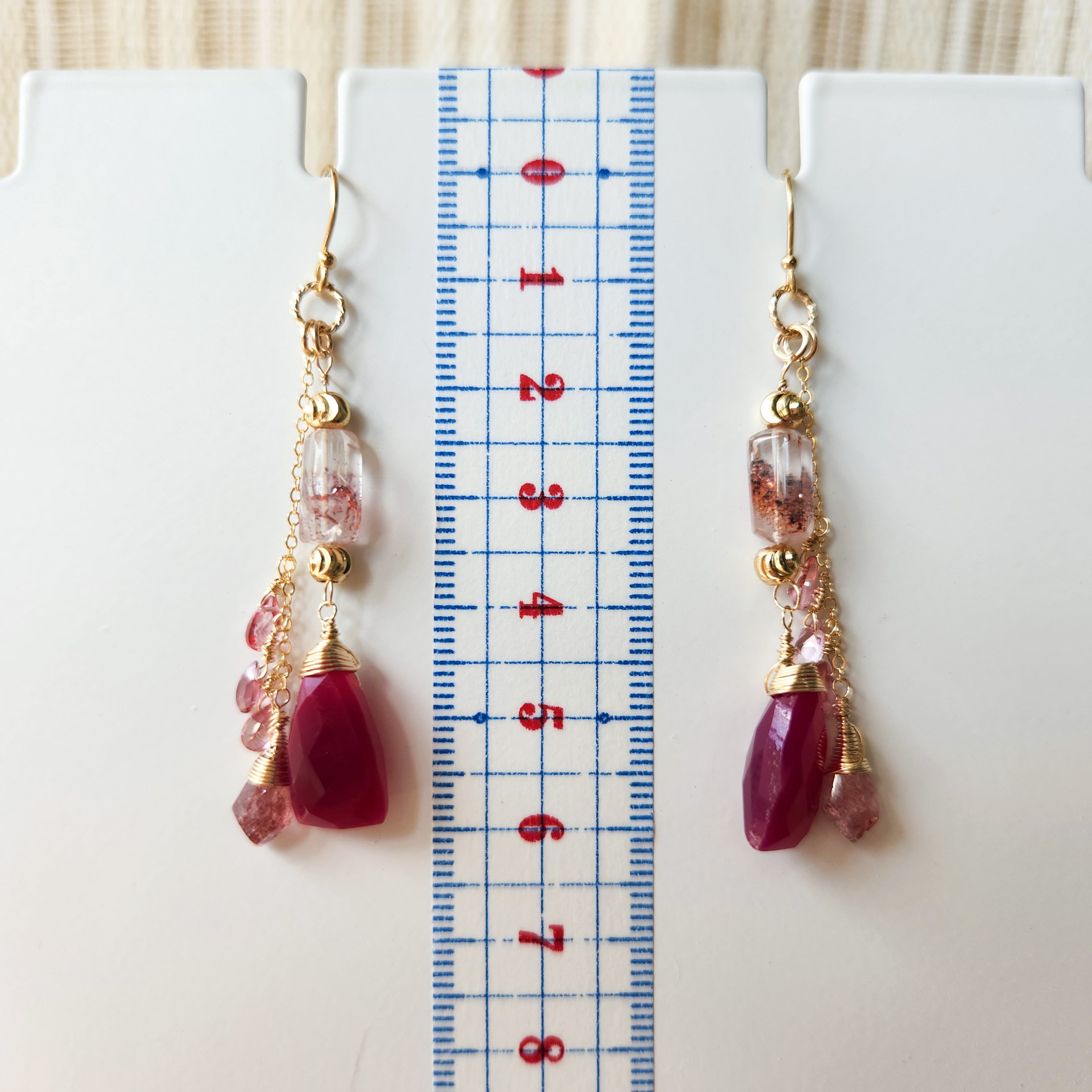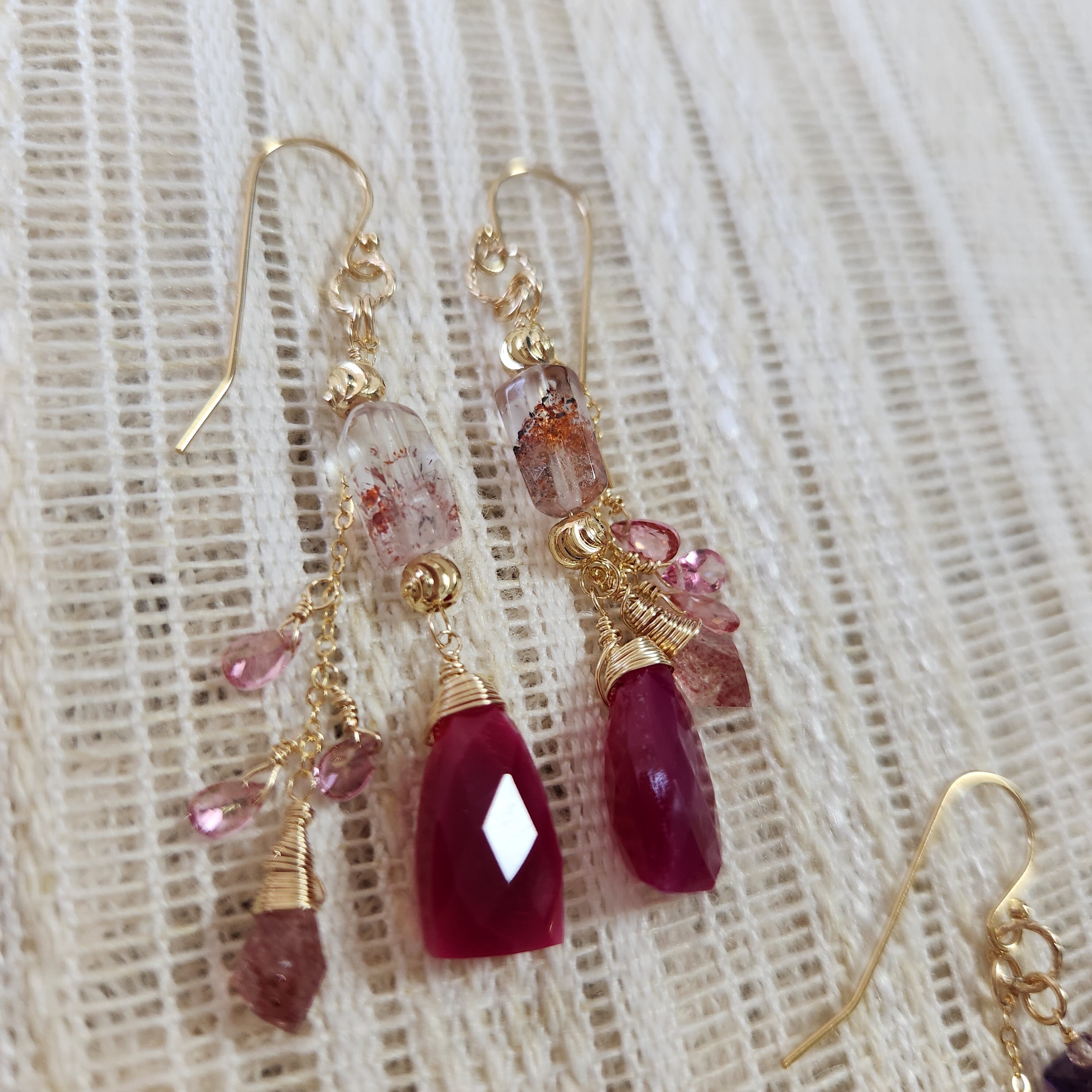 フューシャピンクカルセドニー×ストロベリークォーツ×レピドロクロサイトインクォーツ×トパーズ ピアス 25018P