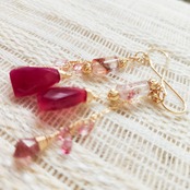 発色の良いフューシャピンクカルセドニーをメインに使用したピアスです。