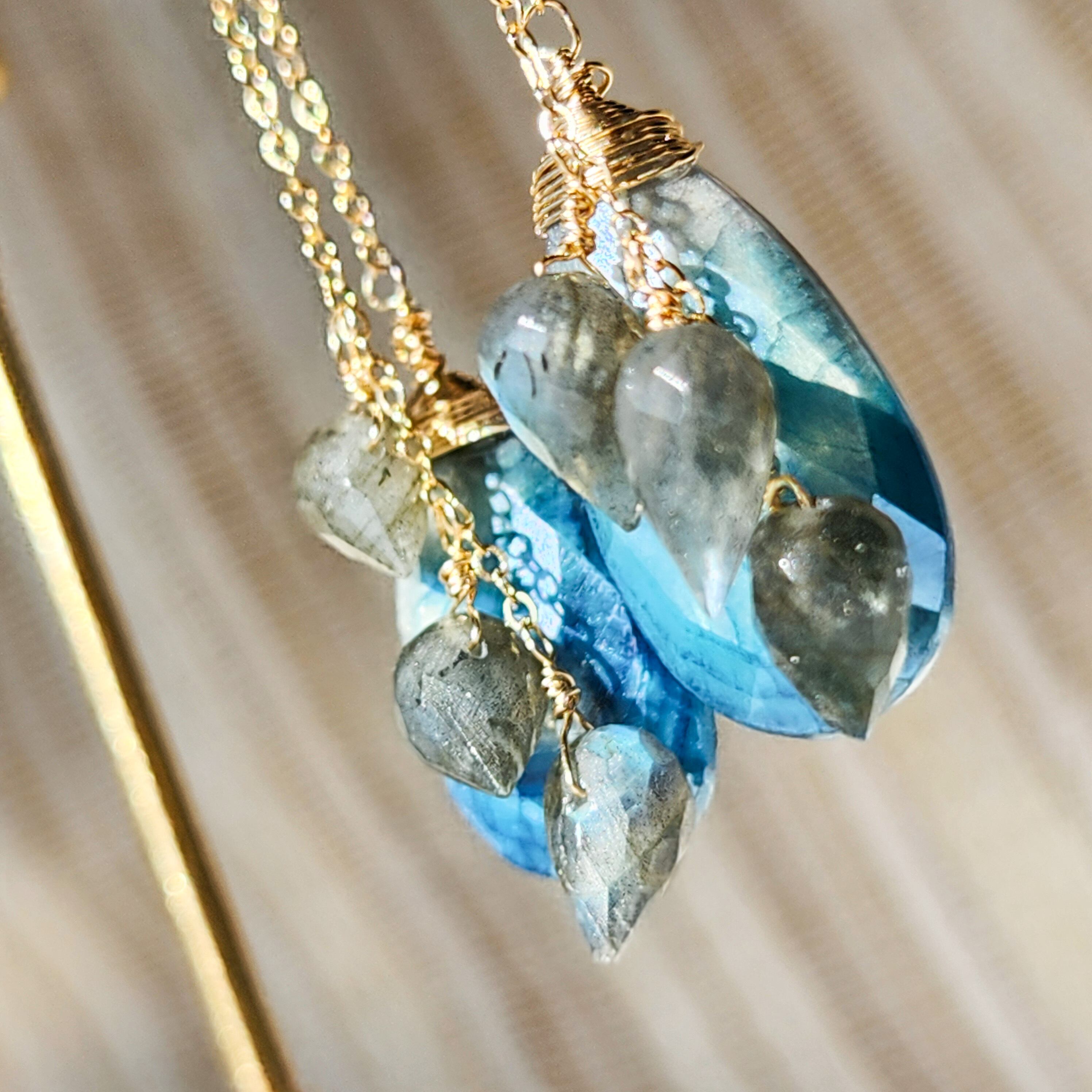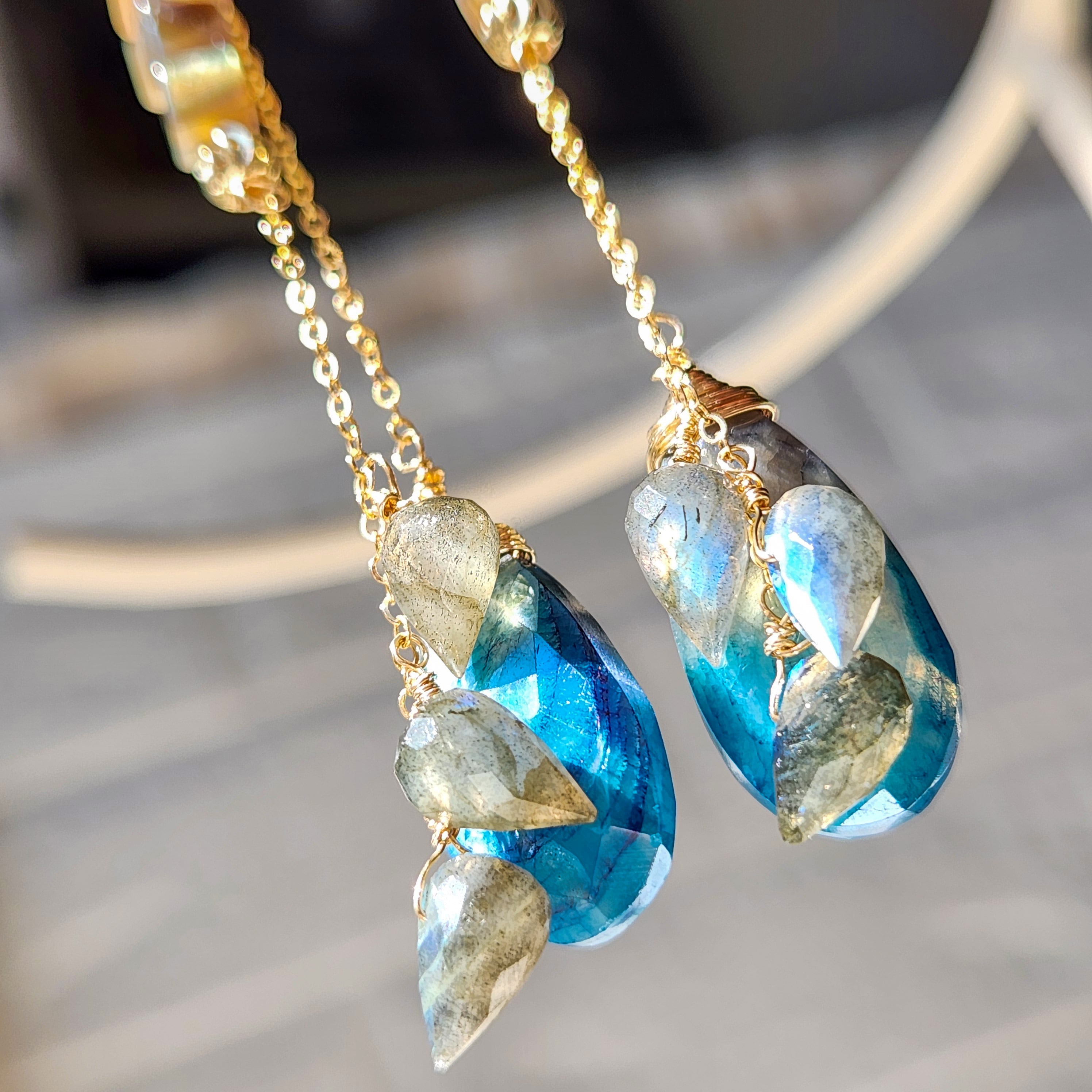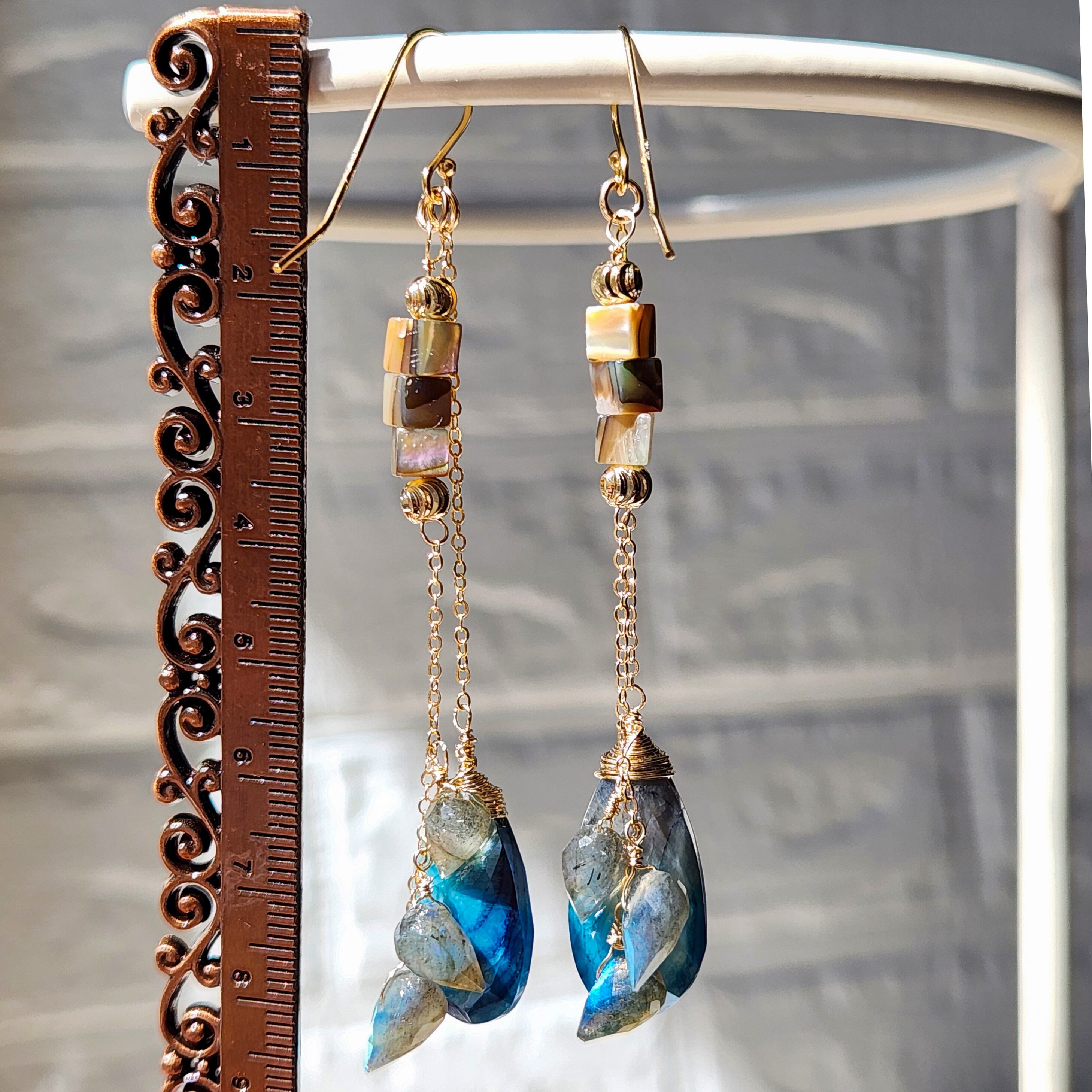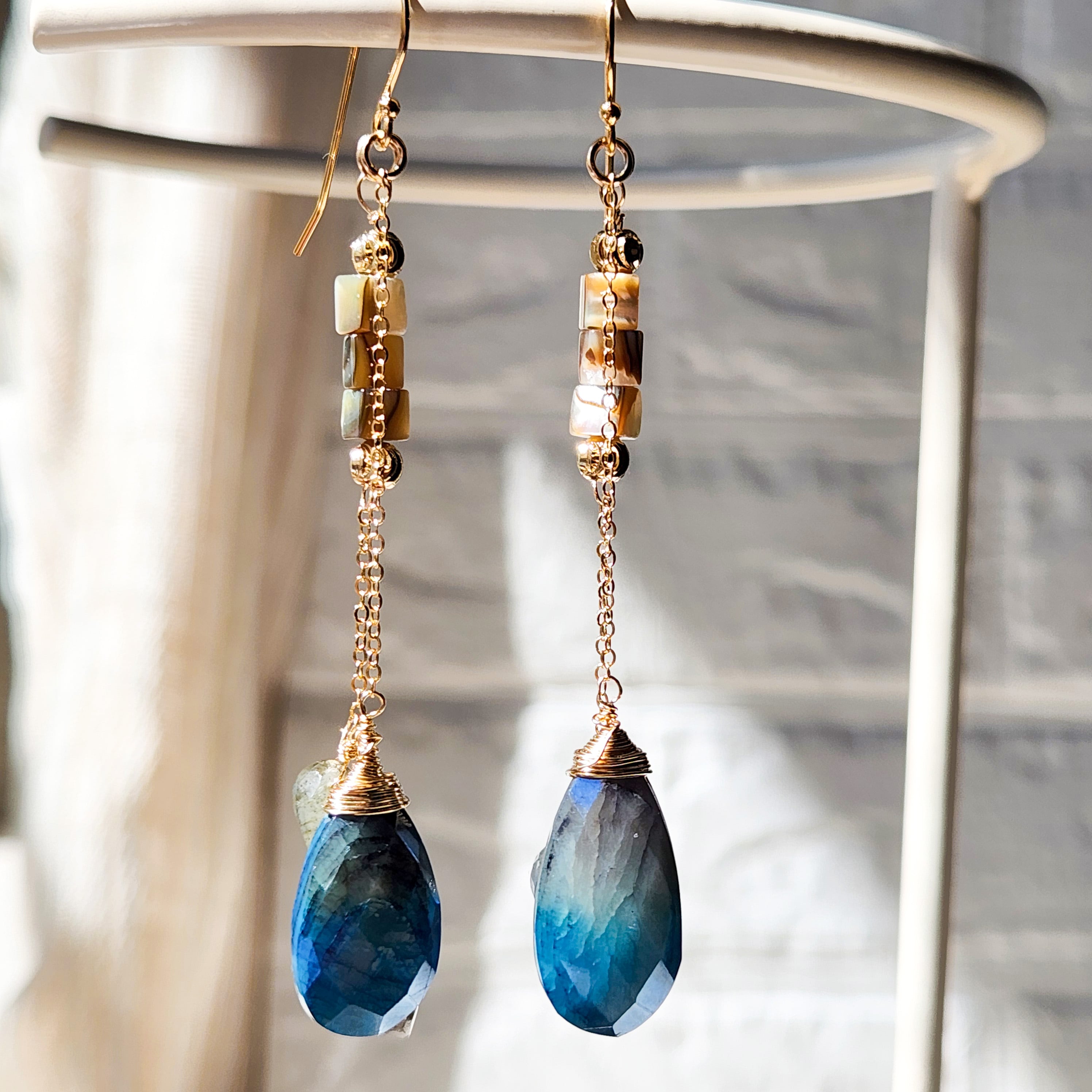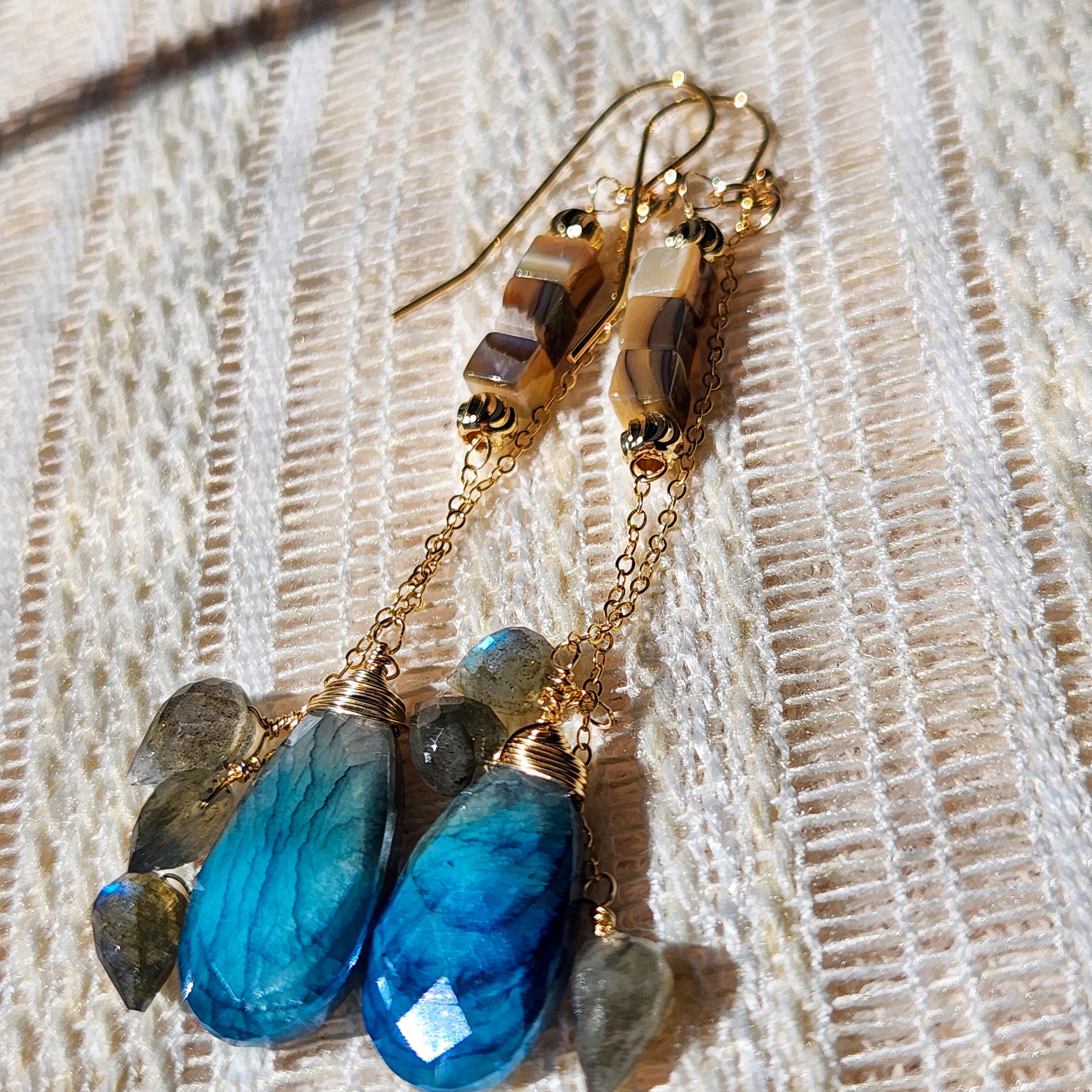シラーの美しいラブラドライトと虹色に輝くアバロンシェルを合わせ、華やかさをプラスしました。