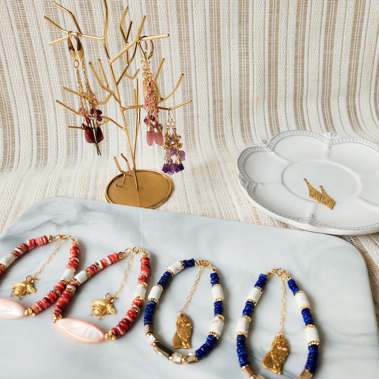 天然石のクラックやコーティングによるカラー素材、またパールなど