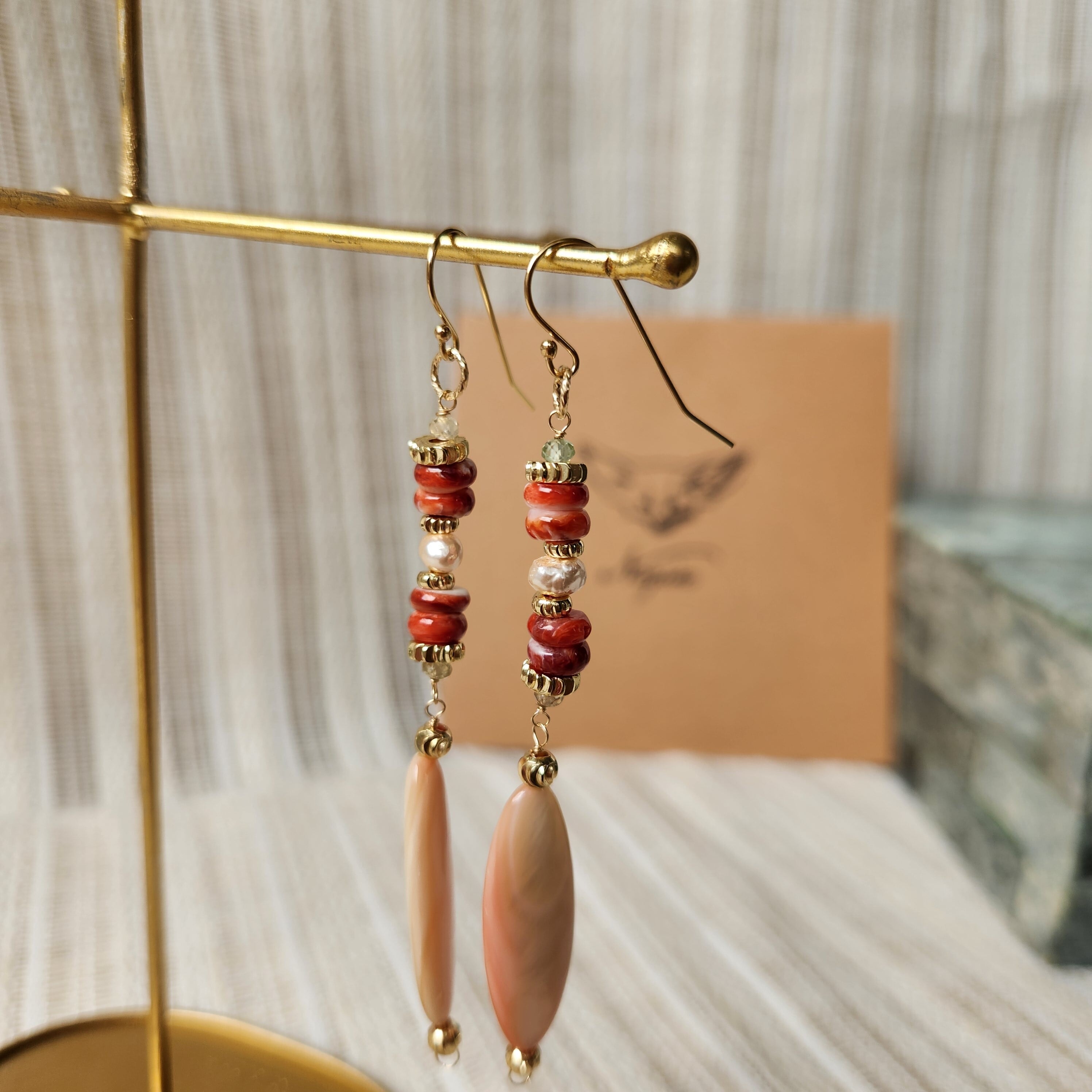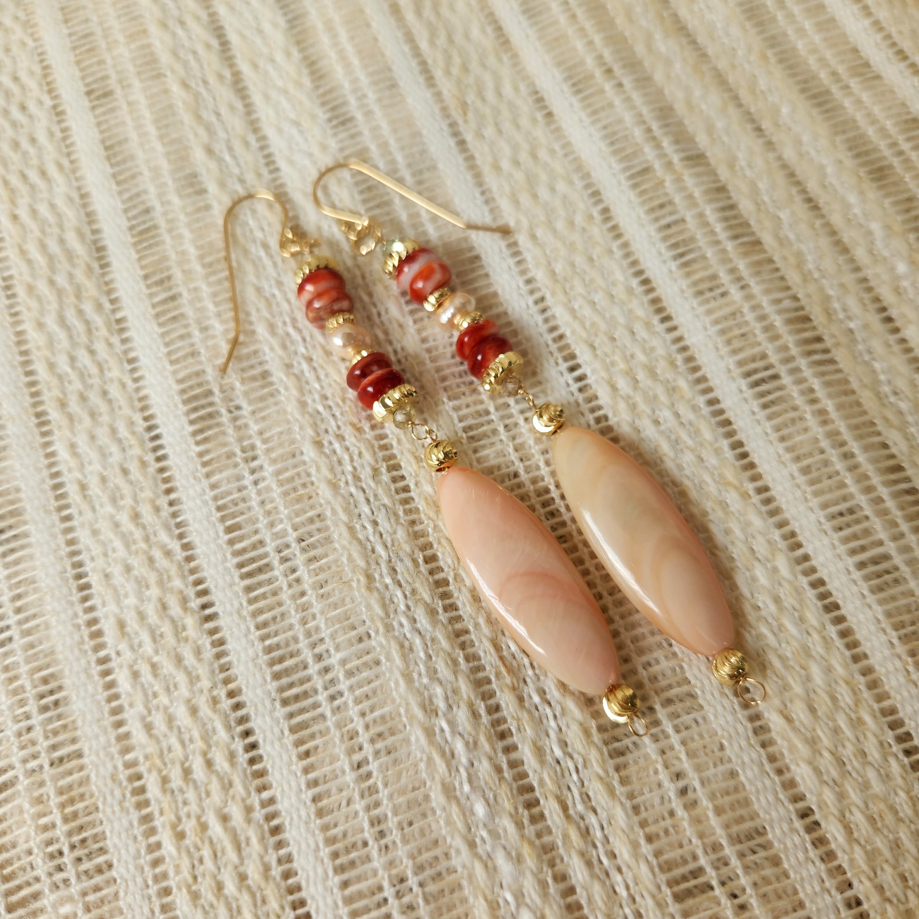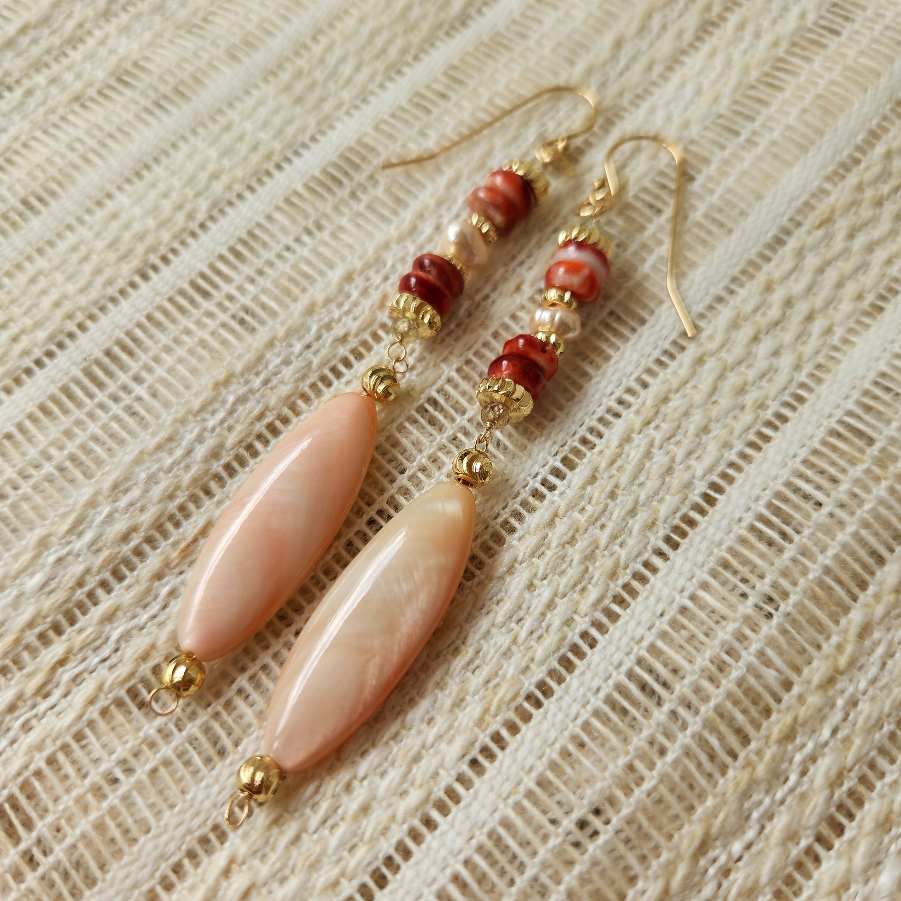 華やかなピンクのマザーオブパールをメインに使用したピアスです。