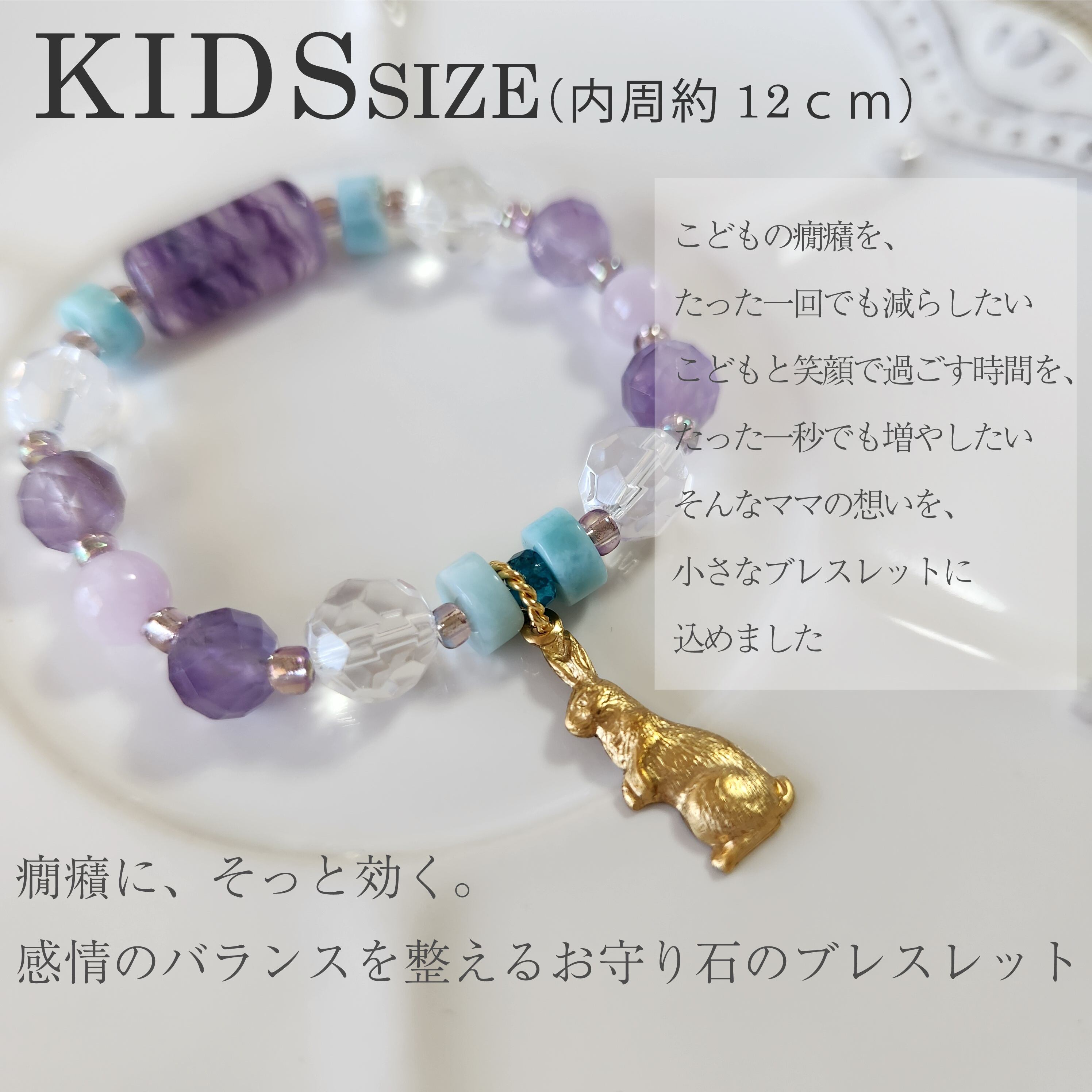 こどもの癇癪を鎮めるパワーストーンのブレスレット。心のバランスを整える 天然石のお守り うさぎ 25025K