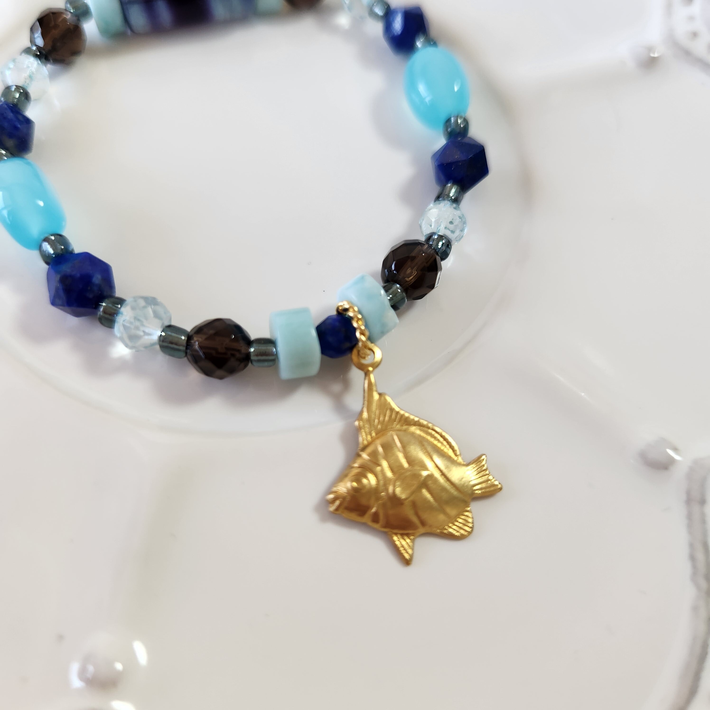 こどもの癇癪を鎮めるパワーストーンのブレスレット。心のバランスを整える 天然石のお守り さかな25029K