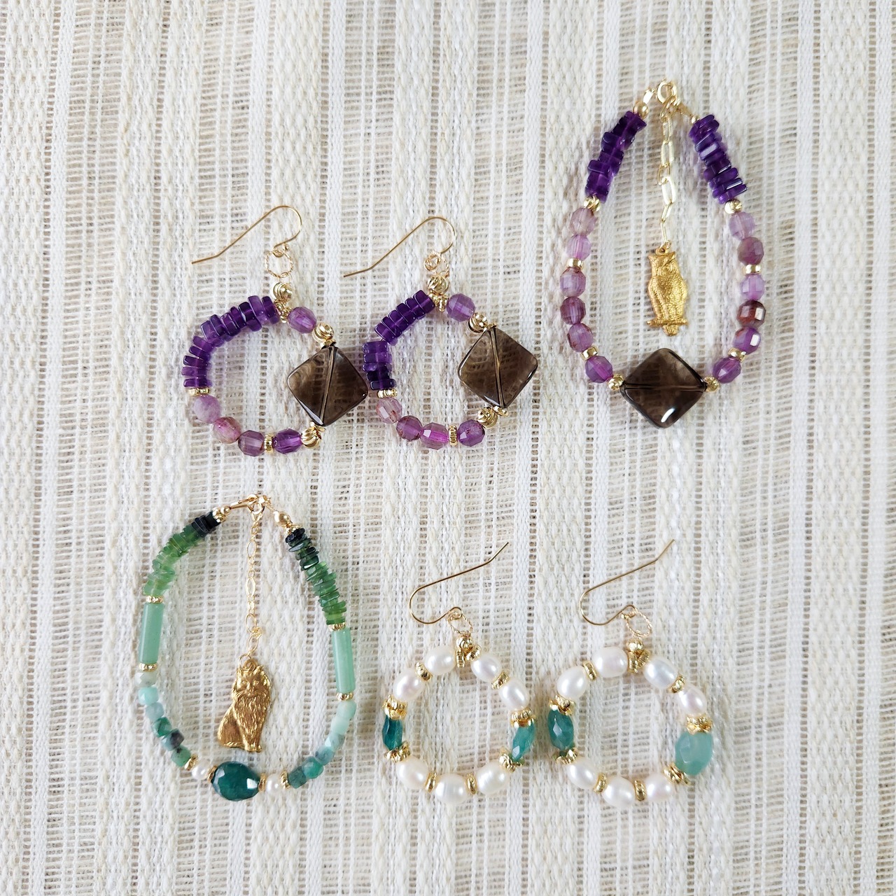 パワーストーンとしても人気があるスモーキークォーツとアメジストの組み合わせなので、