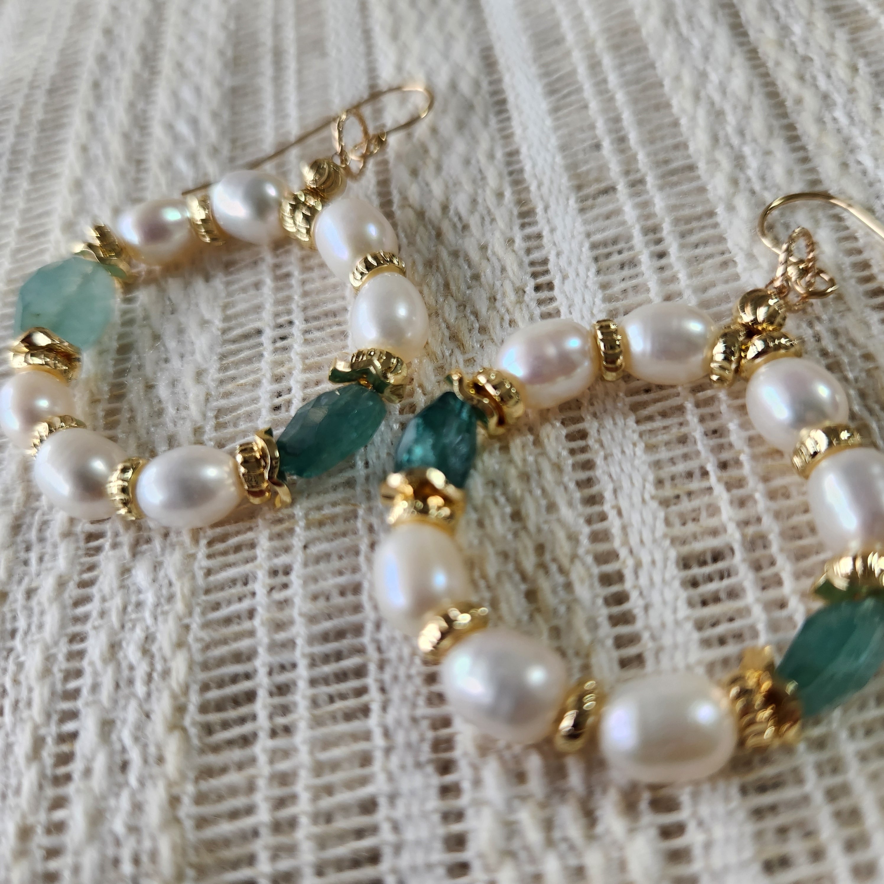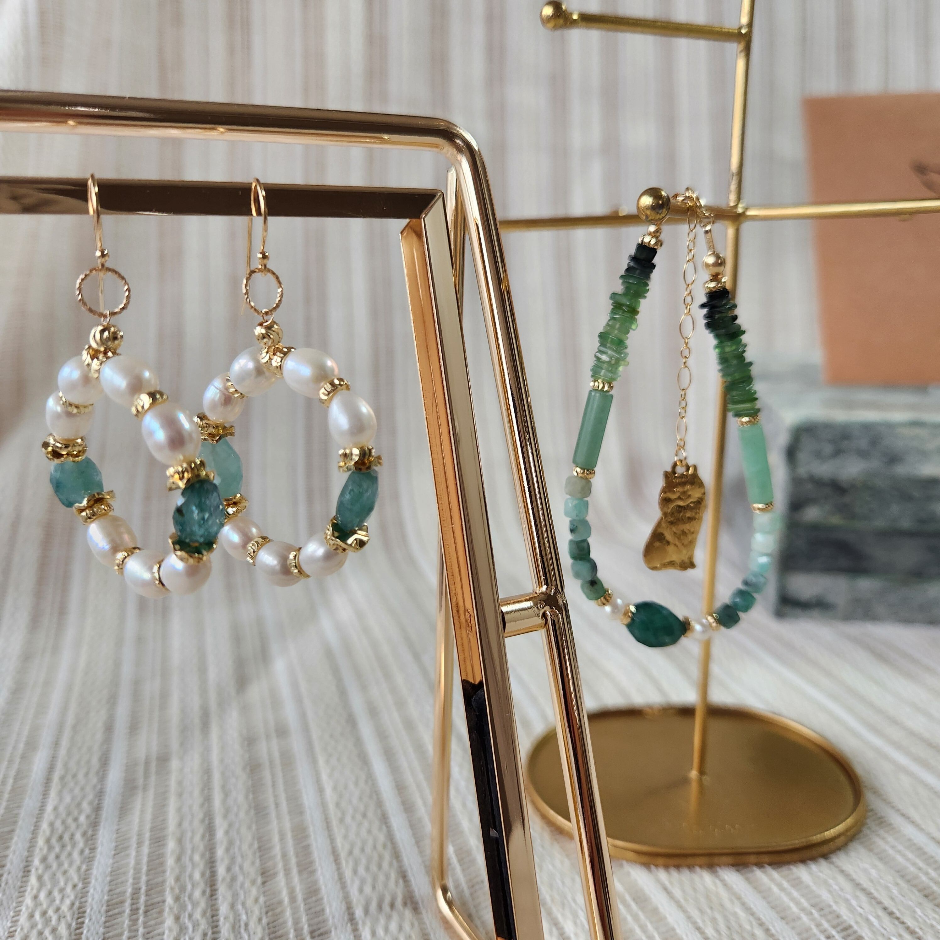 照りの良い約7.5mmの淡水パールと組み合わせて、上品で柔らかい印象に仕上げました。