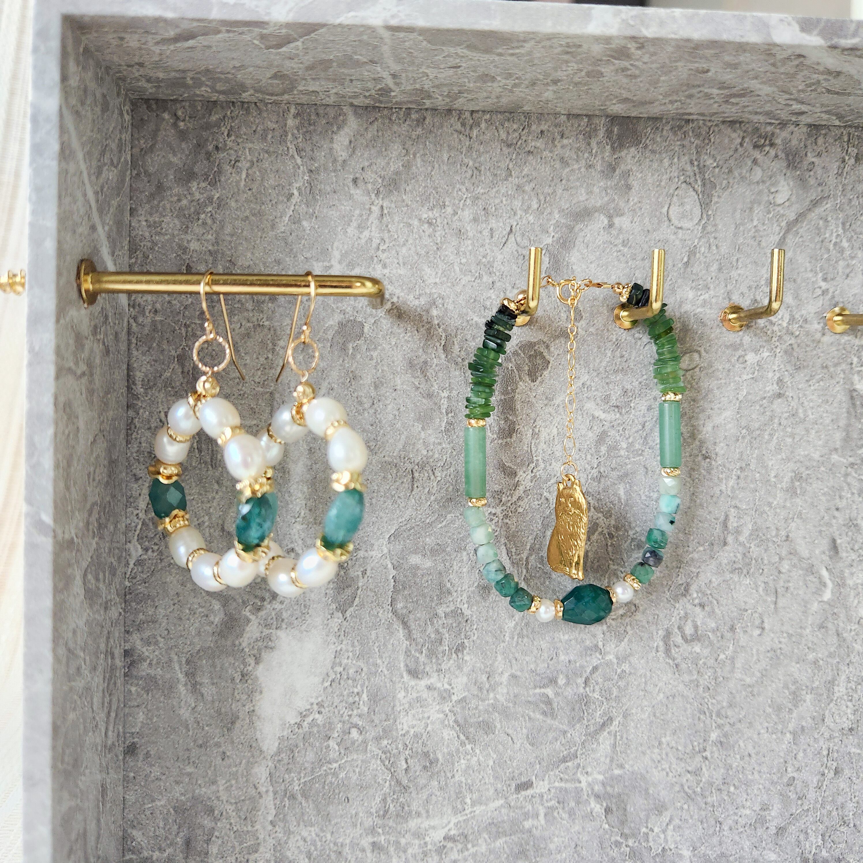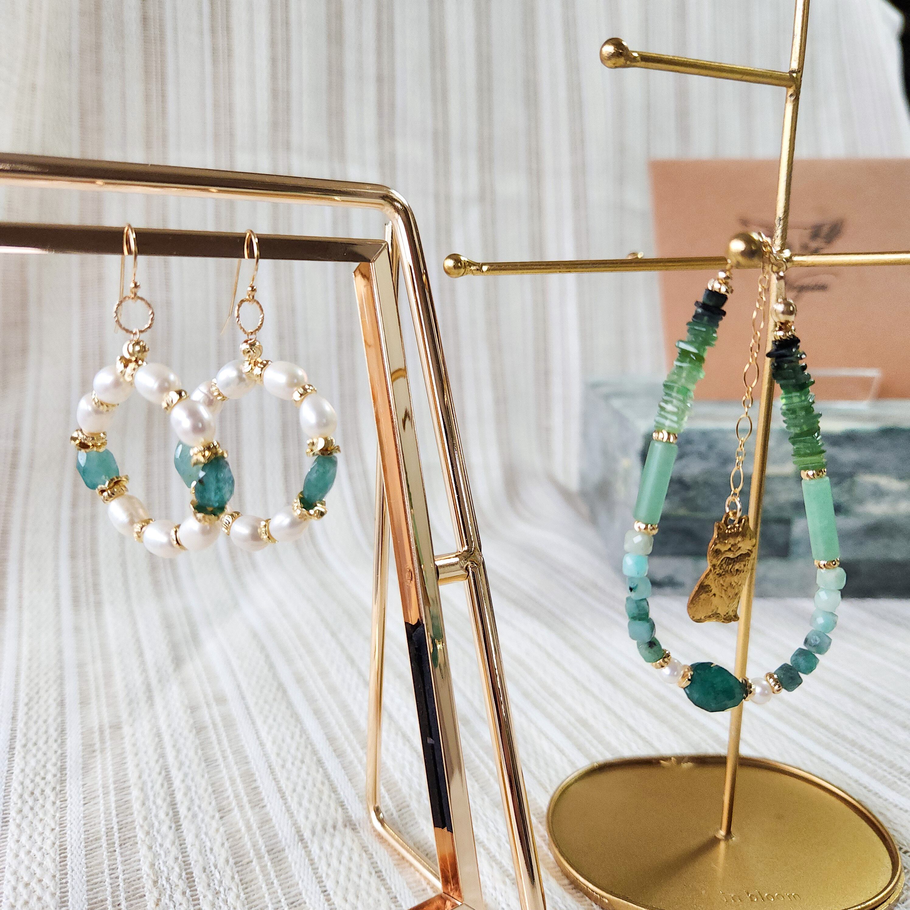様々なグリーンを楽しめるブレスレットです。