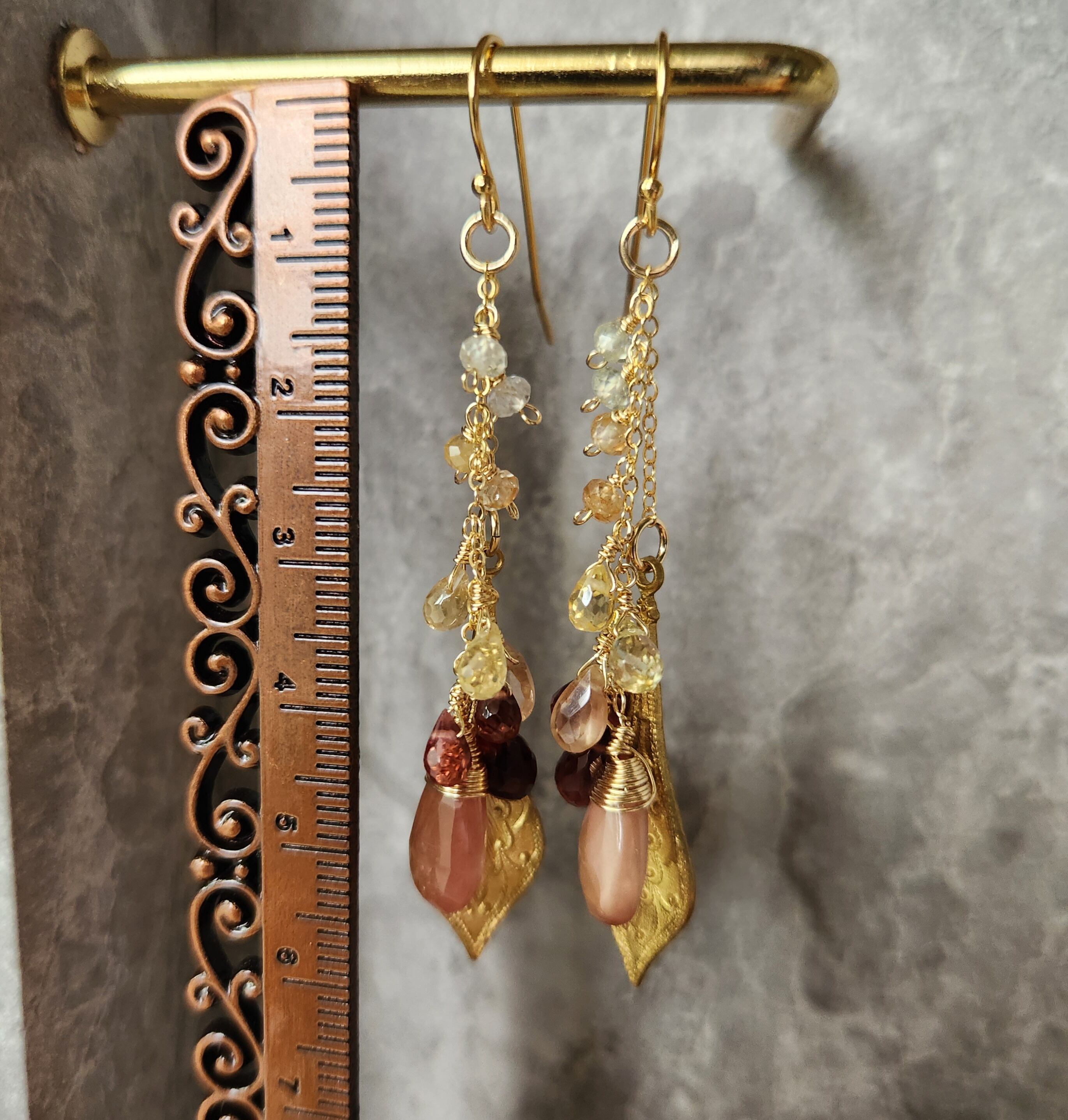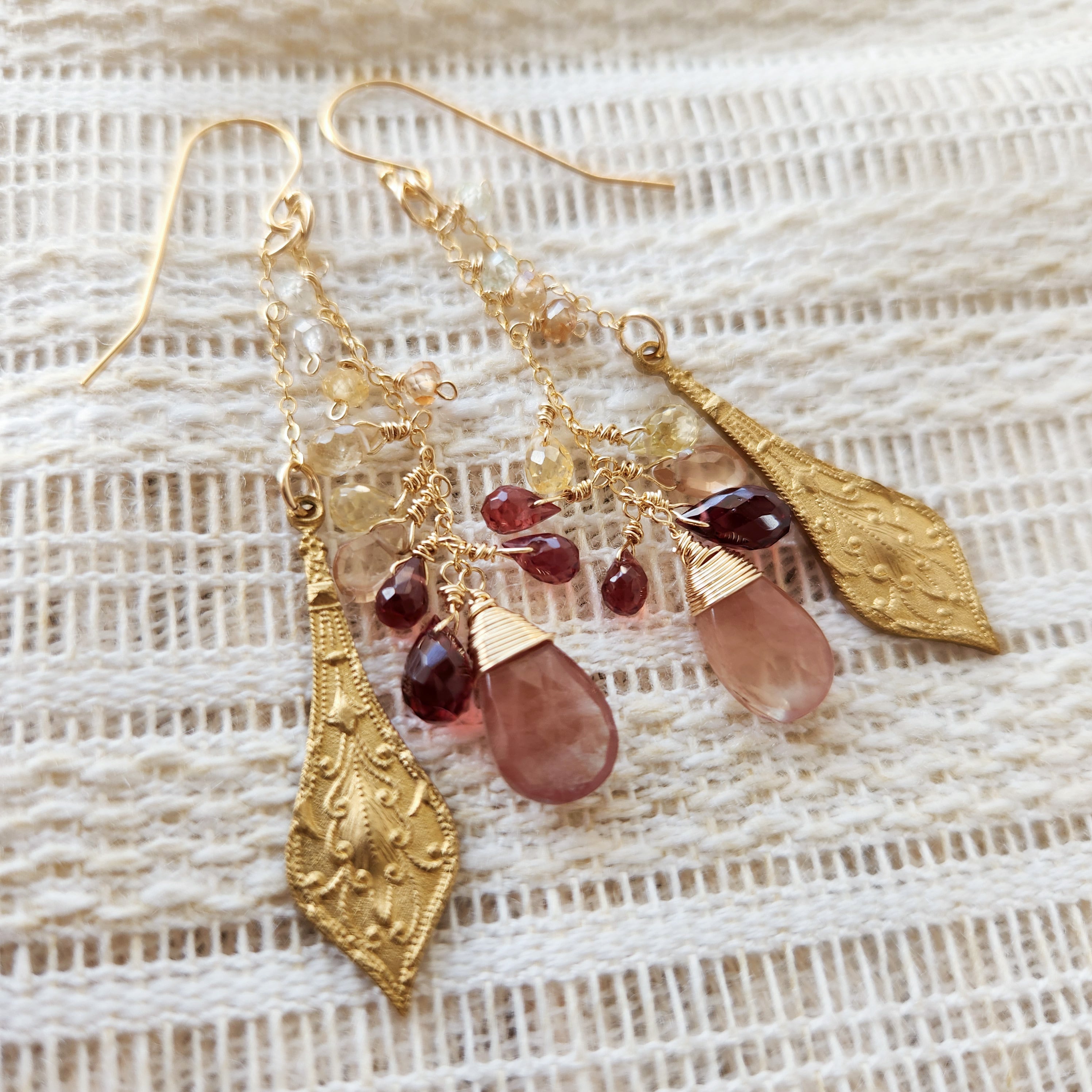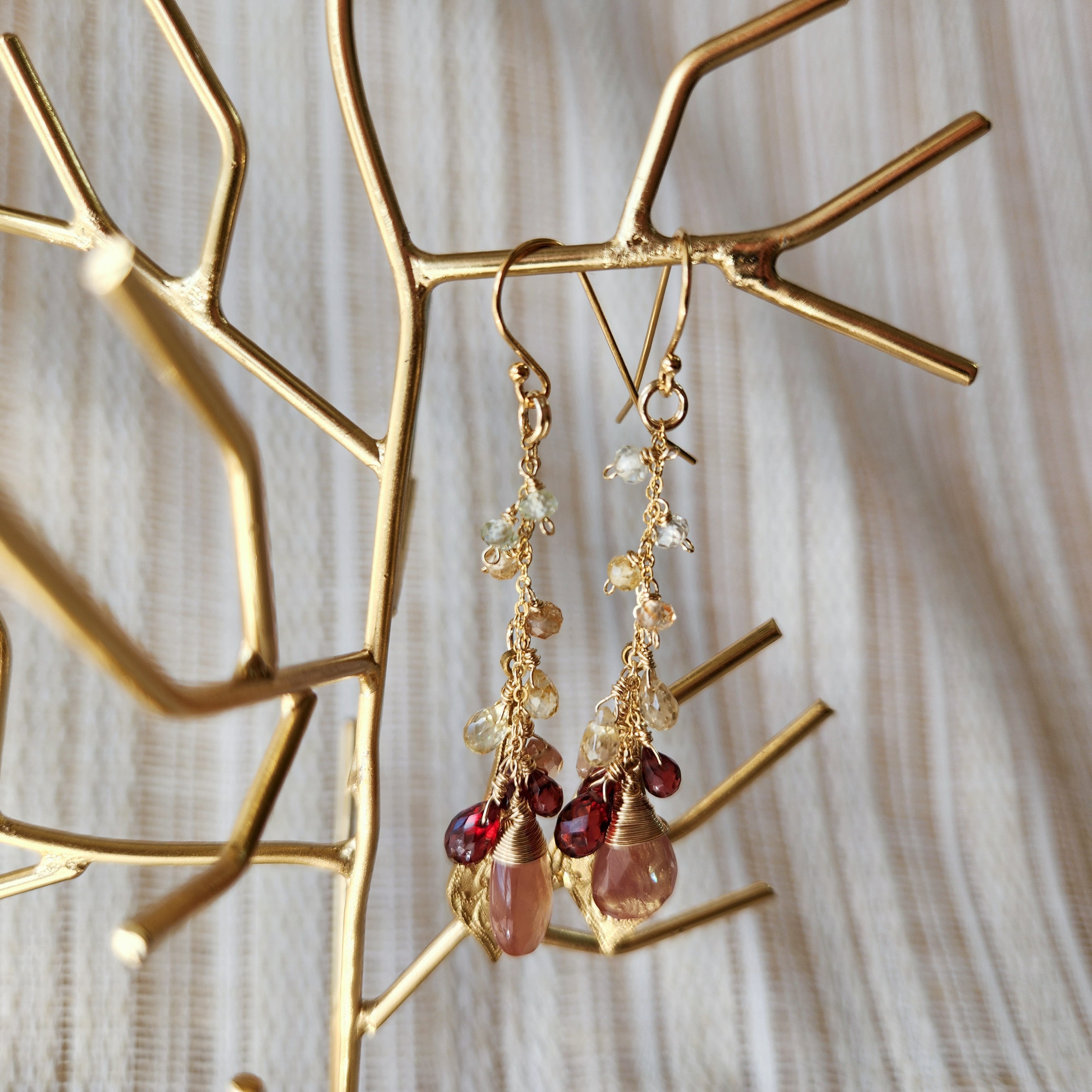 アンデシン×ガーネット×ジルコン×真鍮オーナメント ピアス 25042P
