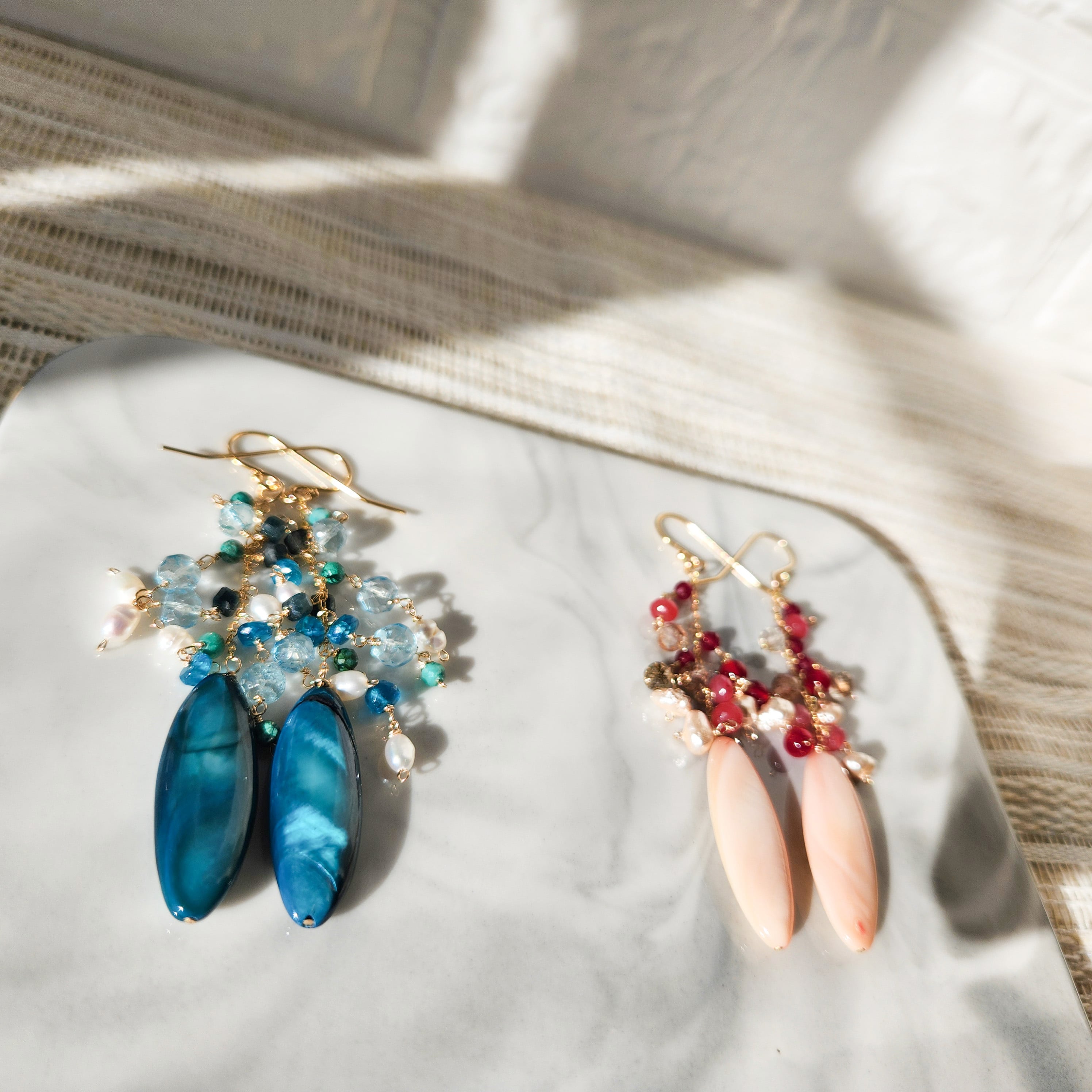 天然石のクラックやコーティングによるカラー素材、またパールなど