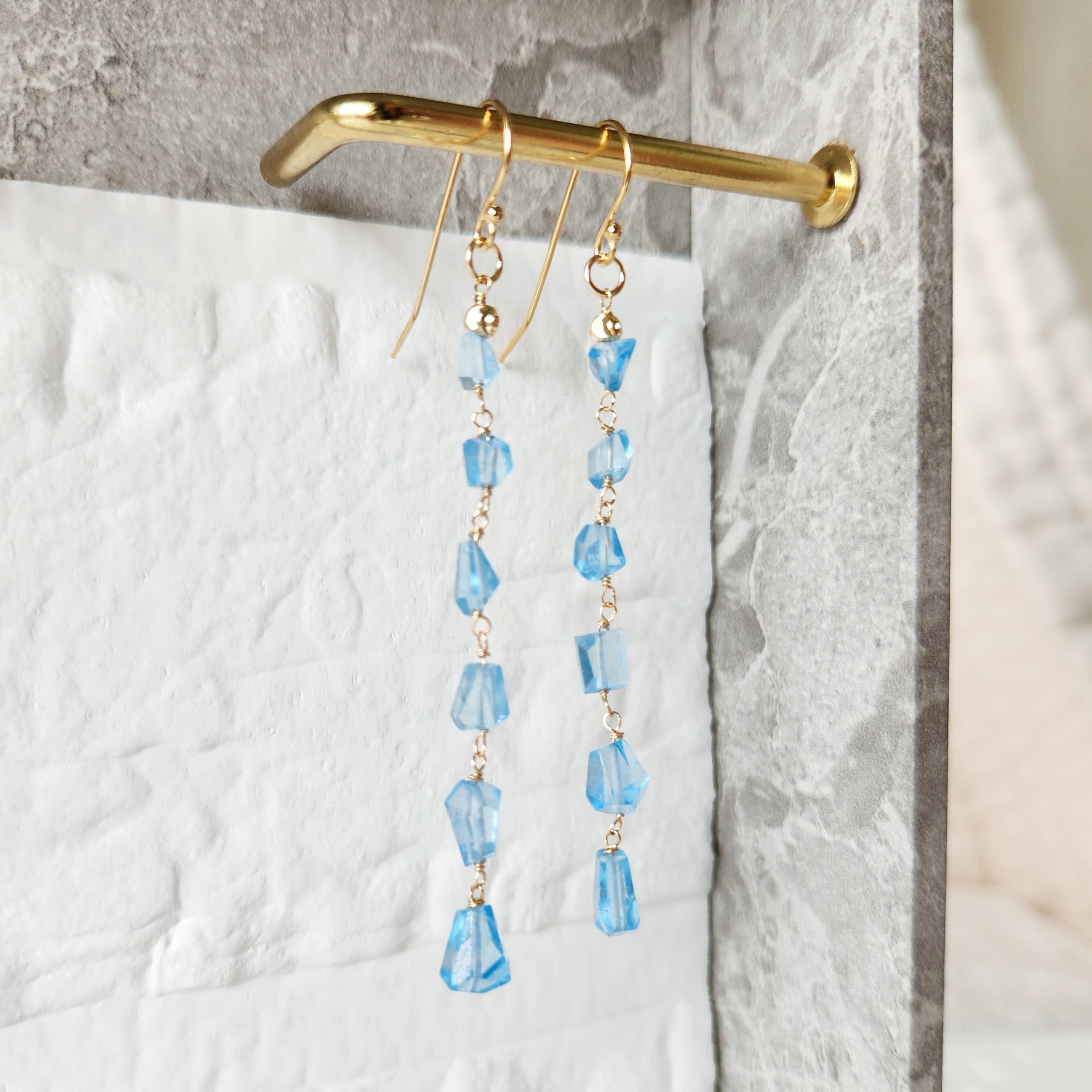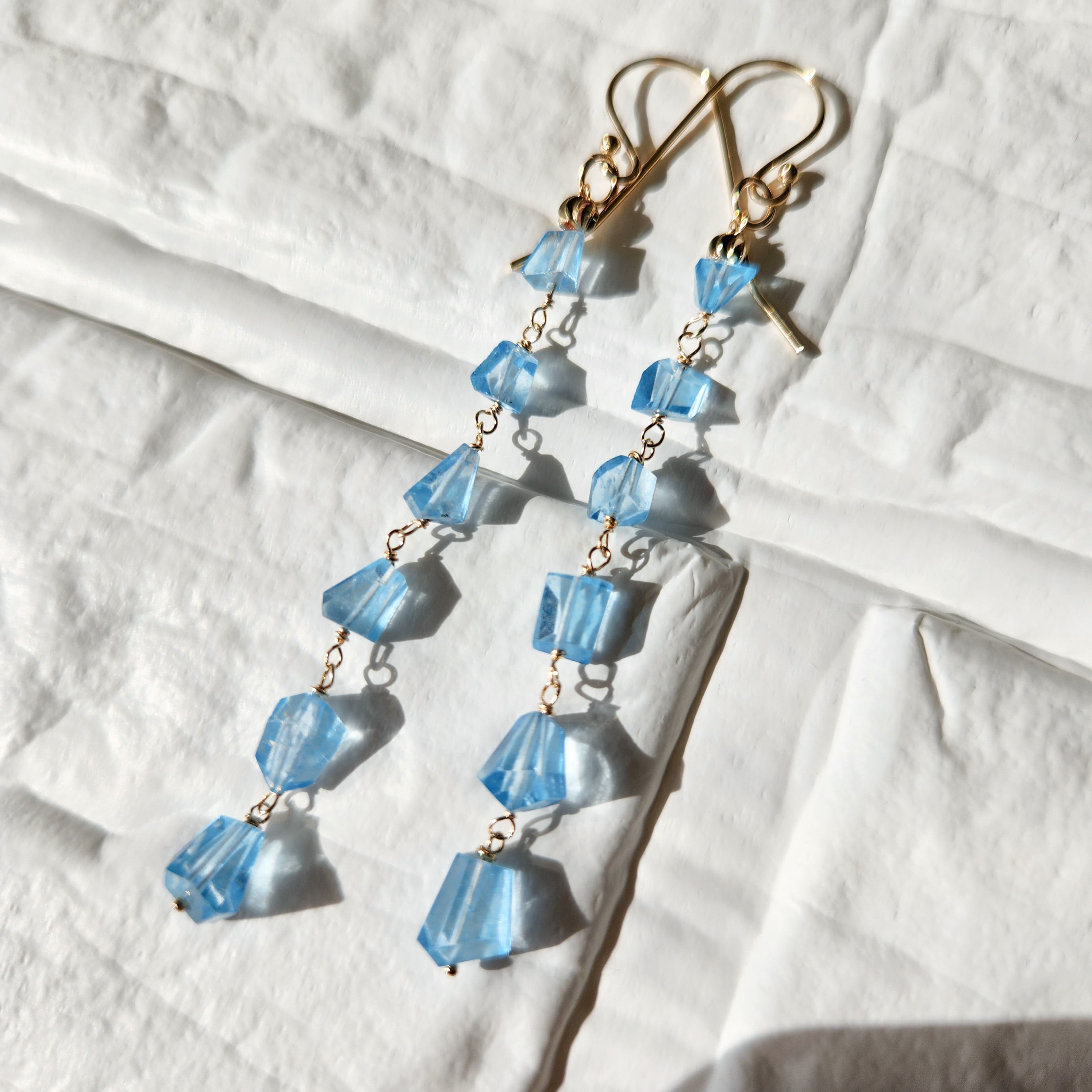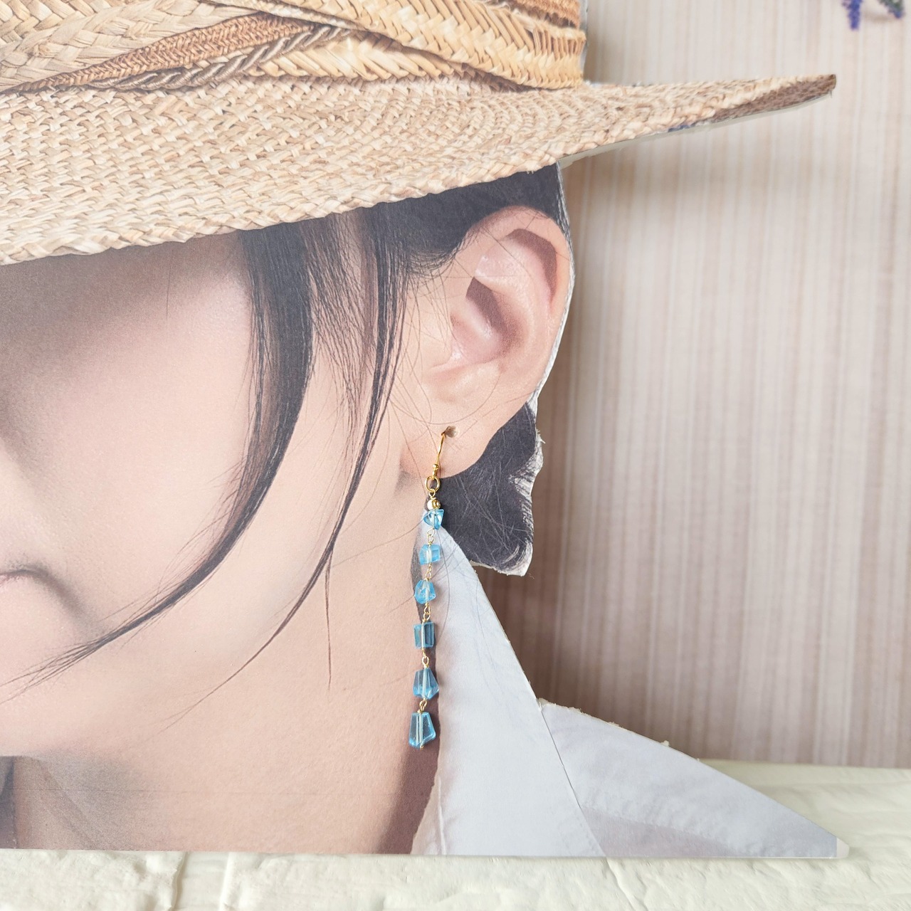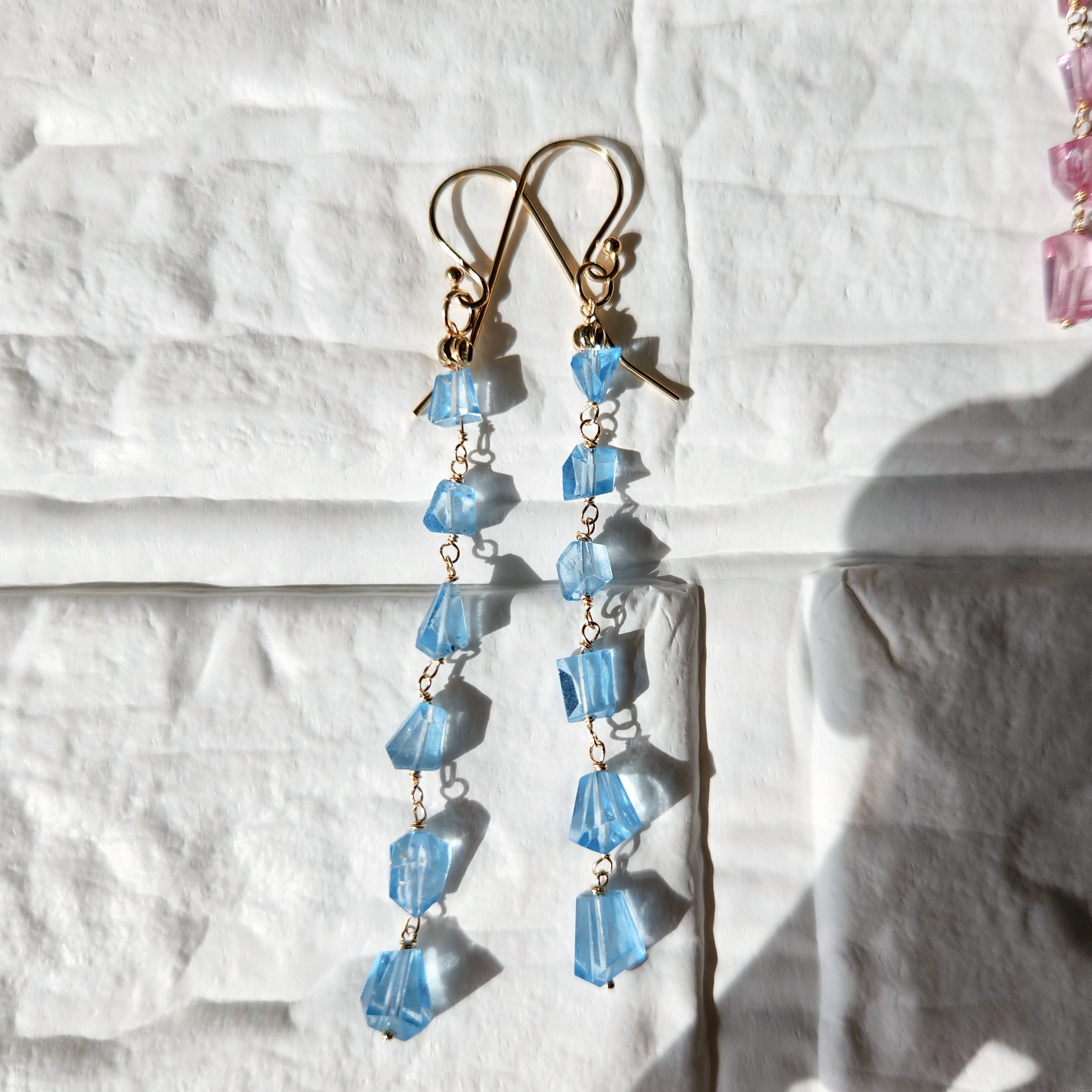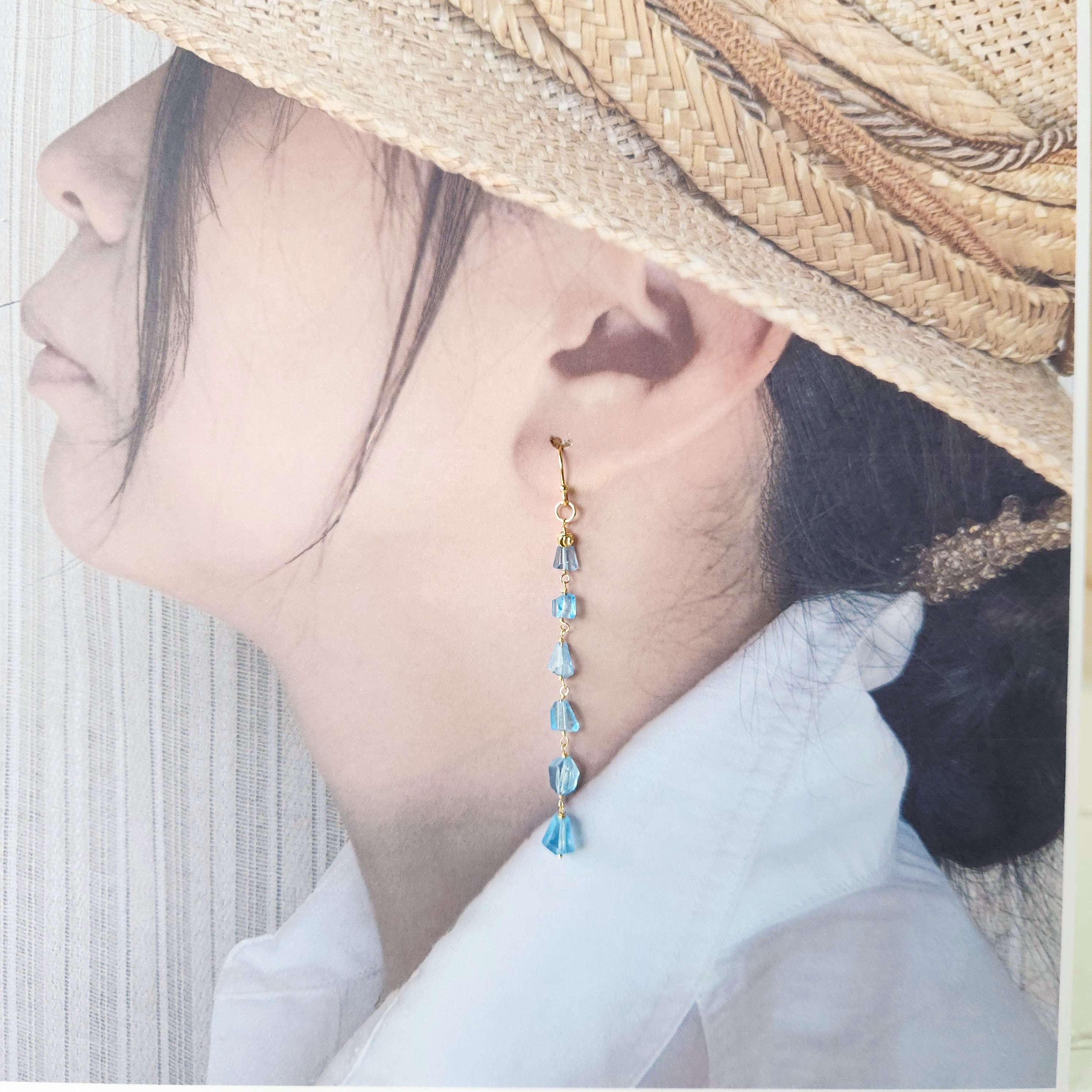 ランダムな形のトパーズをつなぎ合わせたピアスです。
