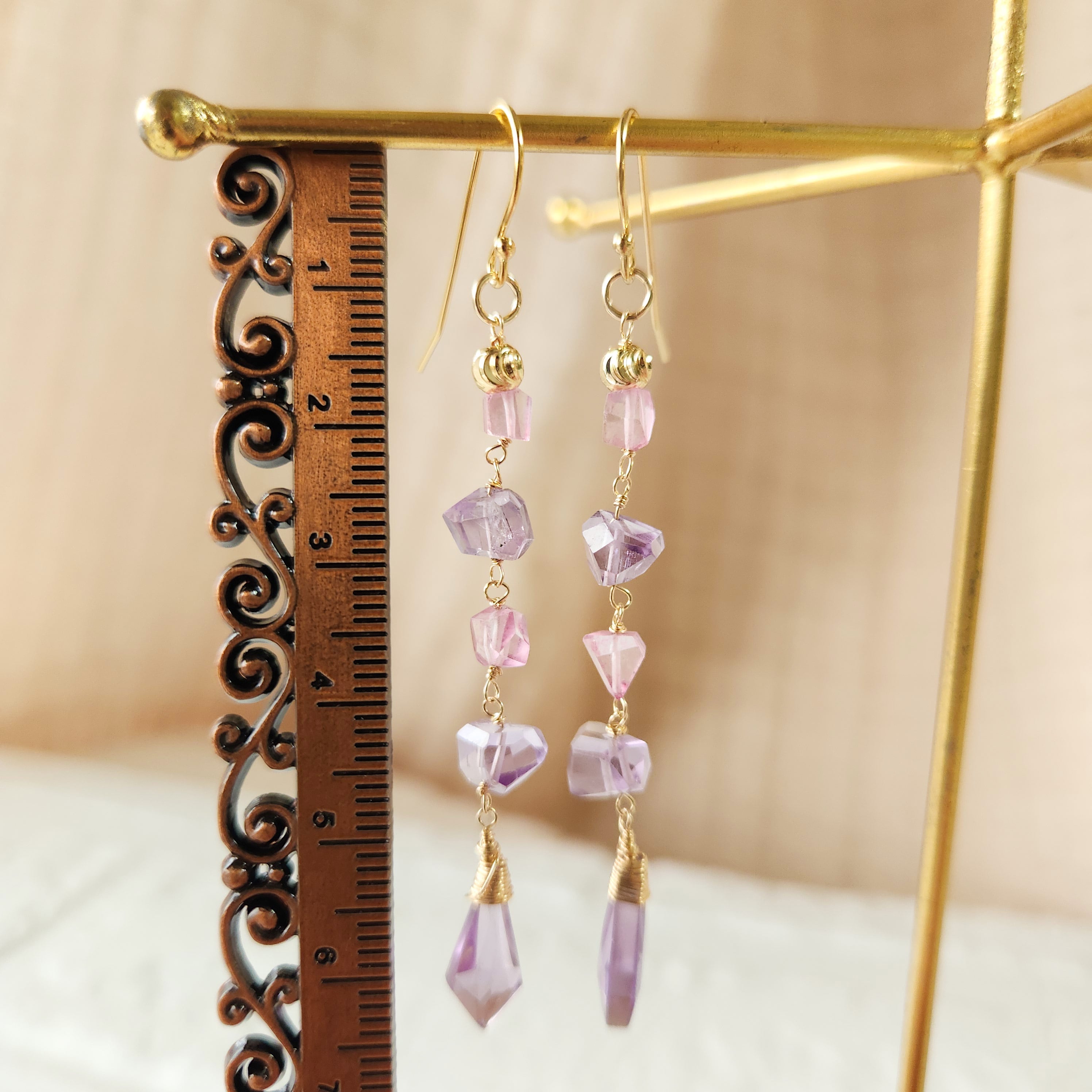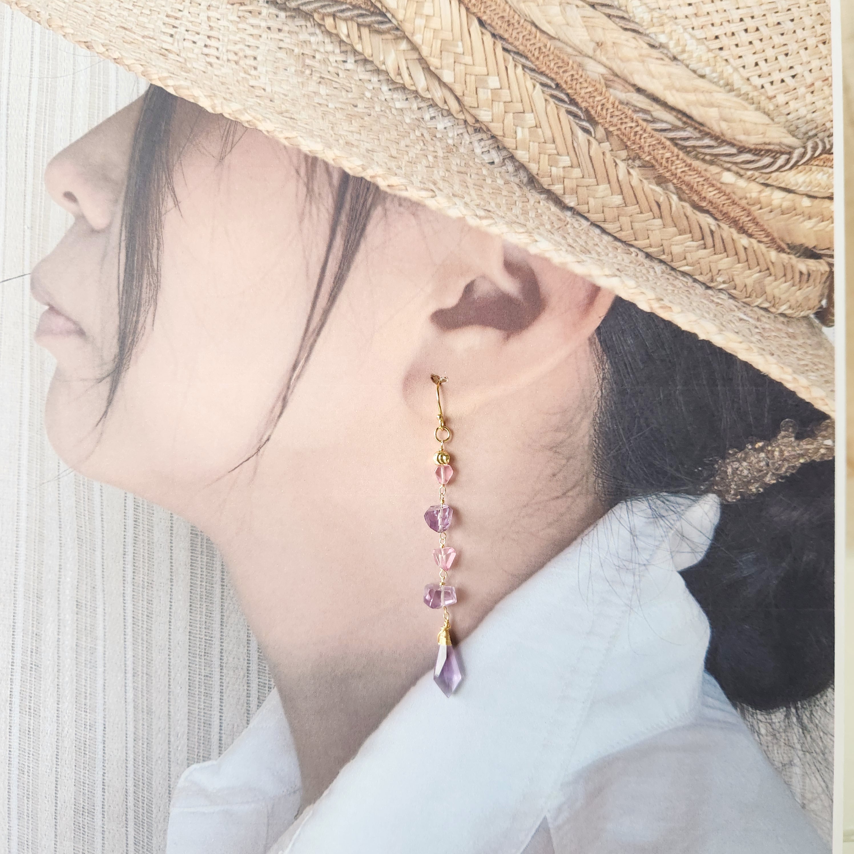 先端にダイヤ型のアメジストを付けて、シャンデリアのようなデザインにしました。