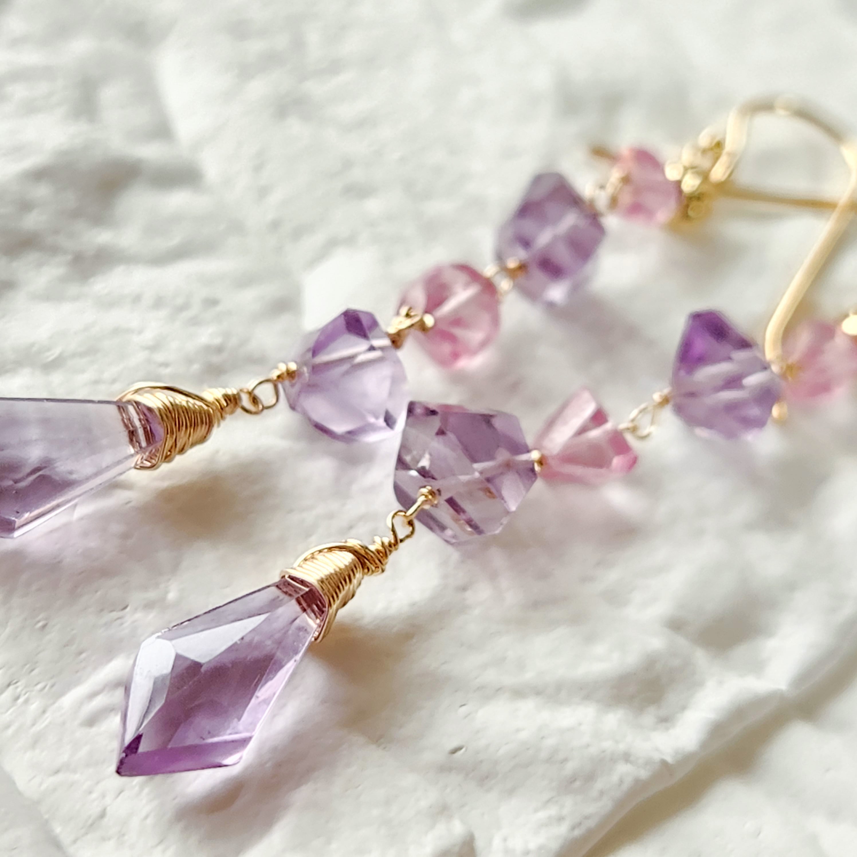 ピンクトパーズ×ダイヤ型アメジスト ピアス 26004P