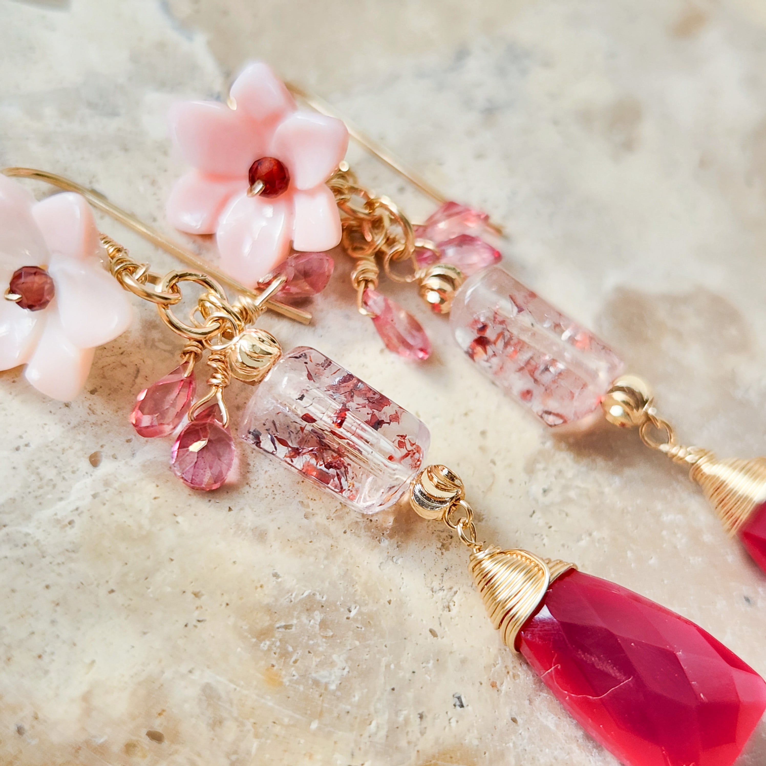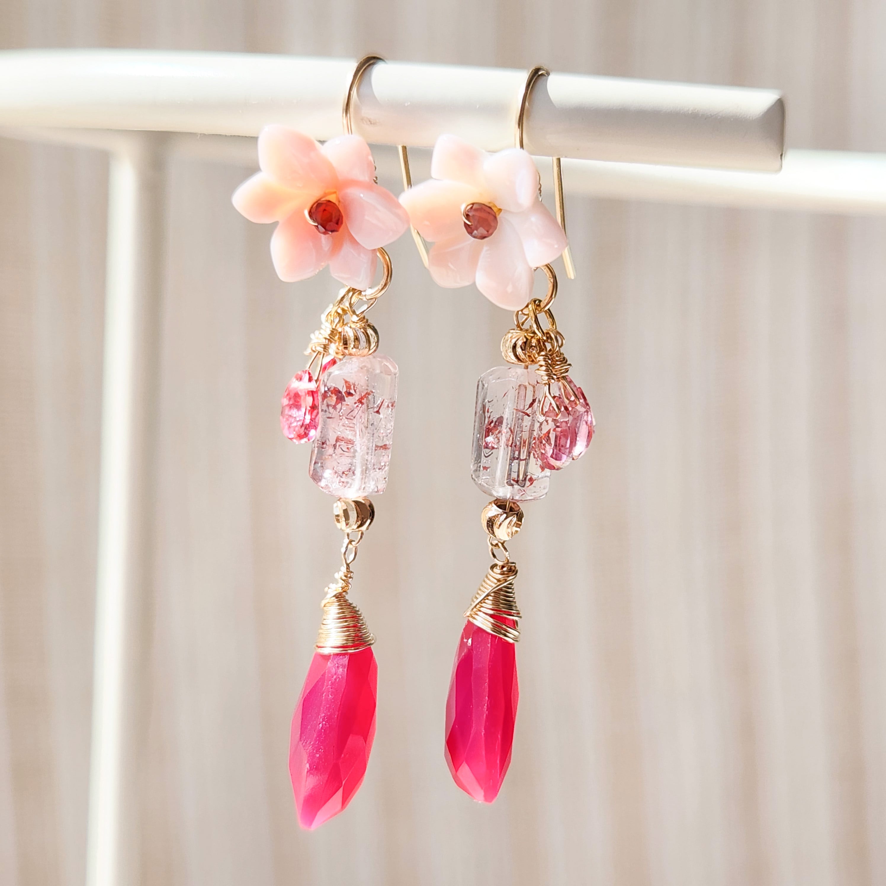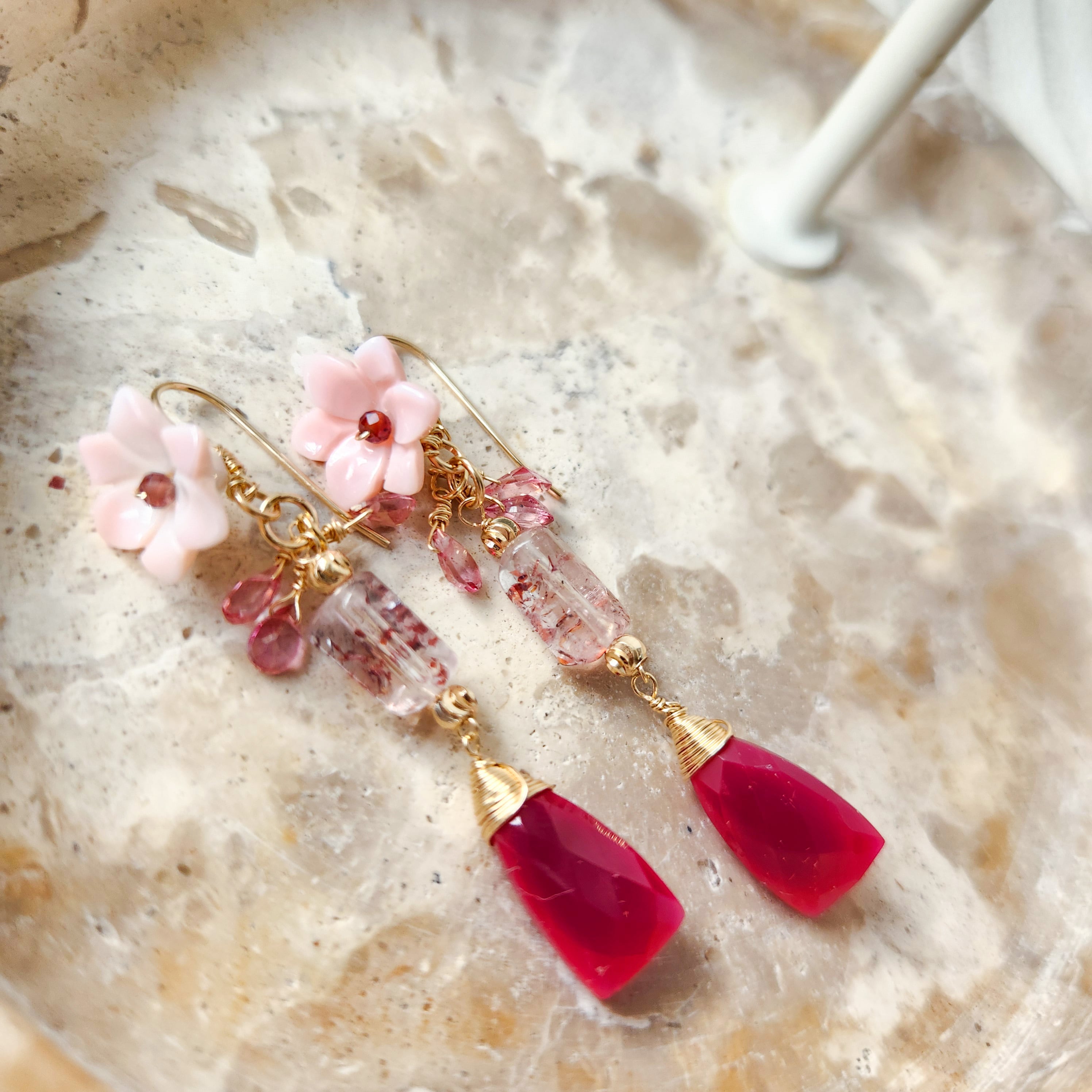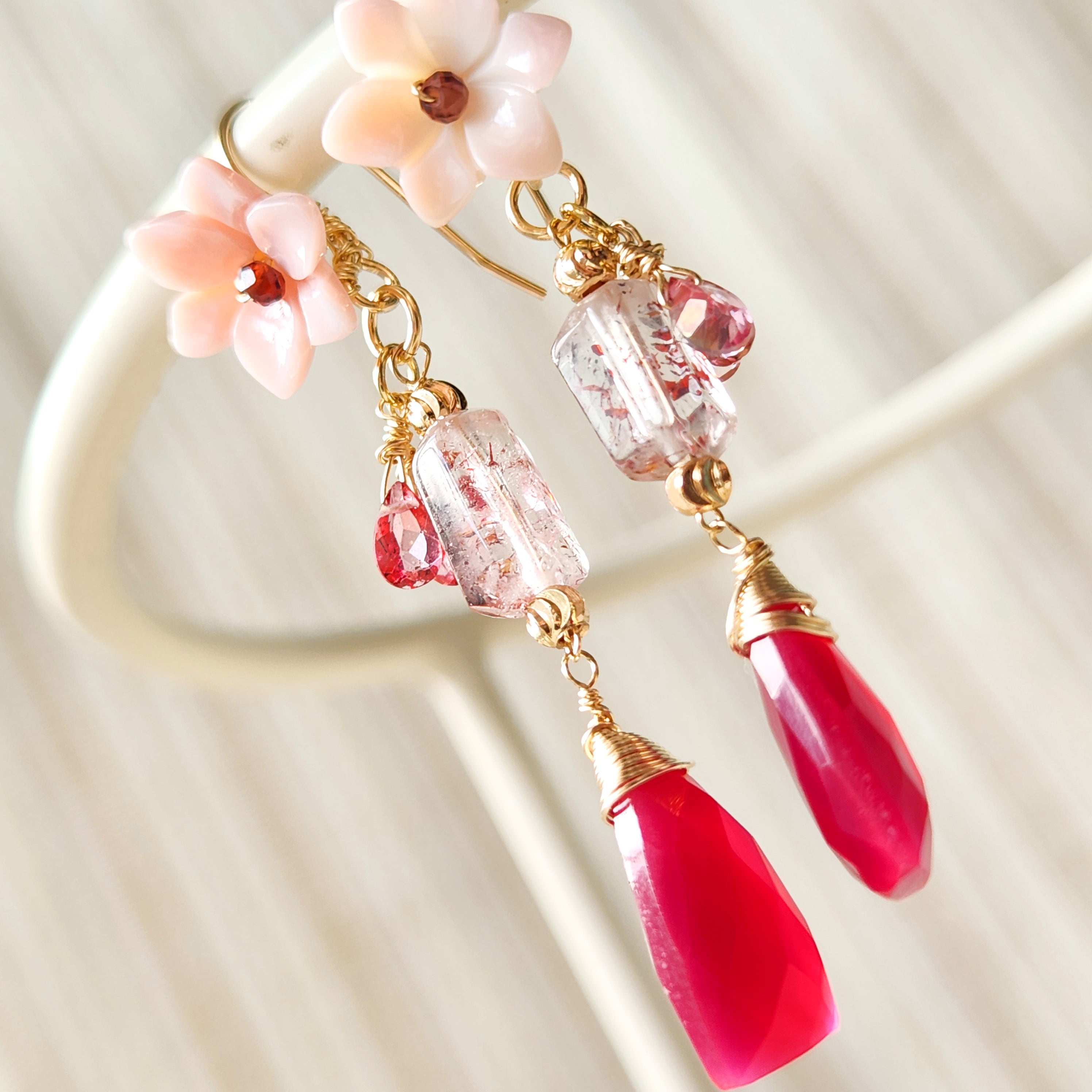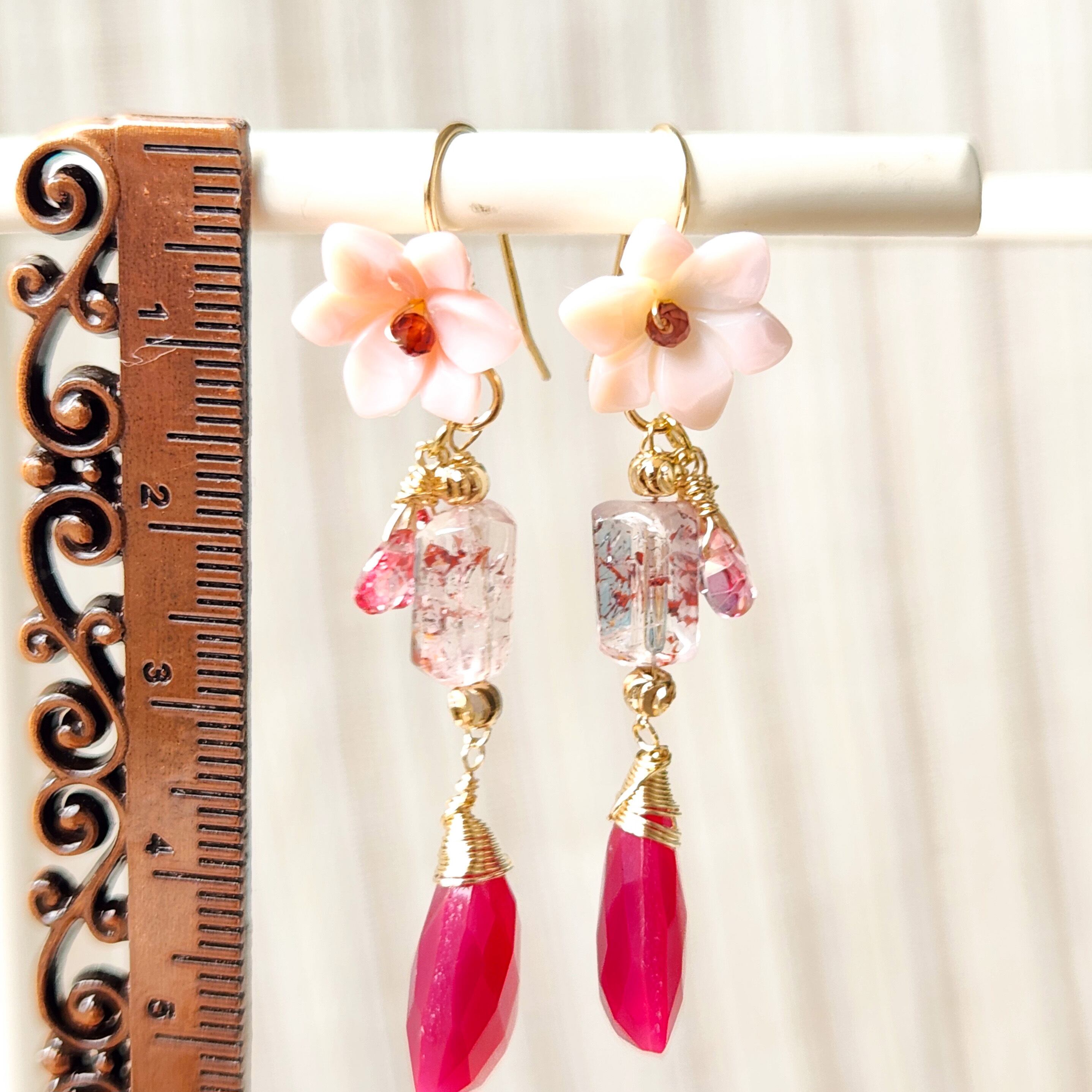 レピドクロサイトインクォーツ × ピンクカルセドニー ピンクフラワーピアス 26011P