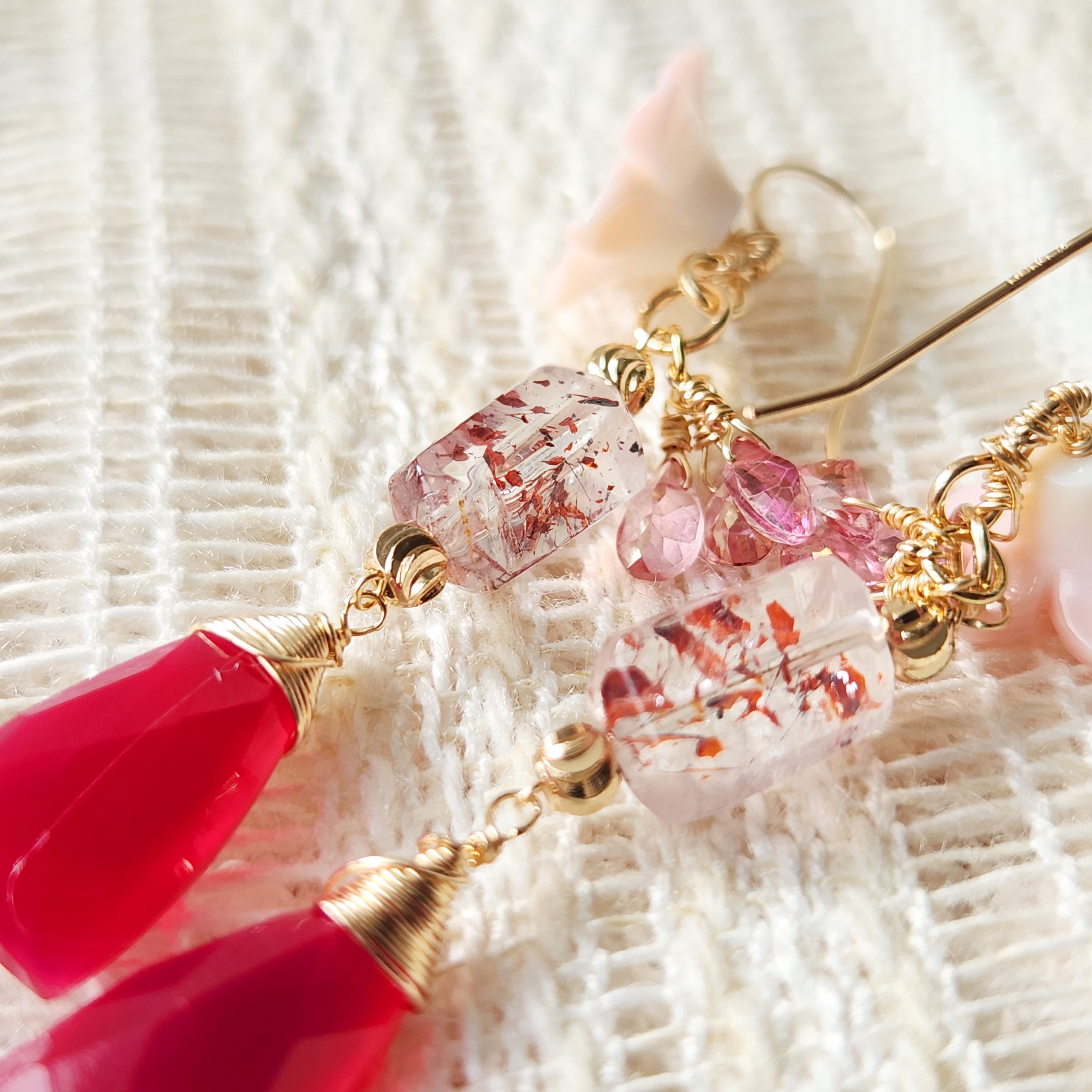 レピドクロサイトインクォーツとフューシャピンクカルセドニーを主役に、