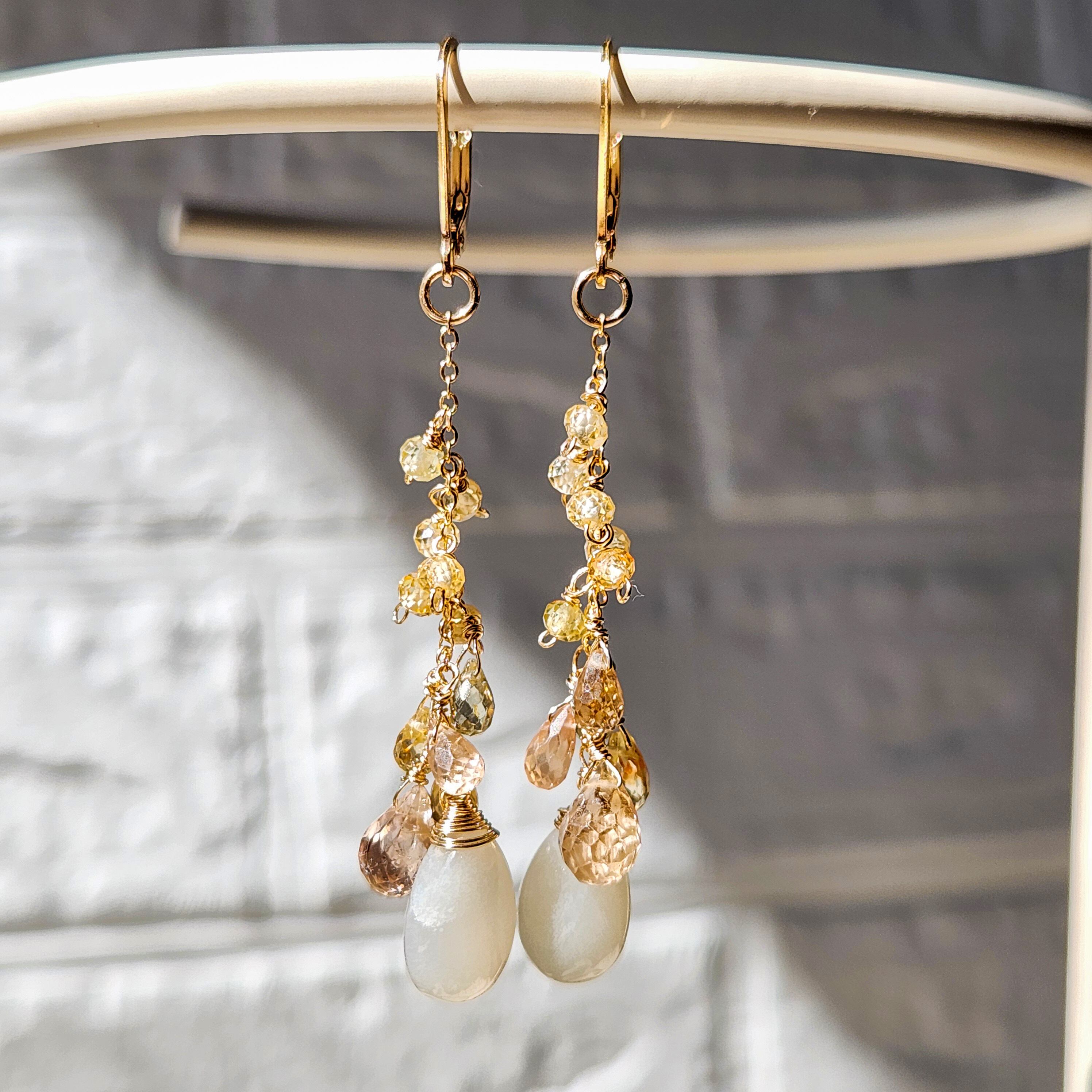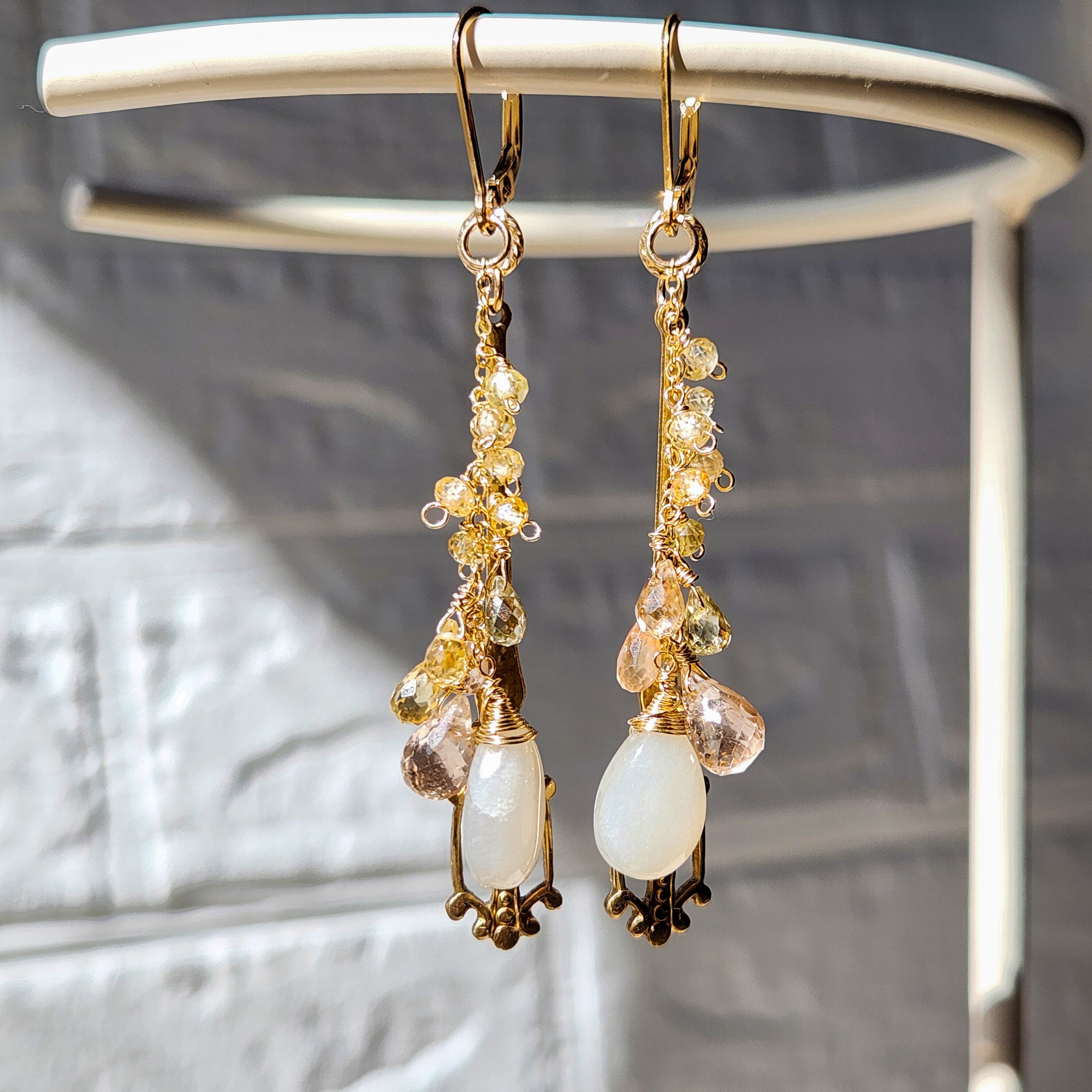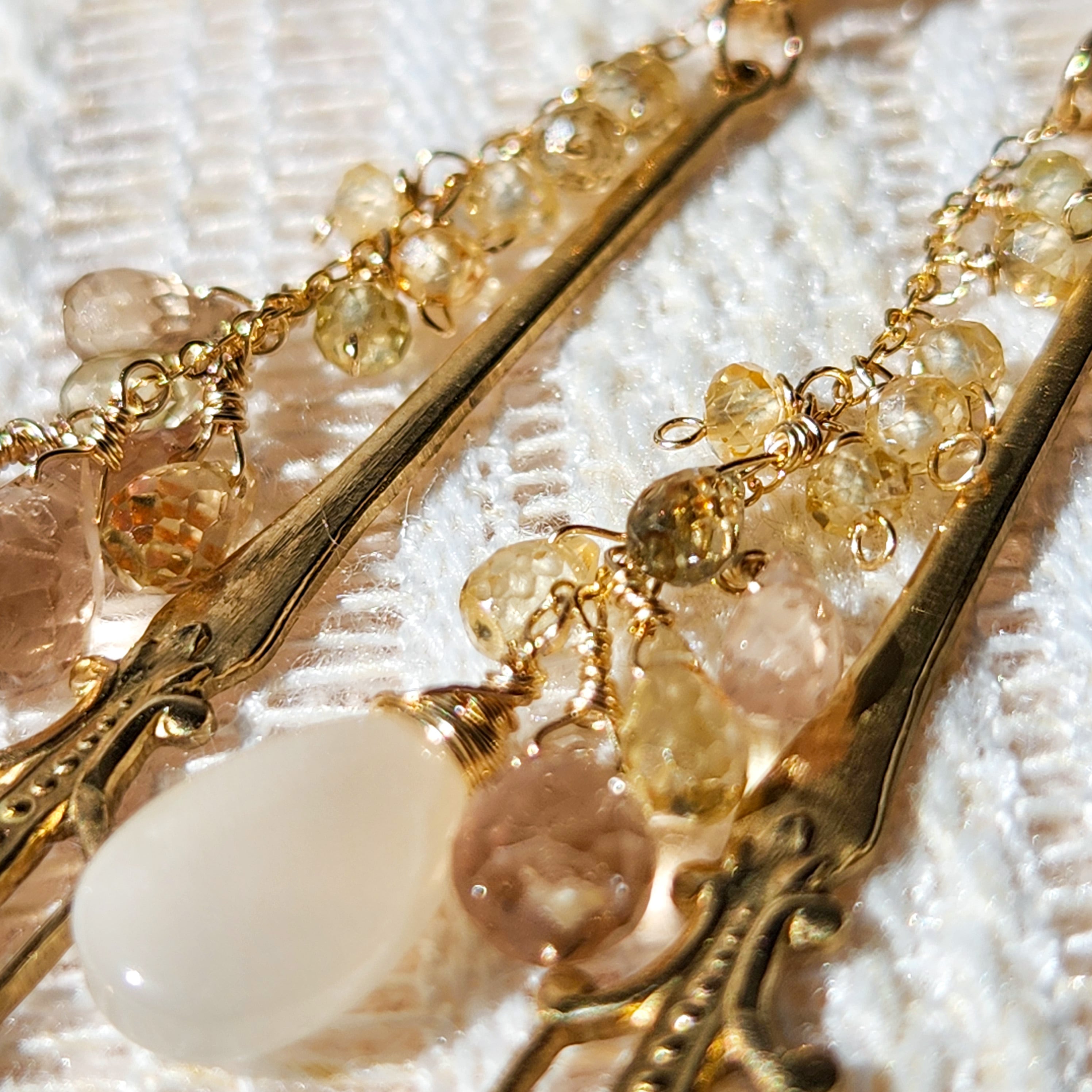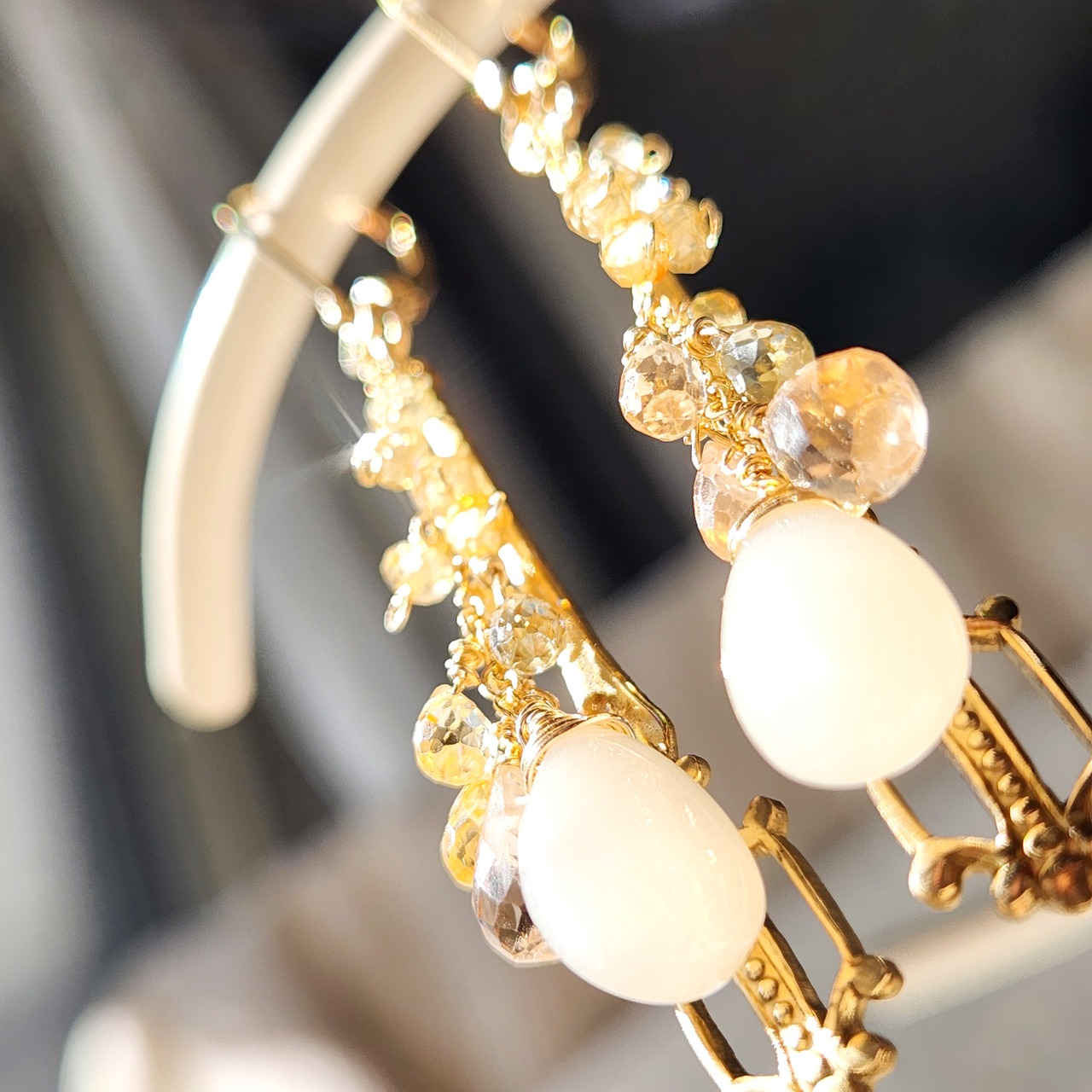ムーンストーン × トパーズ × ジルコン ホワイトゴールドトーンチャームピアス 26017P