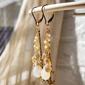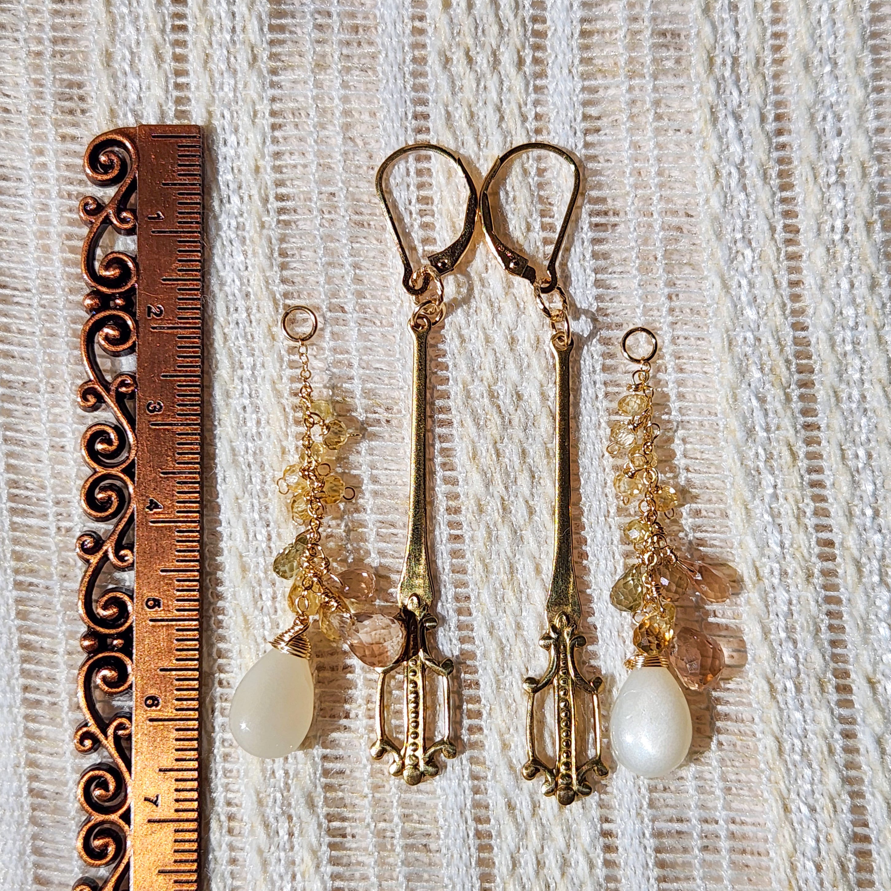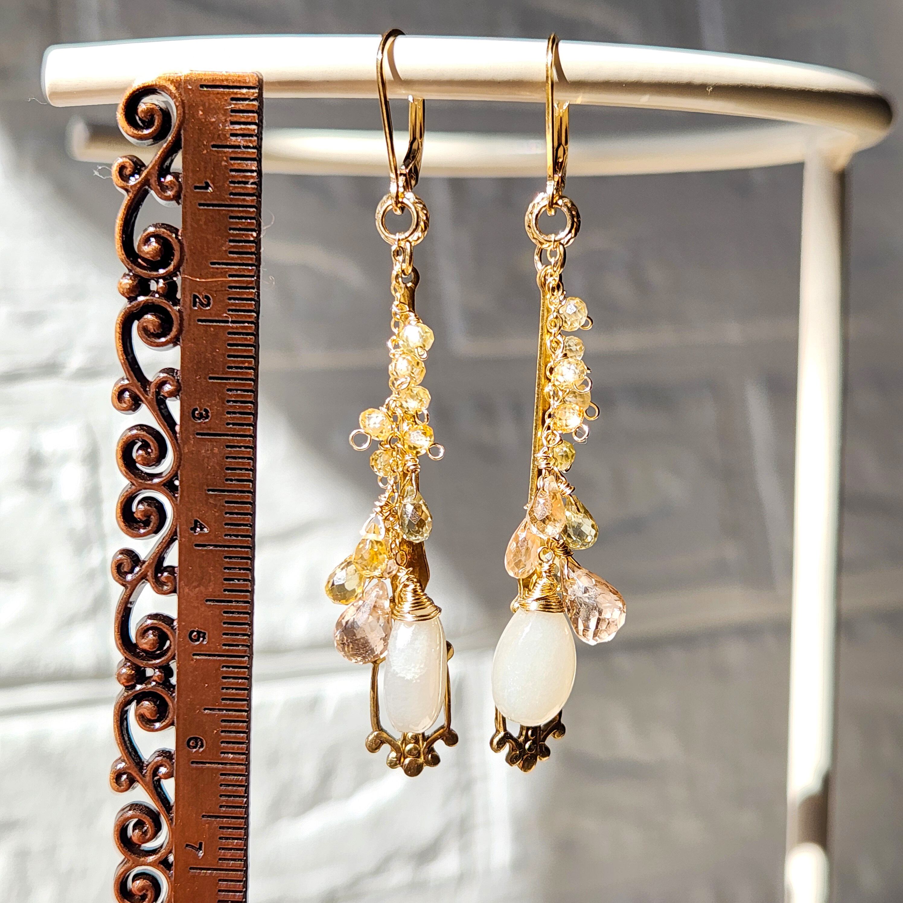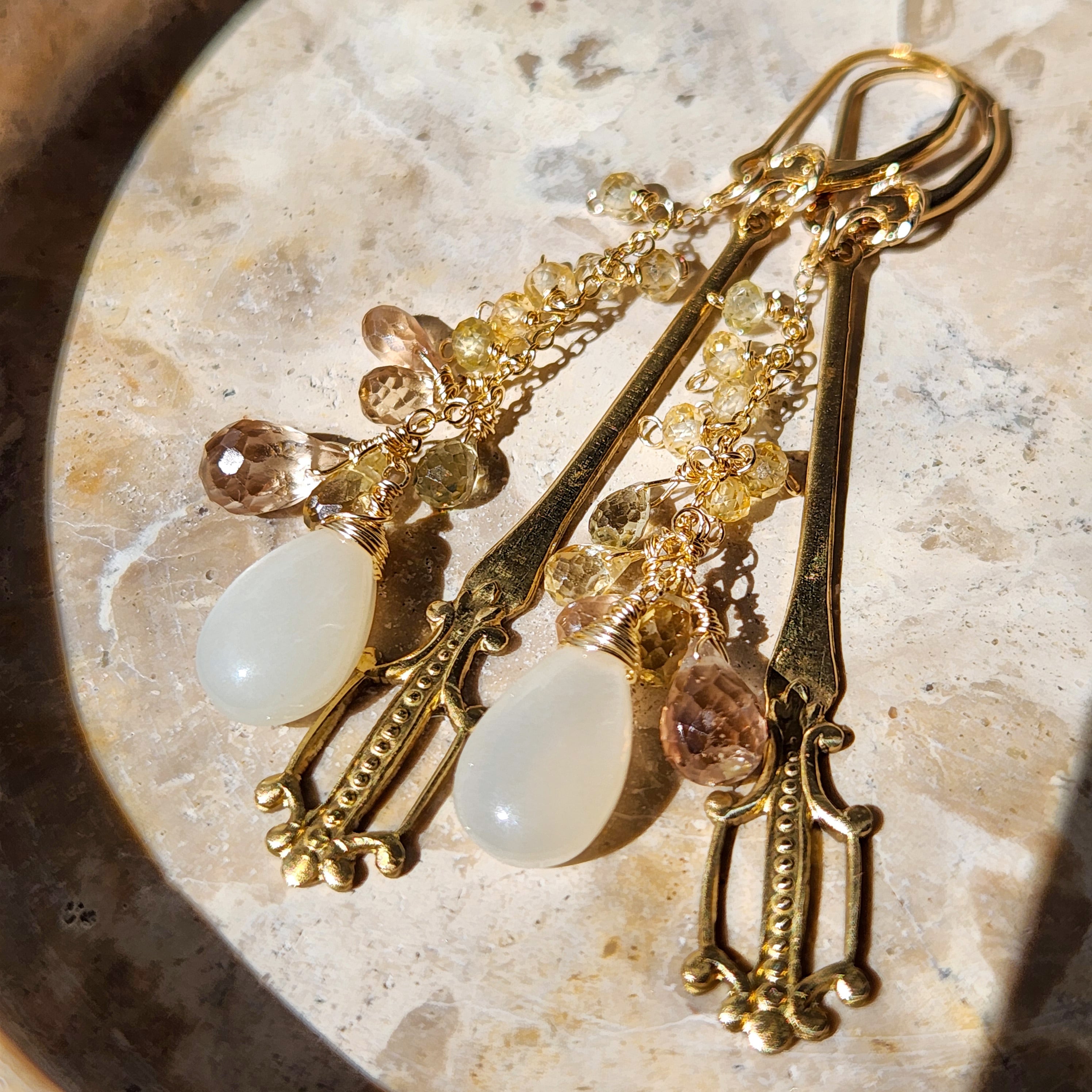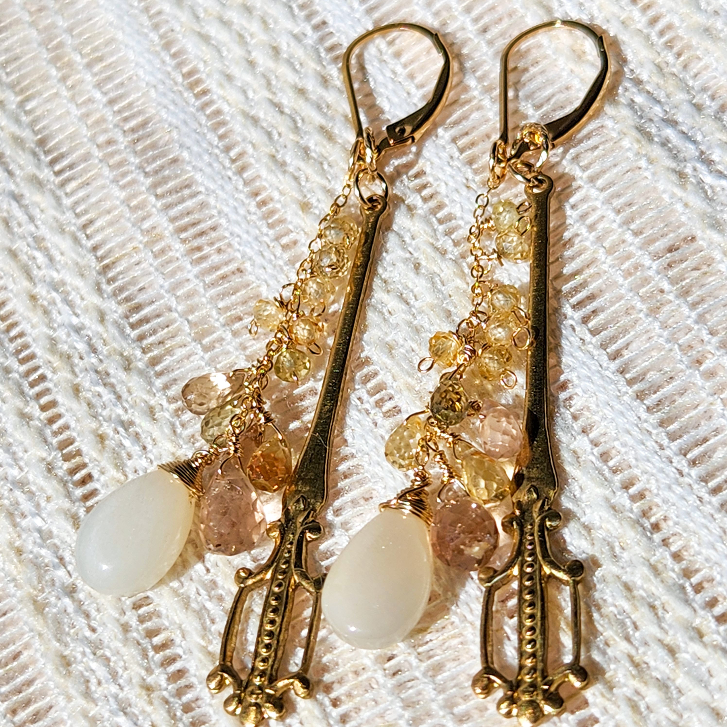ムーンストーン × トパーズ × ジルコン ホワイトゴールドトーンチャームピアス 26017P