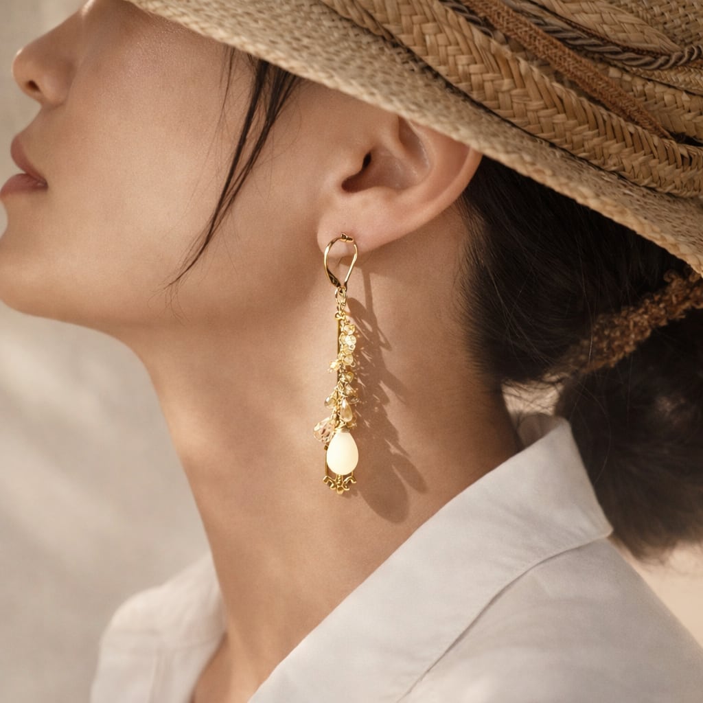 日常のコーディネートに静かな華やかさをプラスしてくれるピアスです。