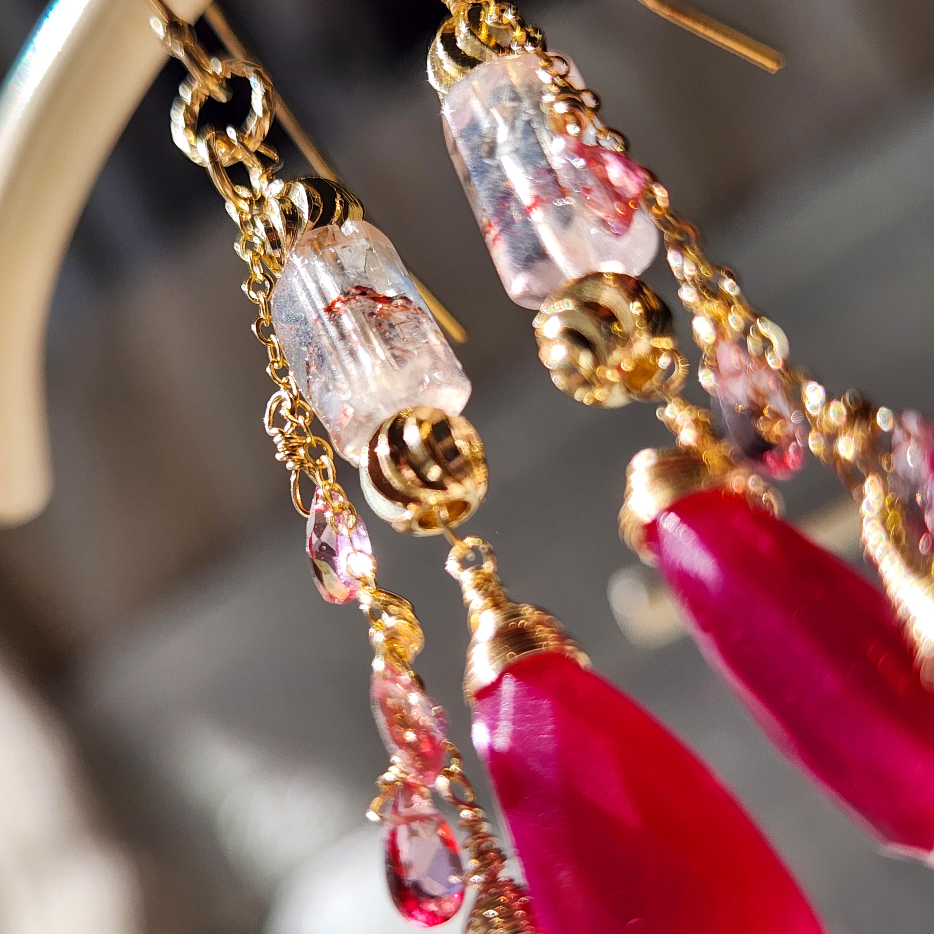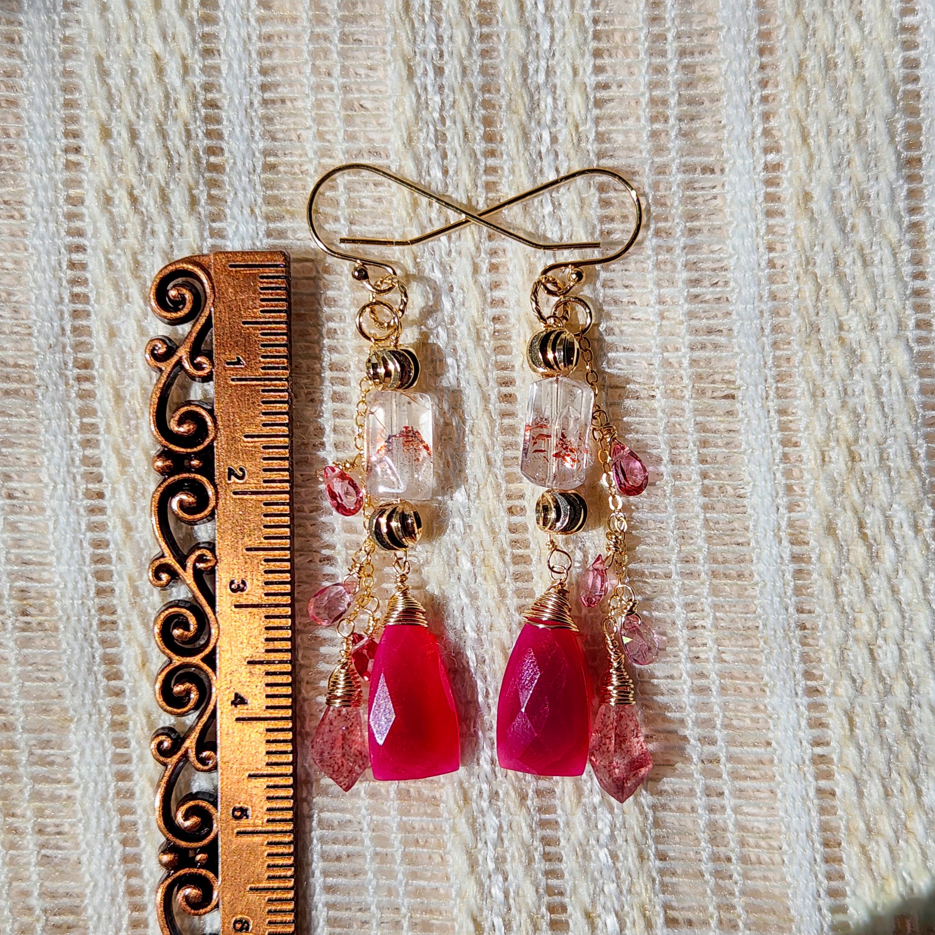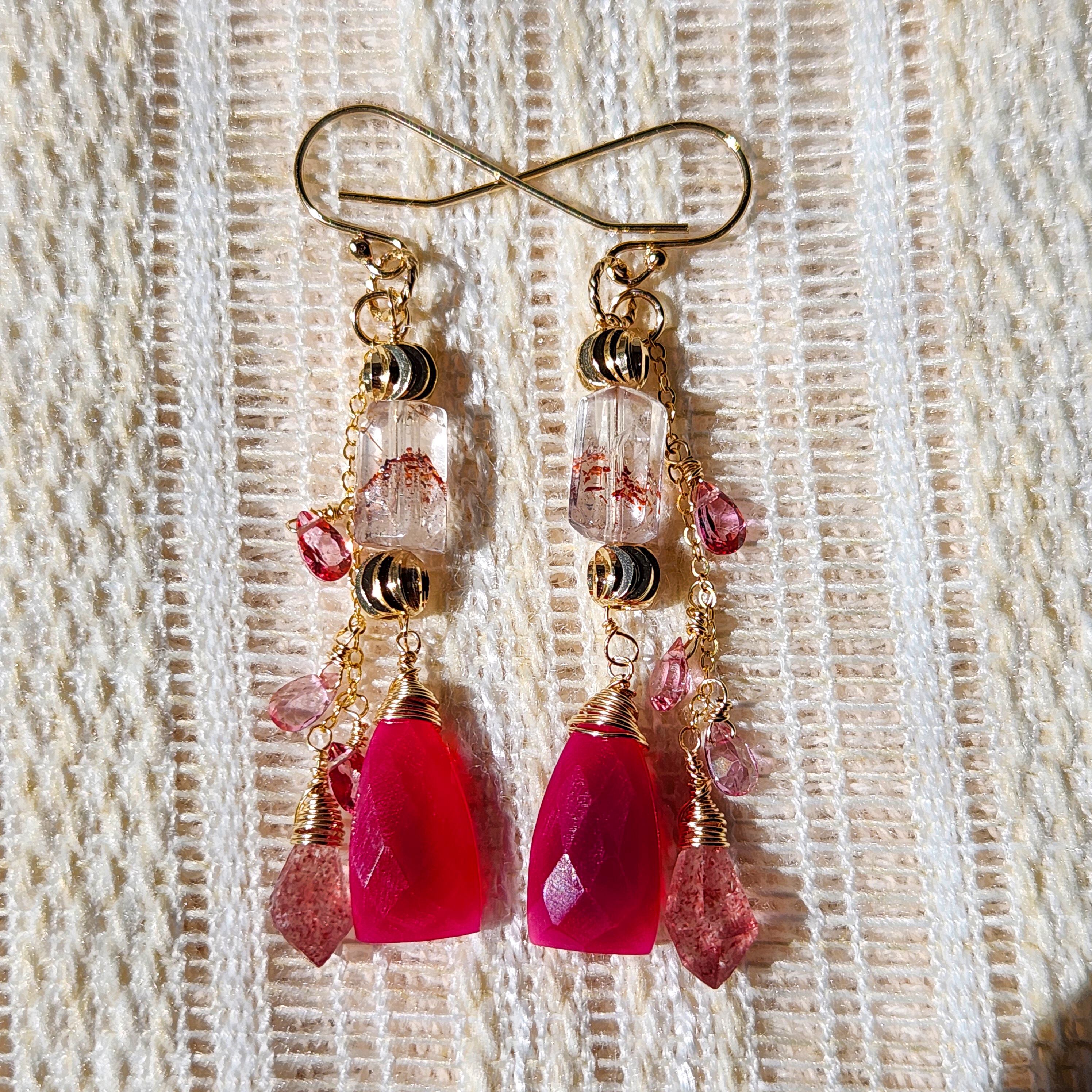 レピドロクロサイトインクォーツ × フューシャカルセドニー ピンクグラデーションピアス 26018P
