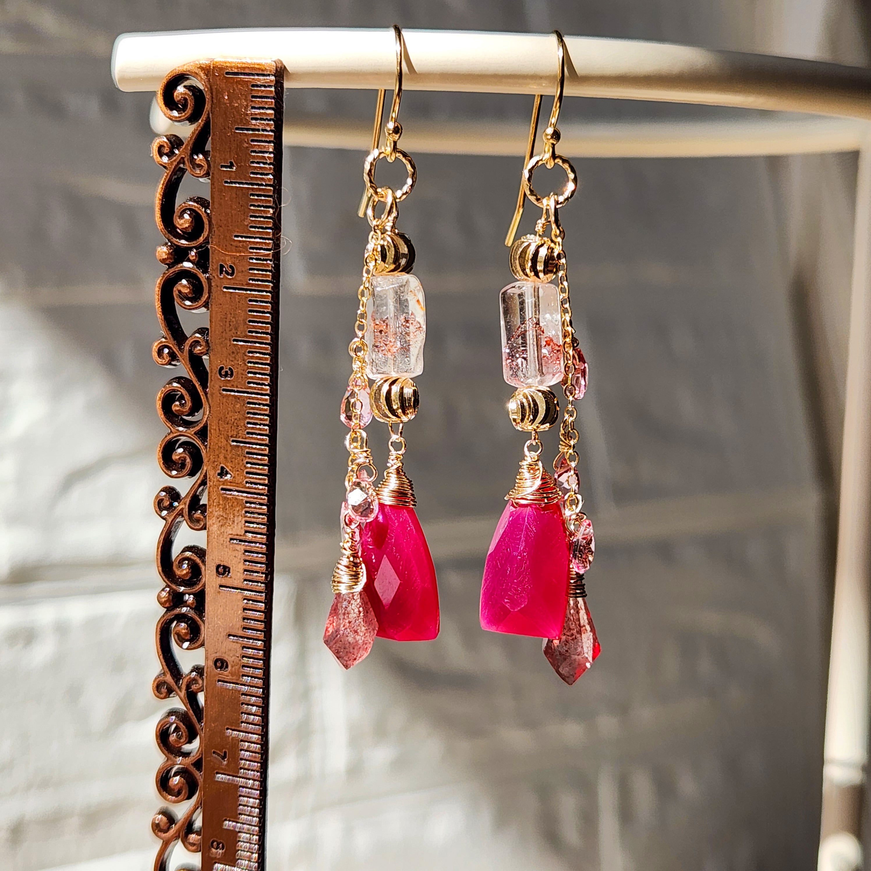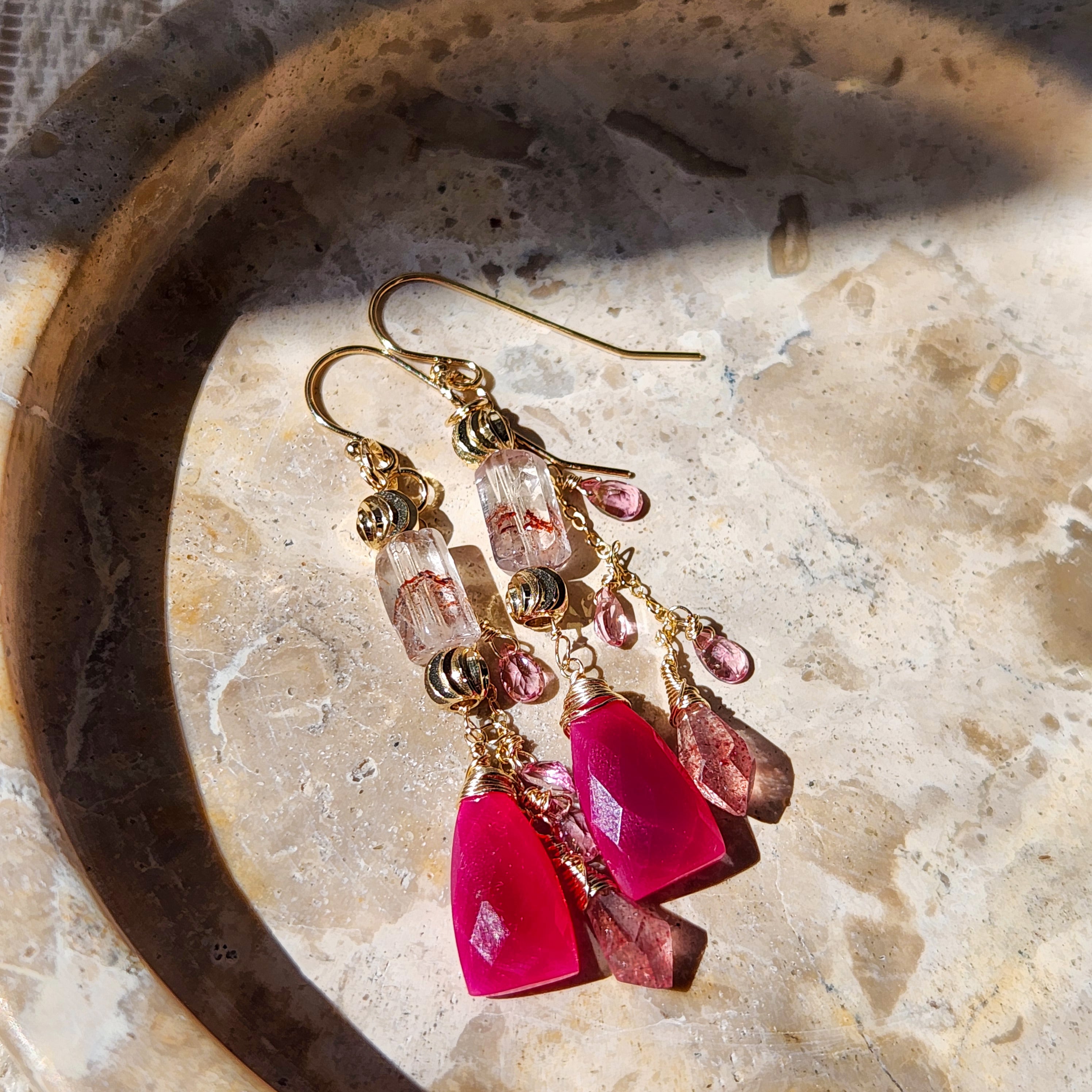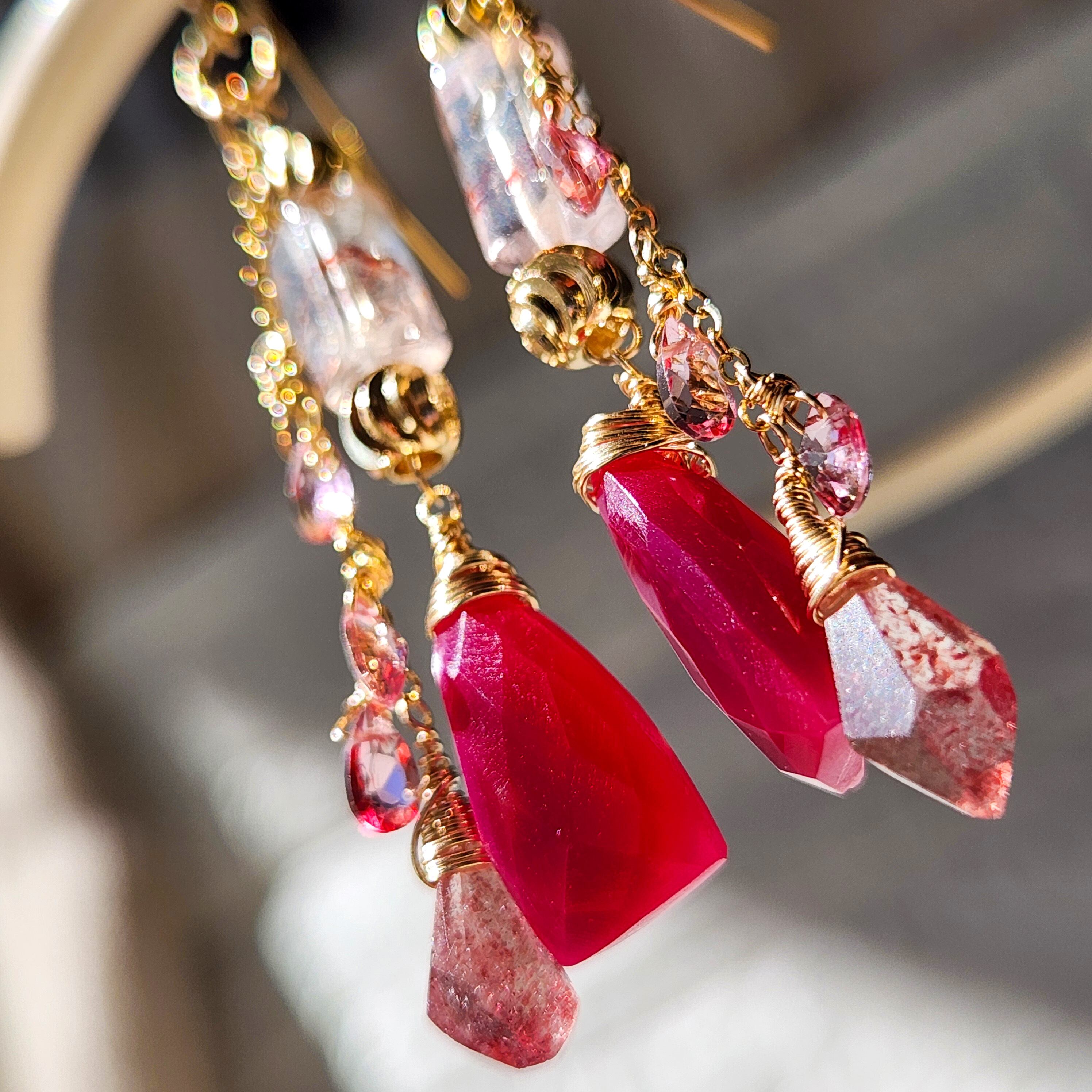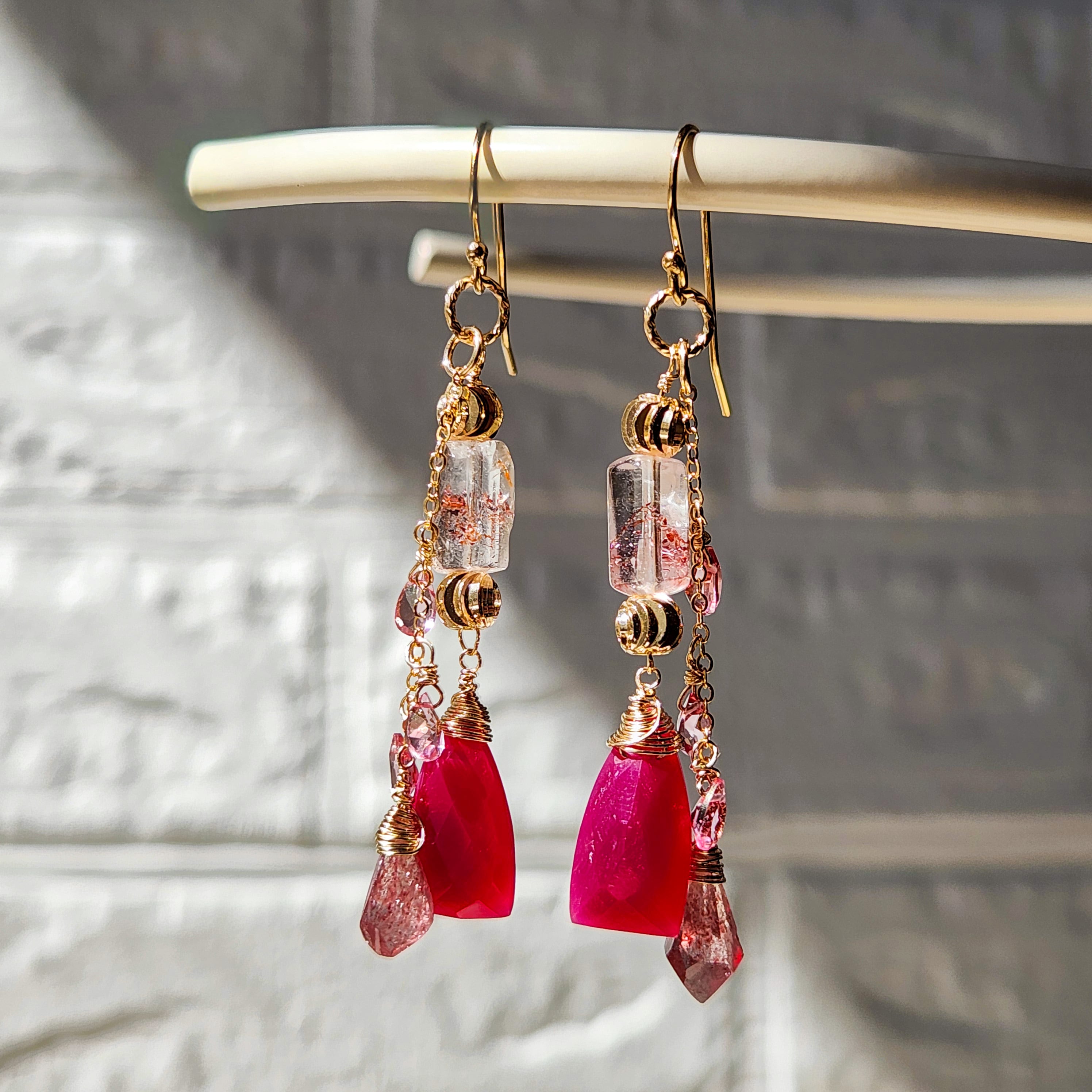 レピドロクロサイトインクォーツ × フューシャカルセドニー ピンクグラデーションピアス 26018P