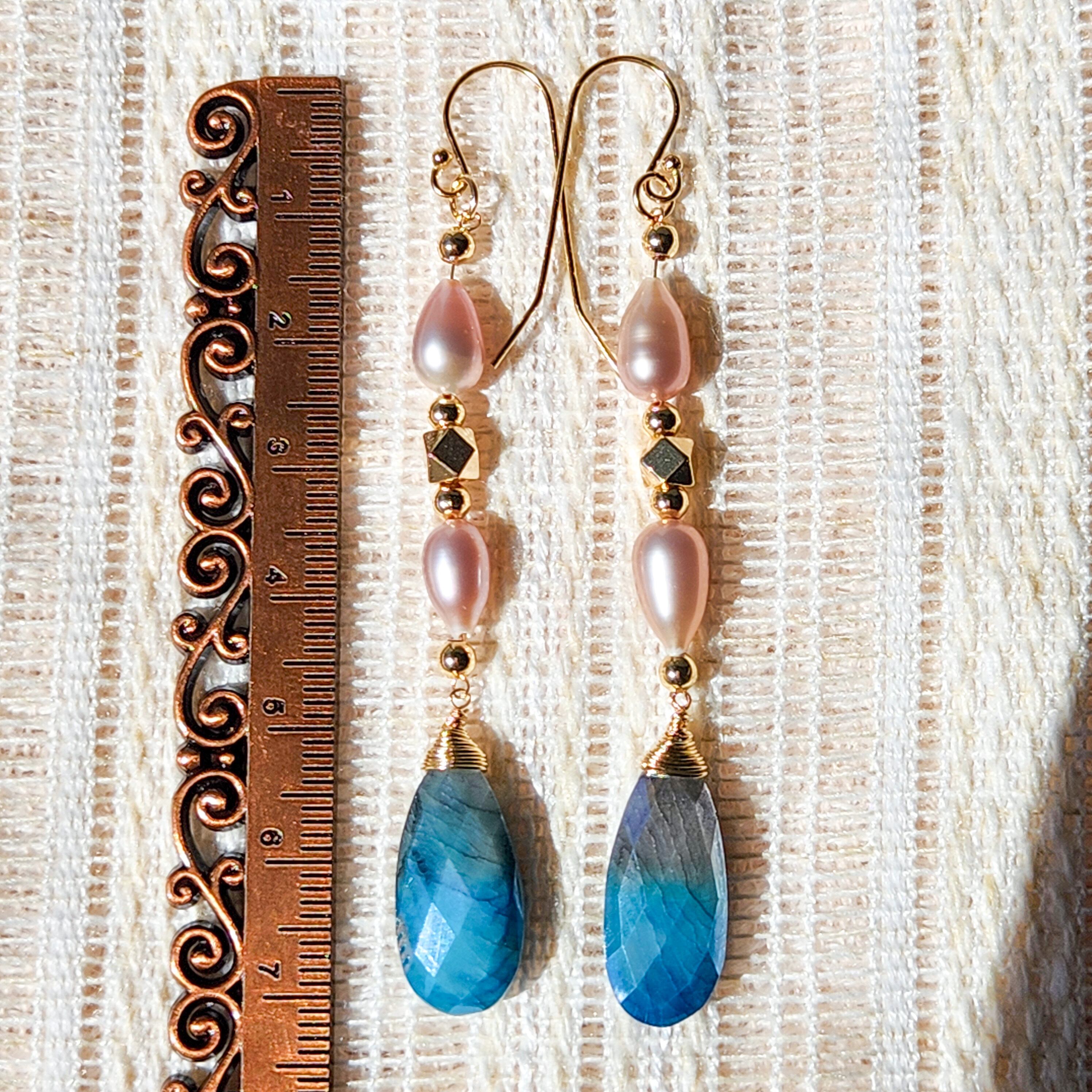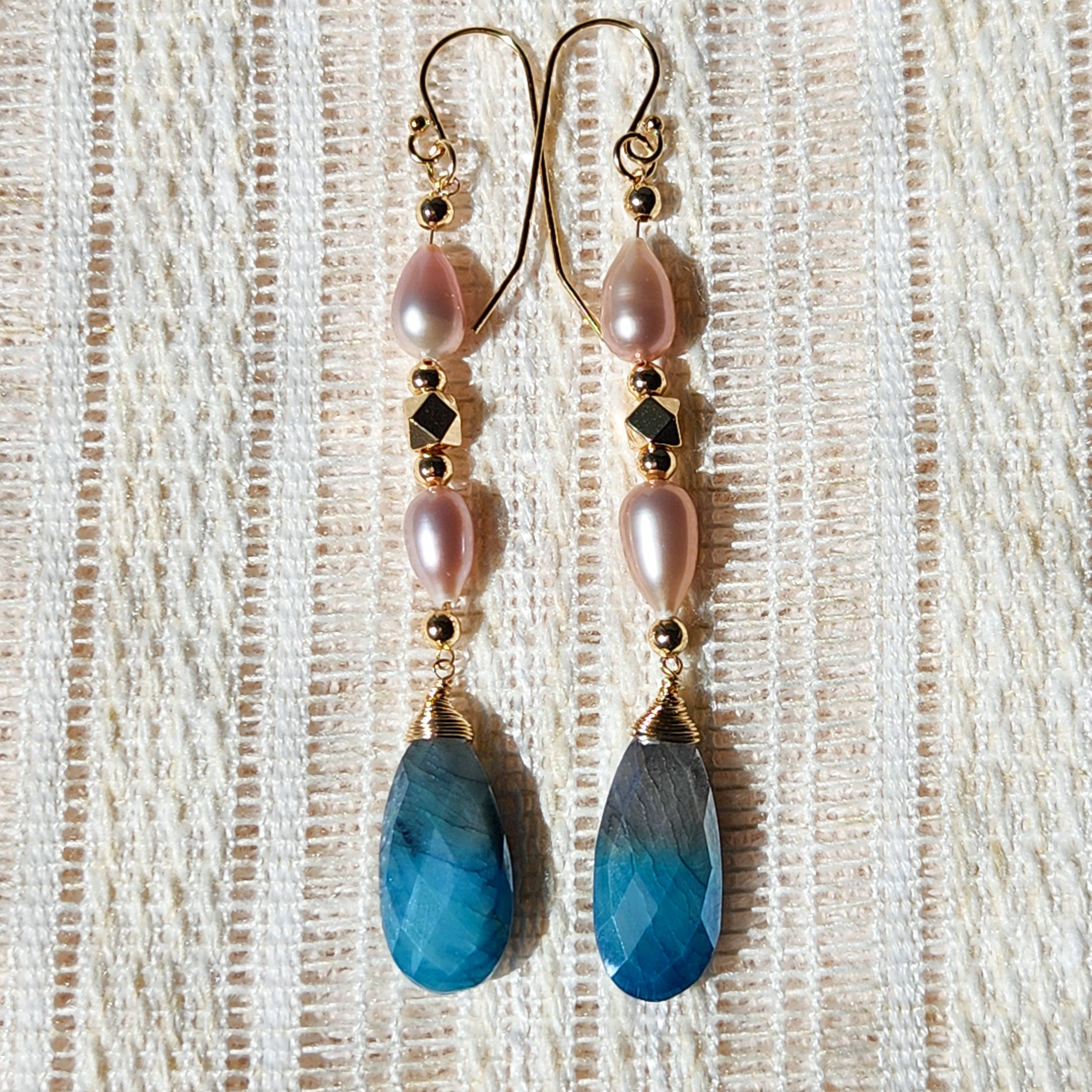 ラベンダーカラーのティアドロップ型パールとゴールドビーズを組み合わせました。