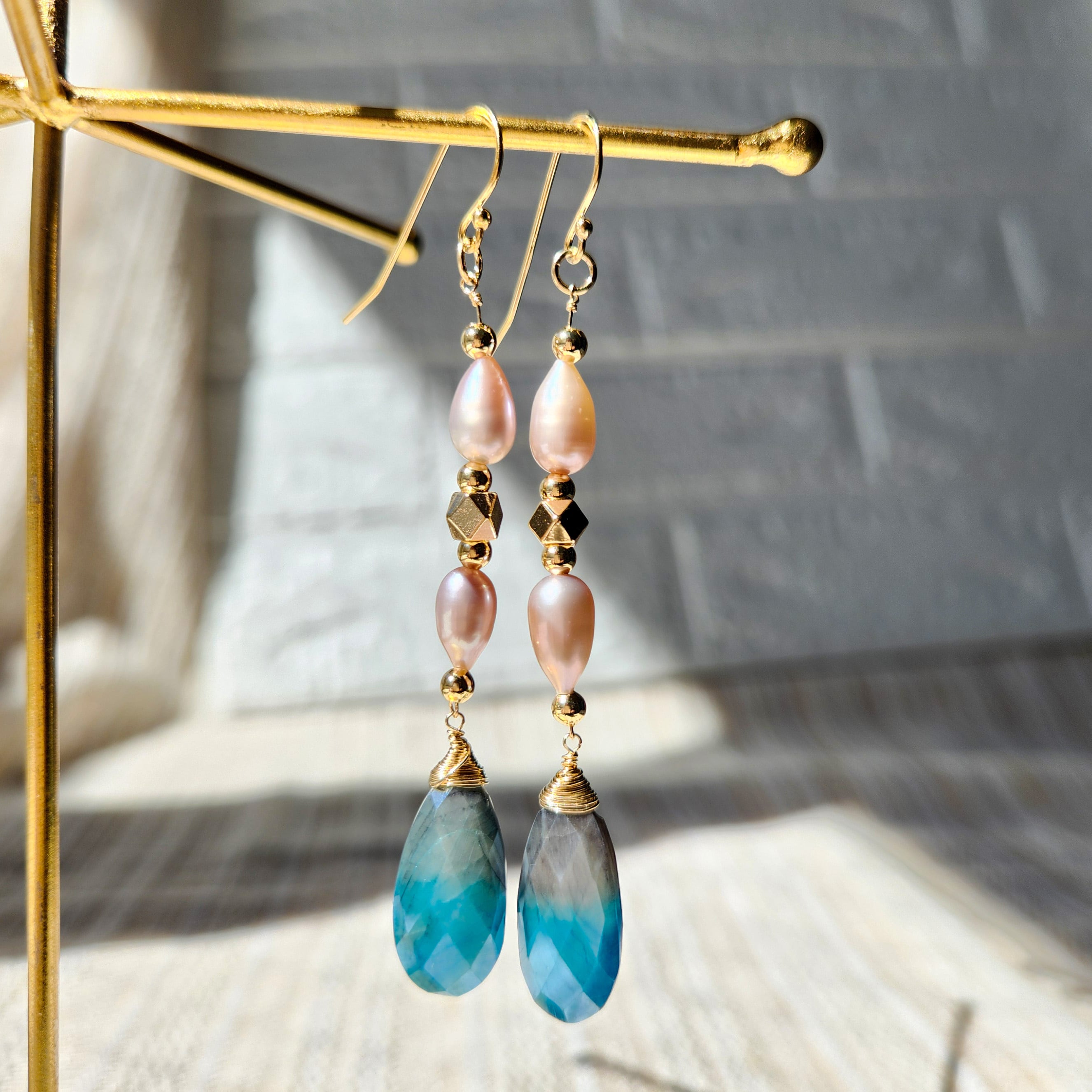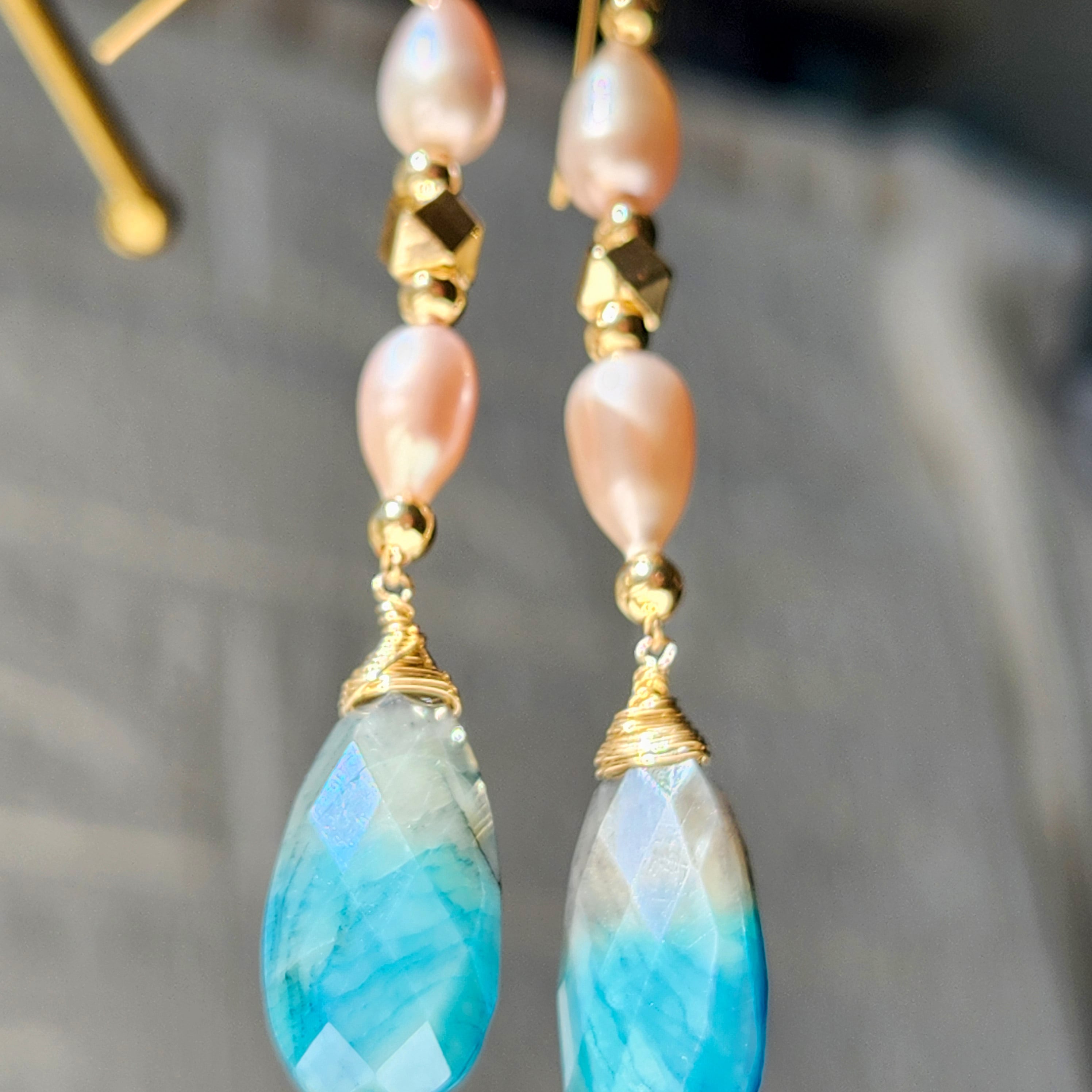 コーティングムーンストーン × パール バイカラーピアス 26021P