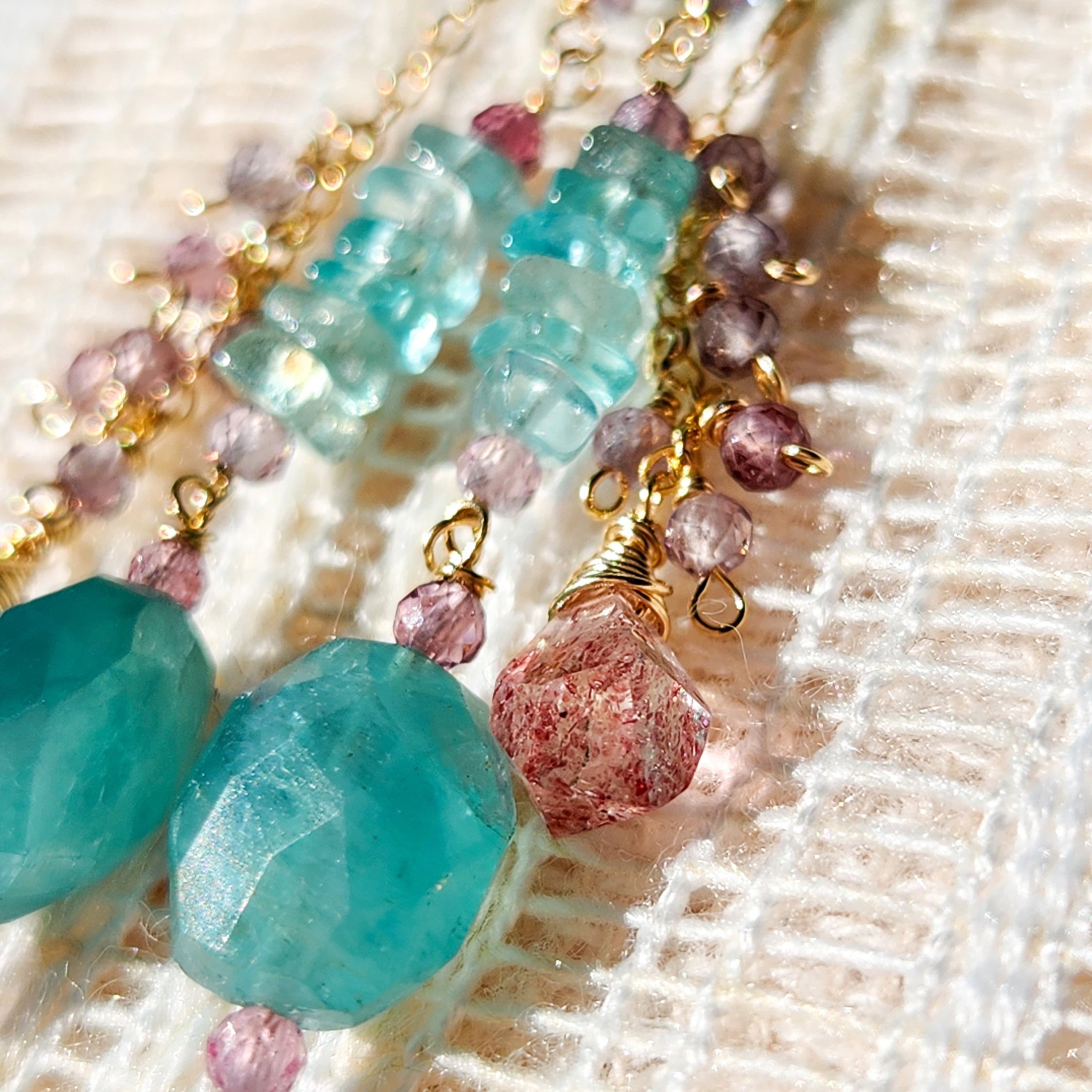チェーンの先にはストロベリークォーツのラフドロップをあしらい、