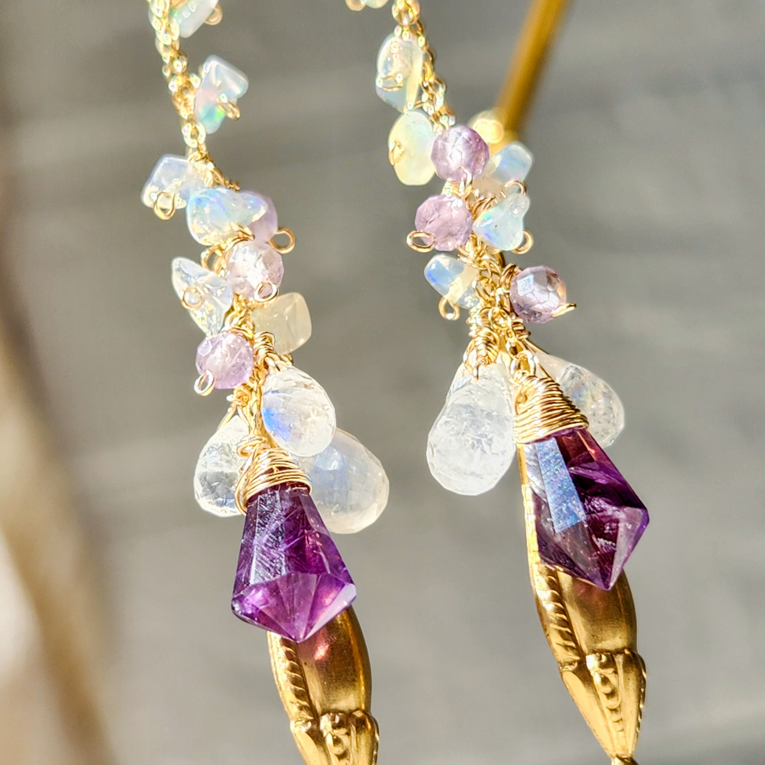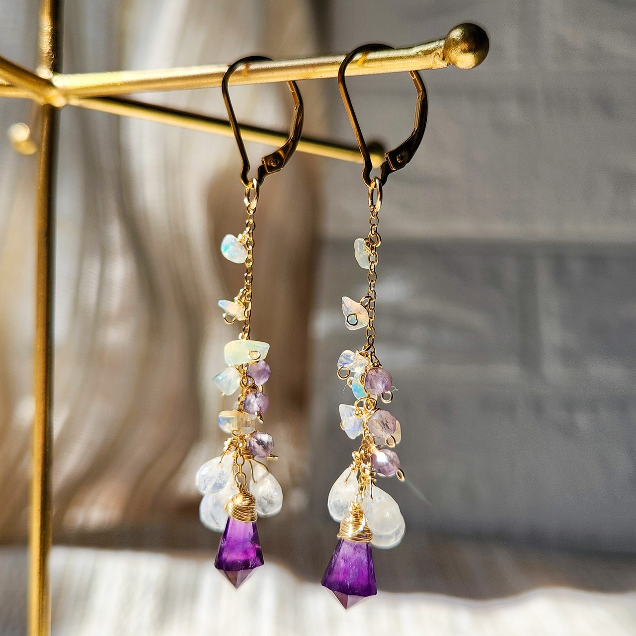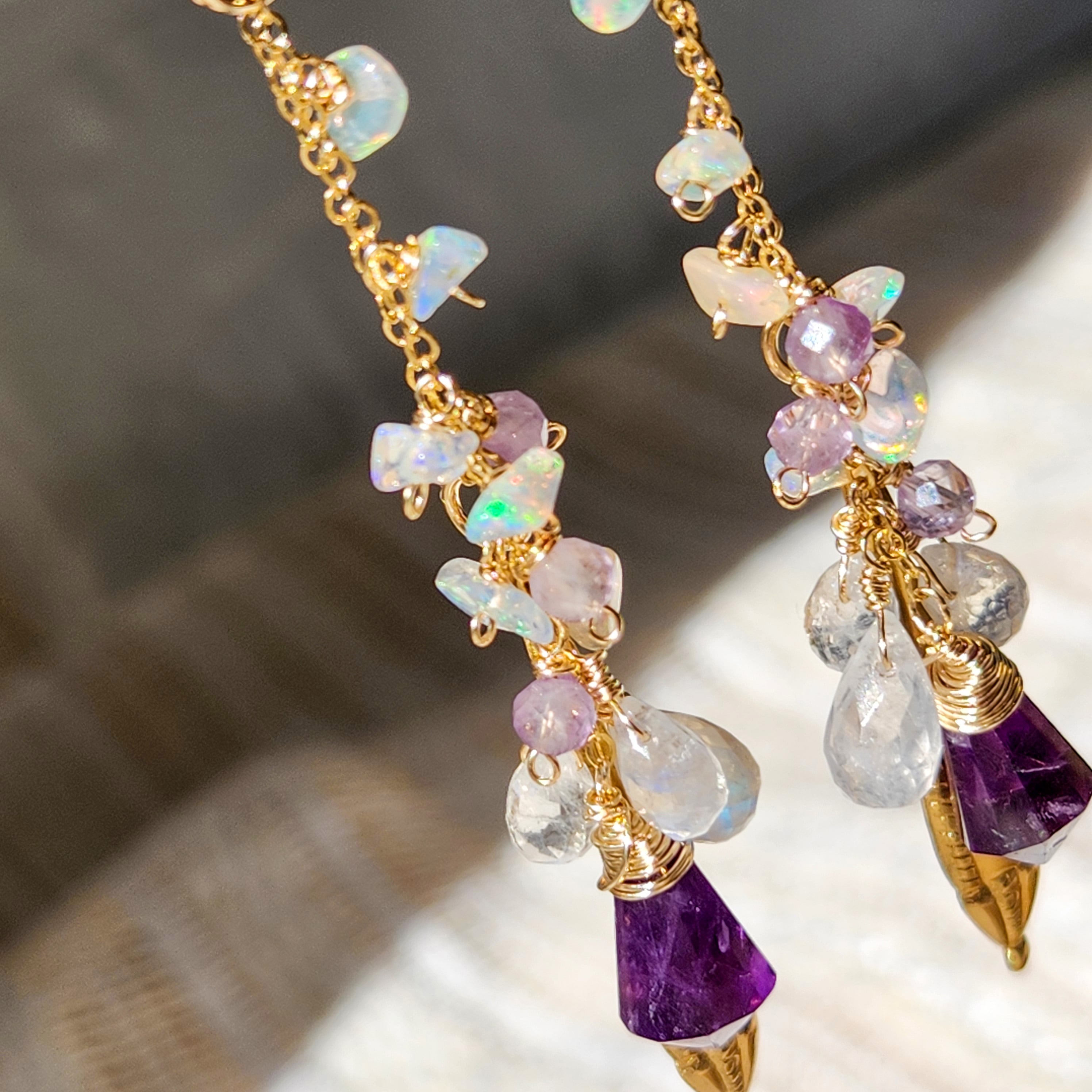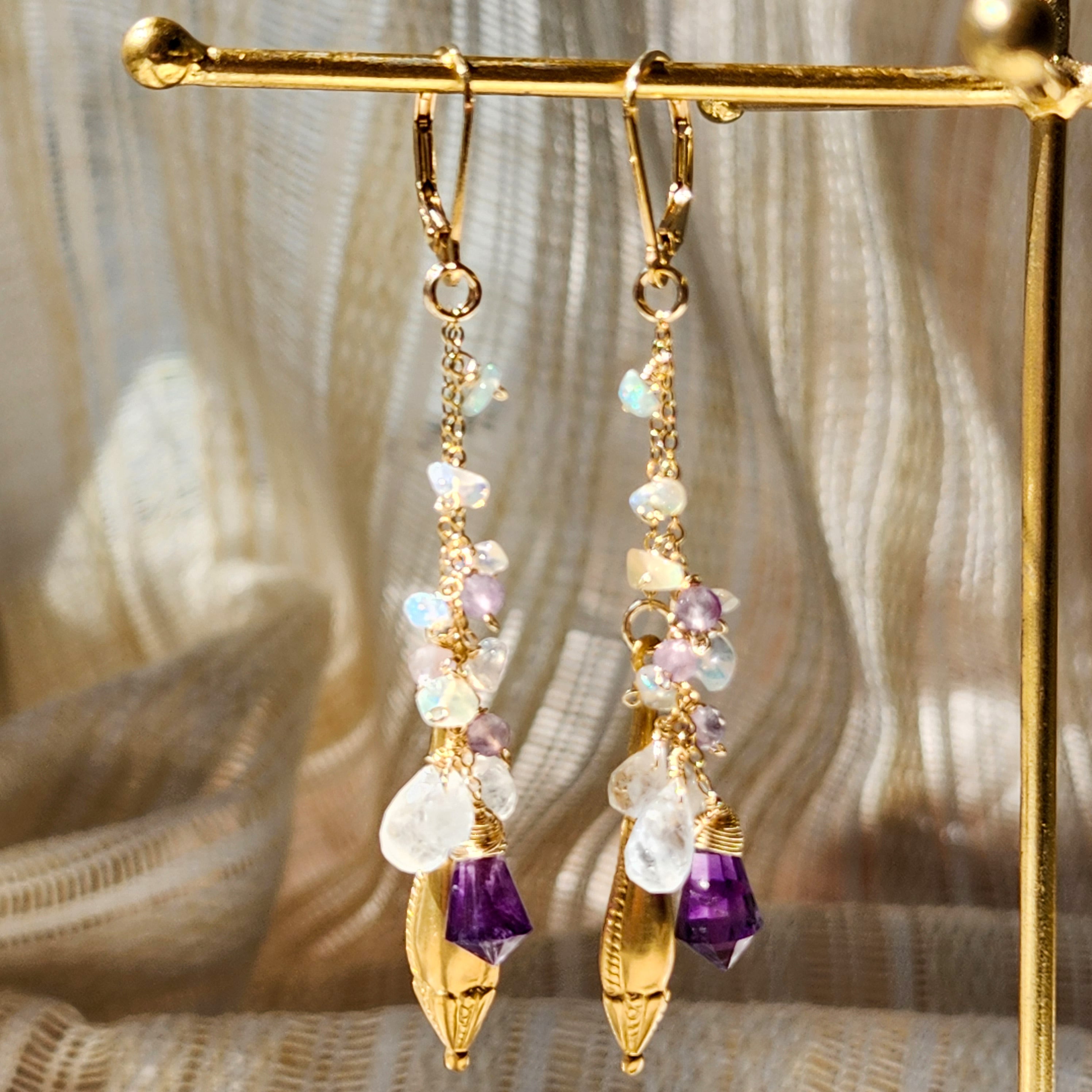 アメジスト × レインボームーンストーン × エチオピアオパール × オーナメント チャームピアス 26025P