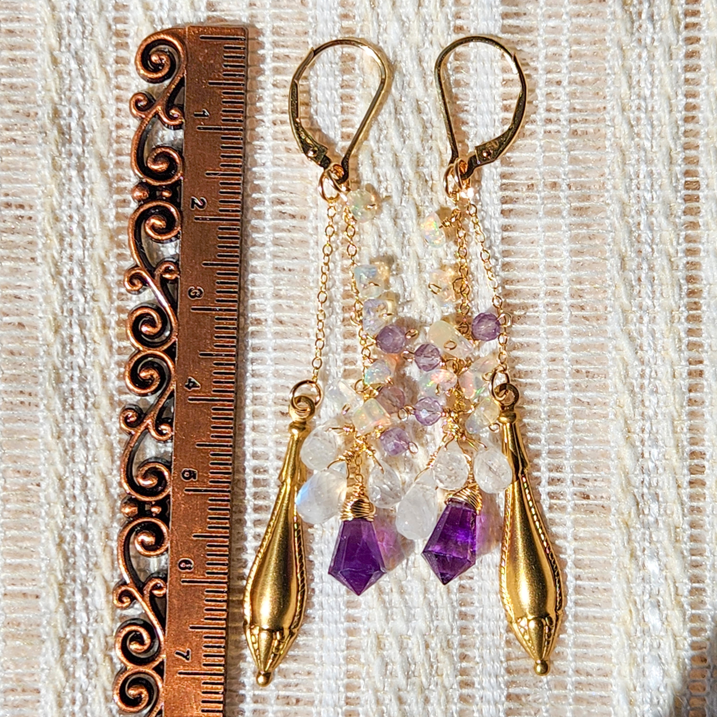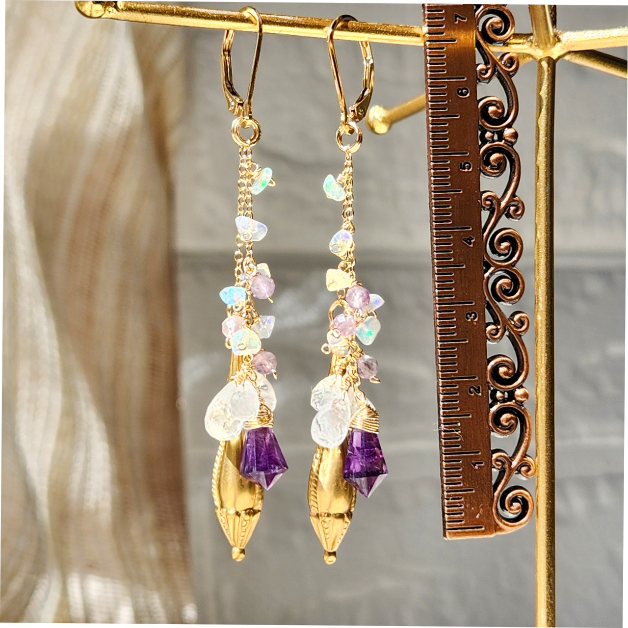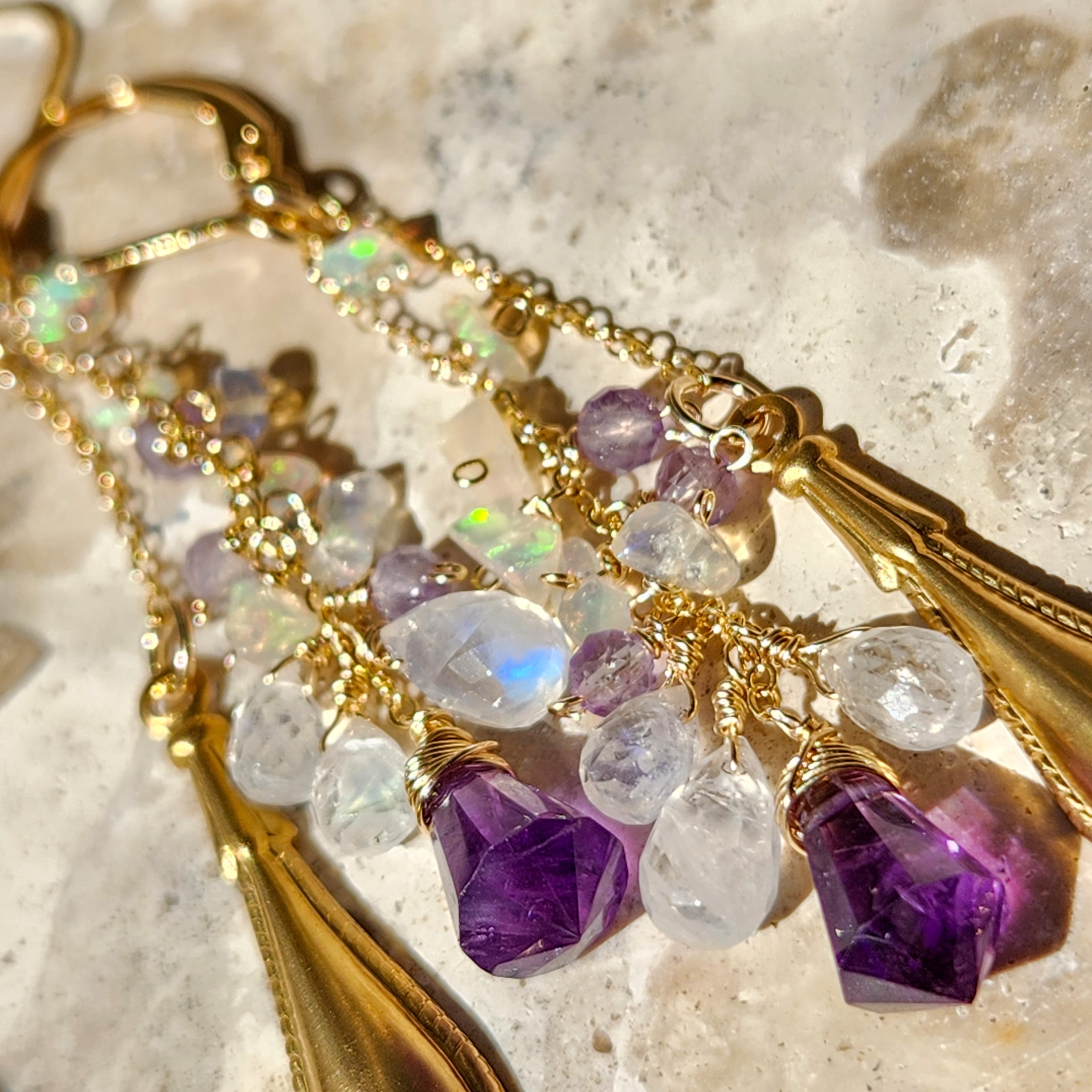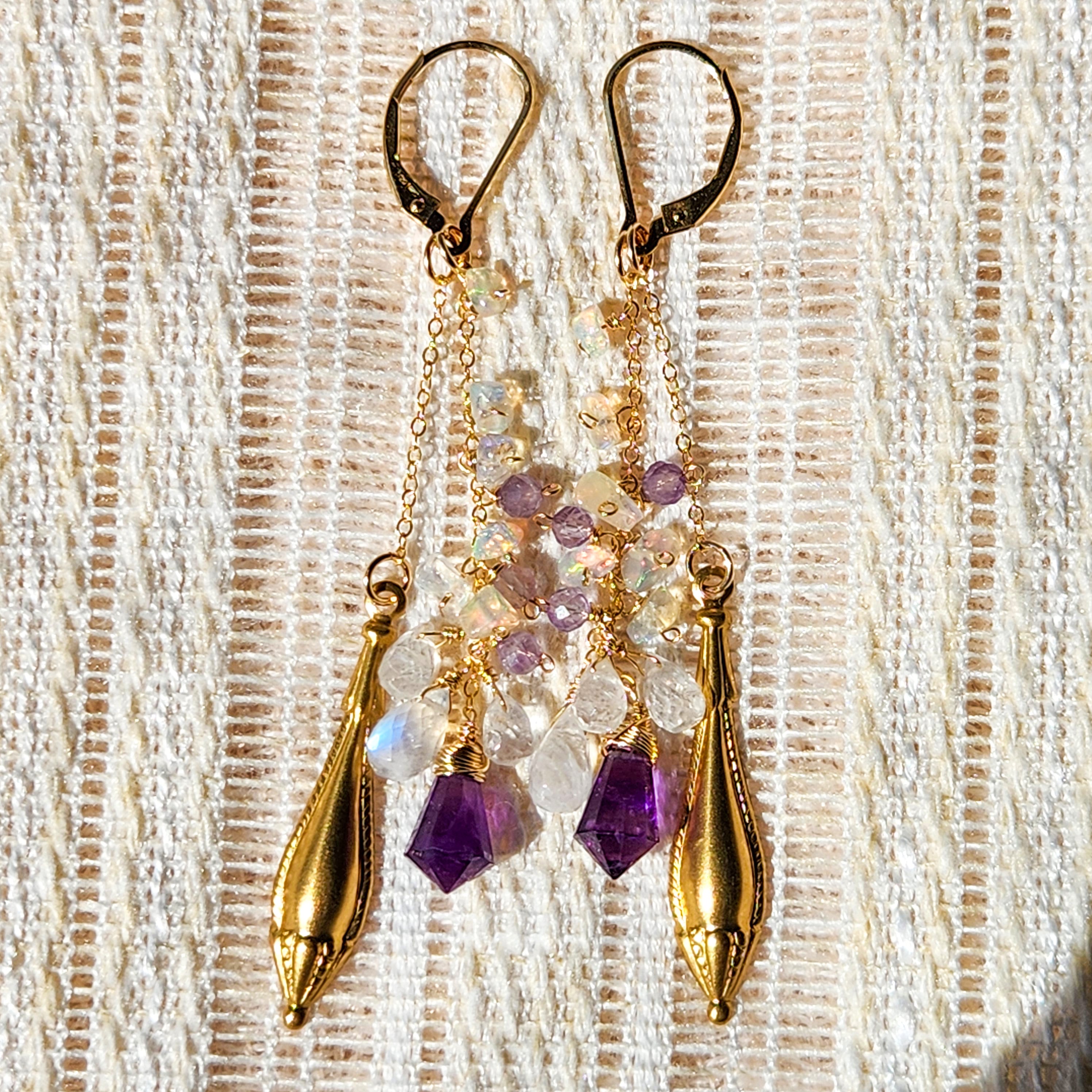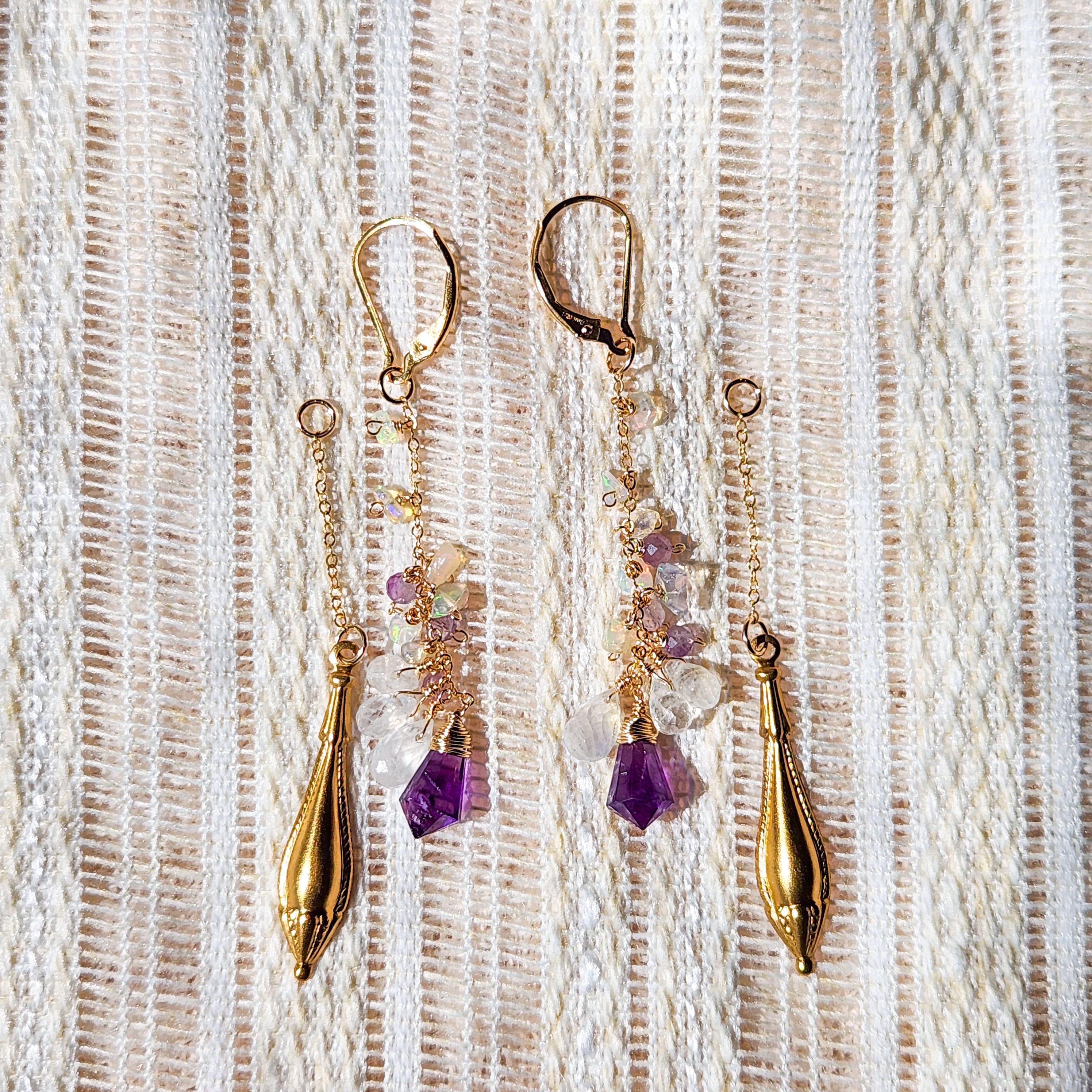 アメジスト × レインボームーンストーン × エチオピアオパール × オーナメント チャームピアス 26025P
