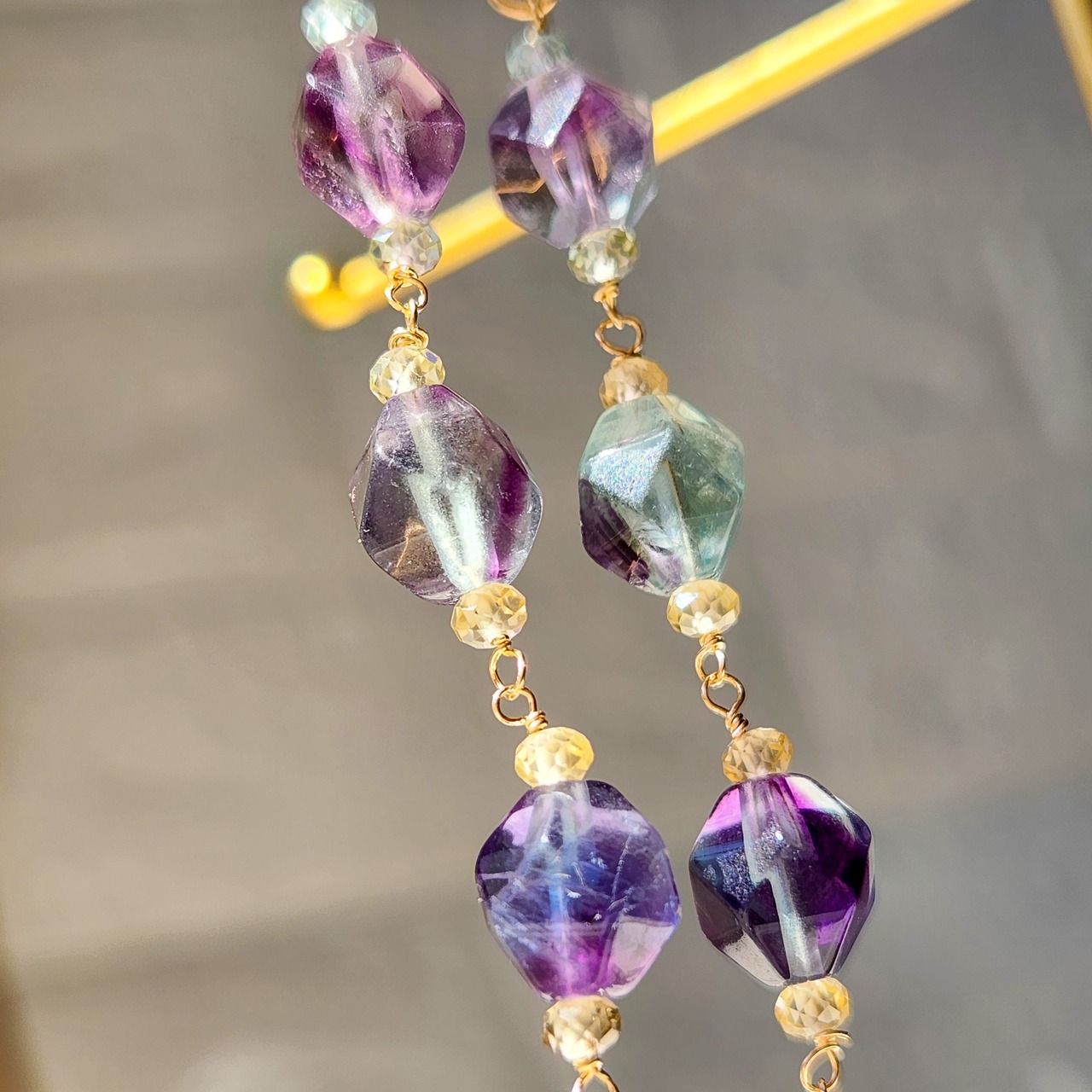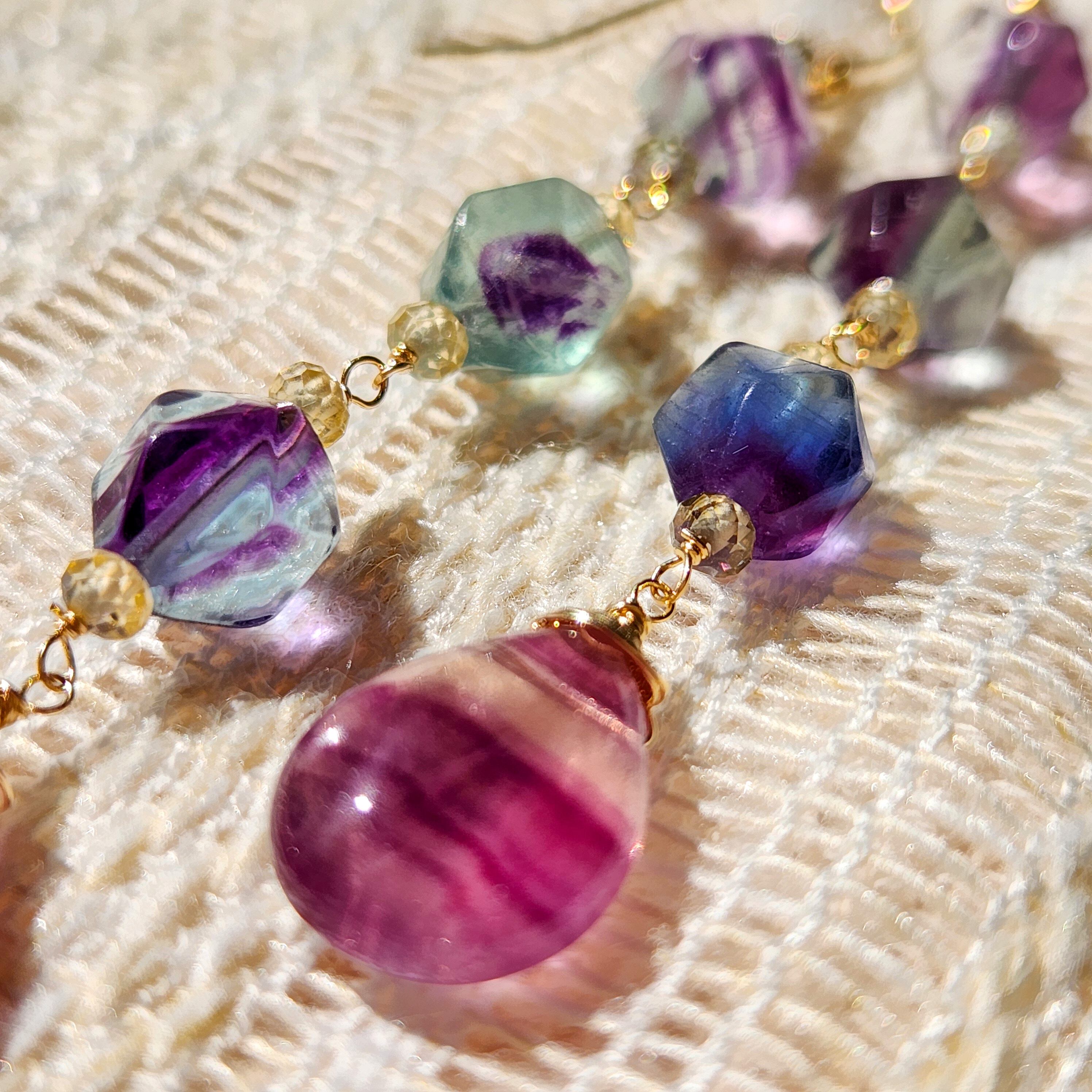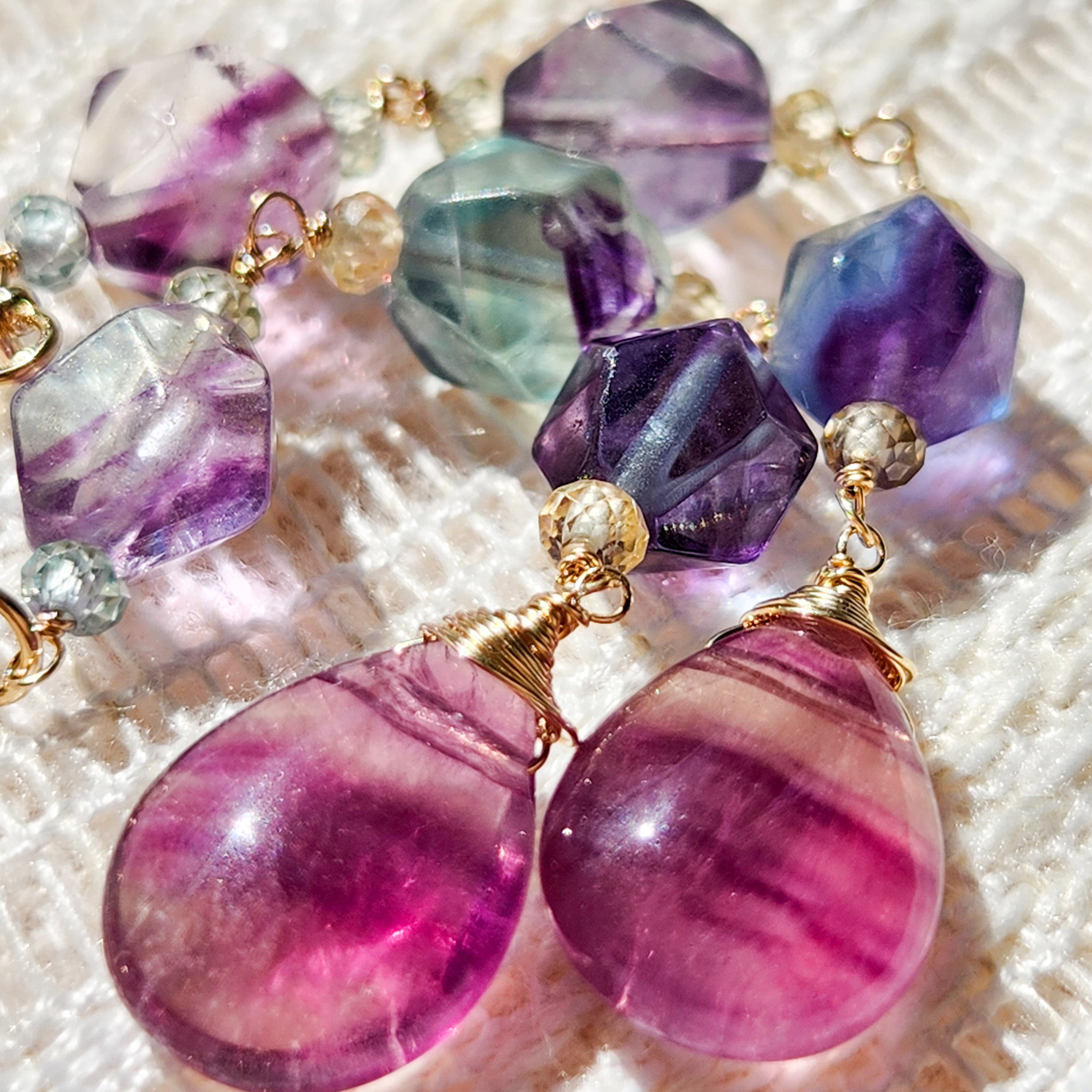 パープルフローライトとレインボーフローライトを組み合わせています。