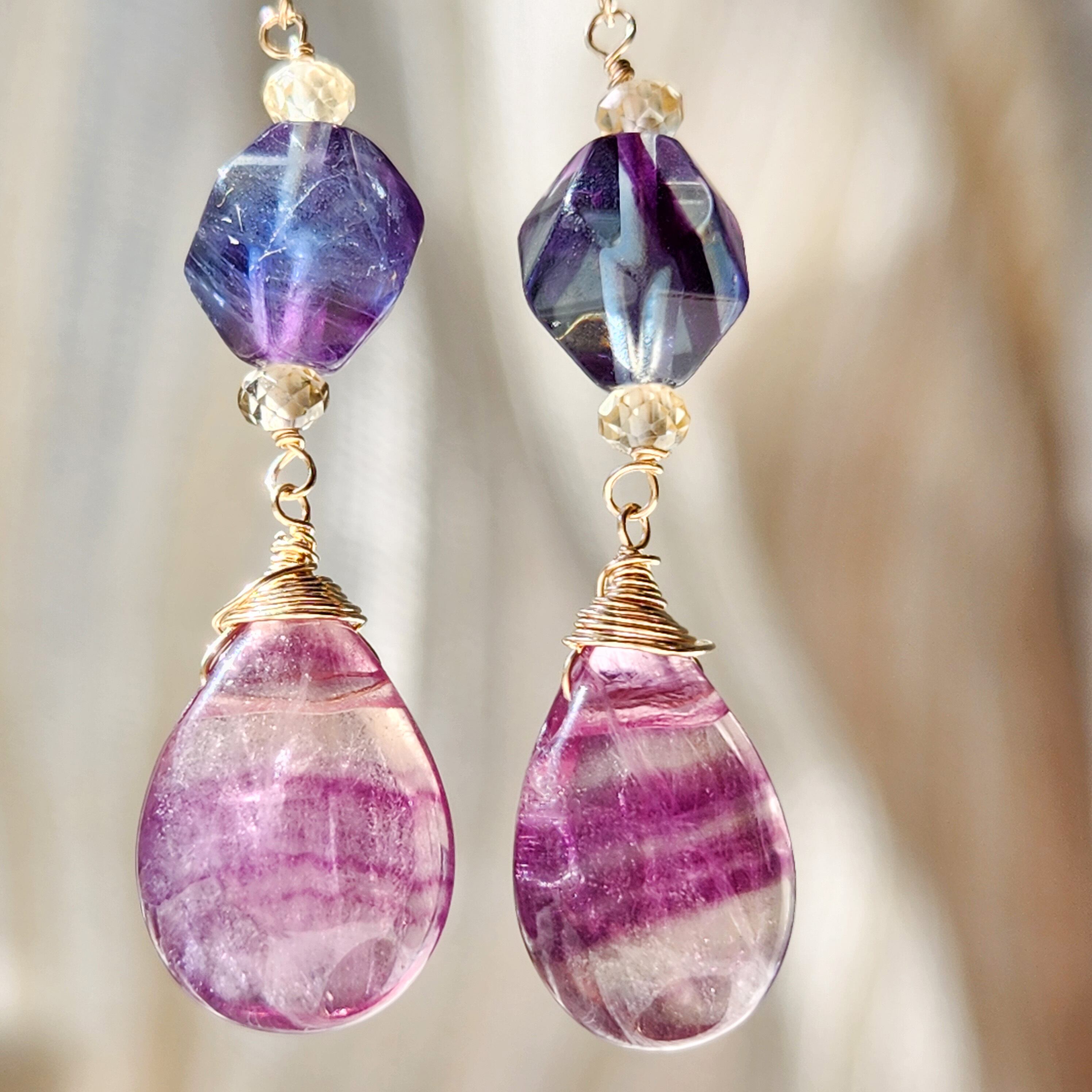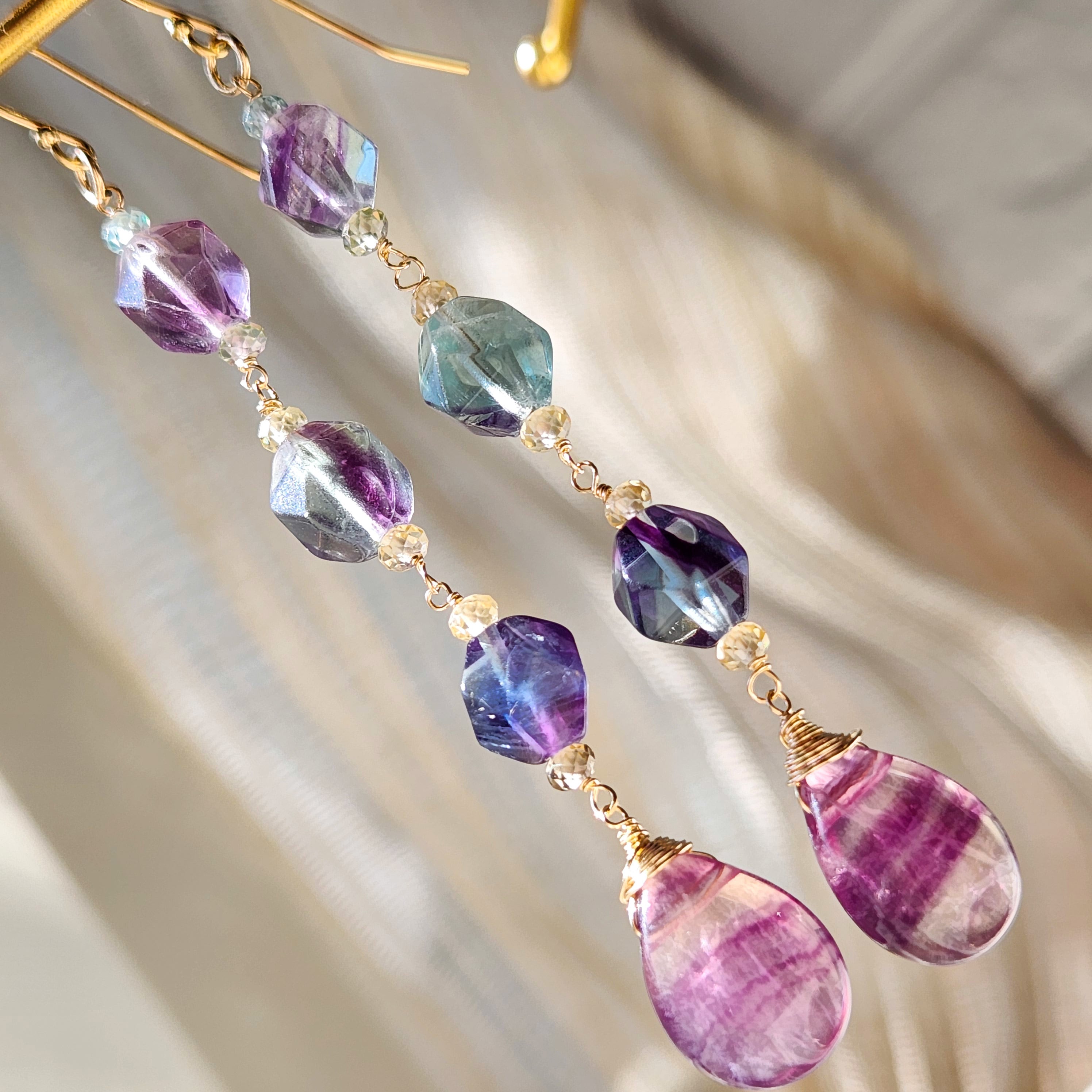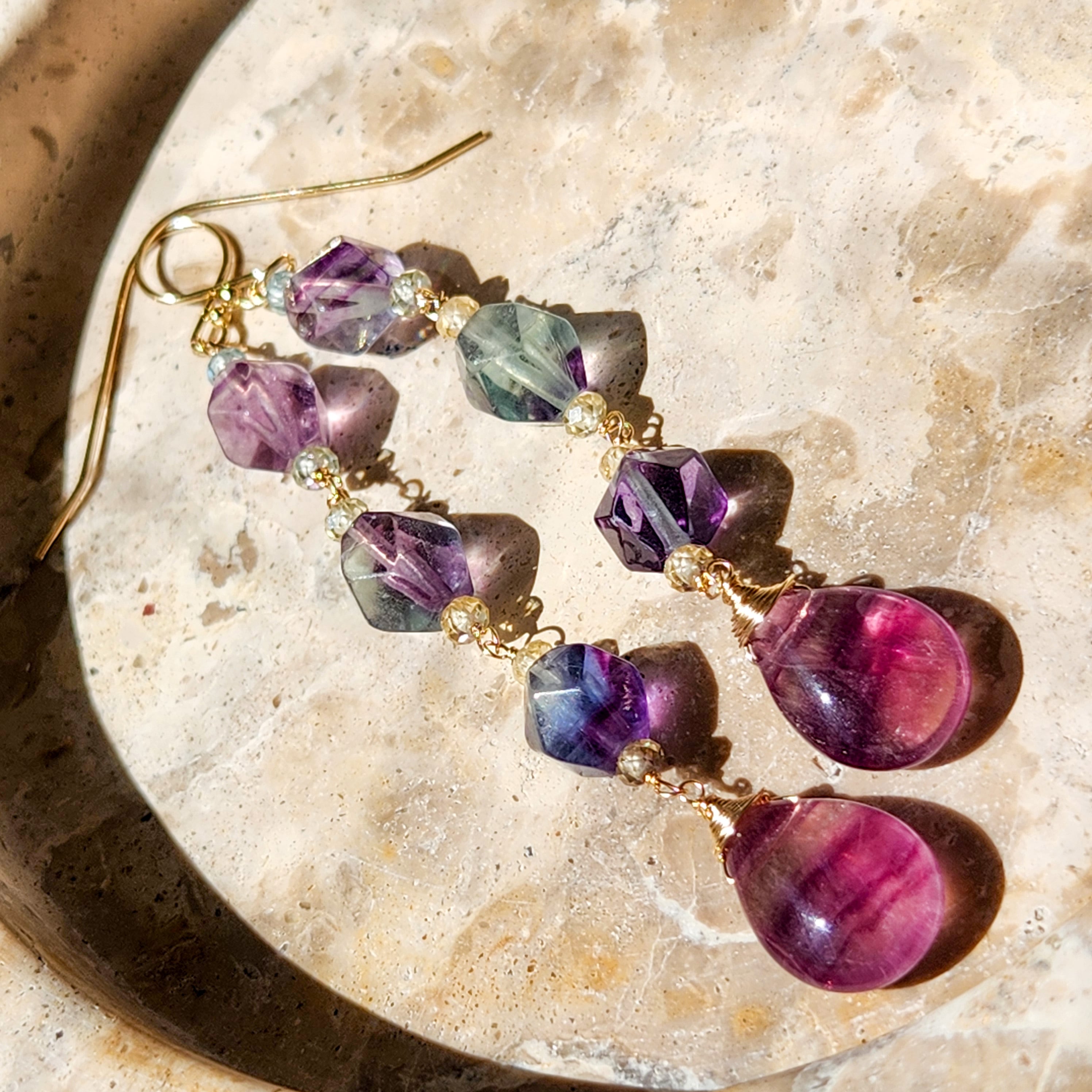 パープルフローライトとレインボーフローライトを組み合わせています。