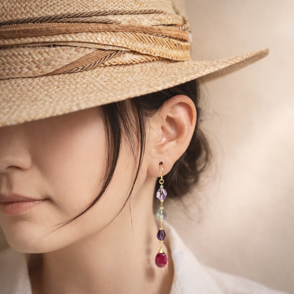 キャンディーのように鮮やかな発色が印象的なピアス。
